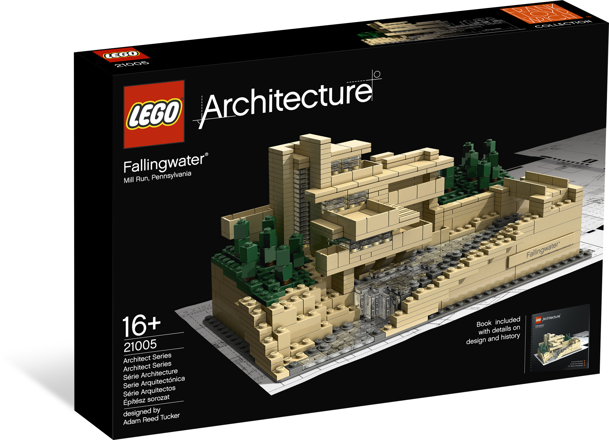 Merging man and nature into an architectural masterpiece! Designed by Frank Lloyd Wright in 1934, Fallingwater® is perhaps the most famous residential home in the world. Open to the public since 1963, this masterpiece exemplifies Frank Lloyd Wright's organic architectural style by intimately merging man with the surrounding landscape. This highly-detailed LEGO® model, co-developed and designed by architect Adam Reed Tucker, captures all of the distinctive features that make Fallingwater an architectural landmark. The assembled Fallingwater model stands 10" (256 mm) wide on a gray base with printed name label and includes a booklet with facts about the building, its construction and its history. A striking and imaginative display for your desk, bookshelf or mantelpiece! Replica of real-world architectural landmark Fallingwater! Booklet included with details on design and history! (English language only) Measures 10" (256 mm) wide