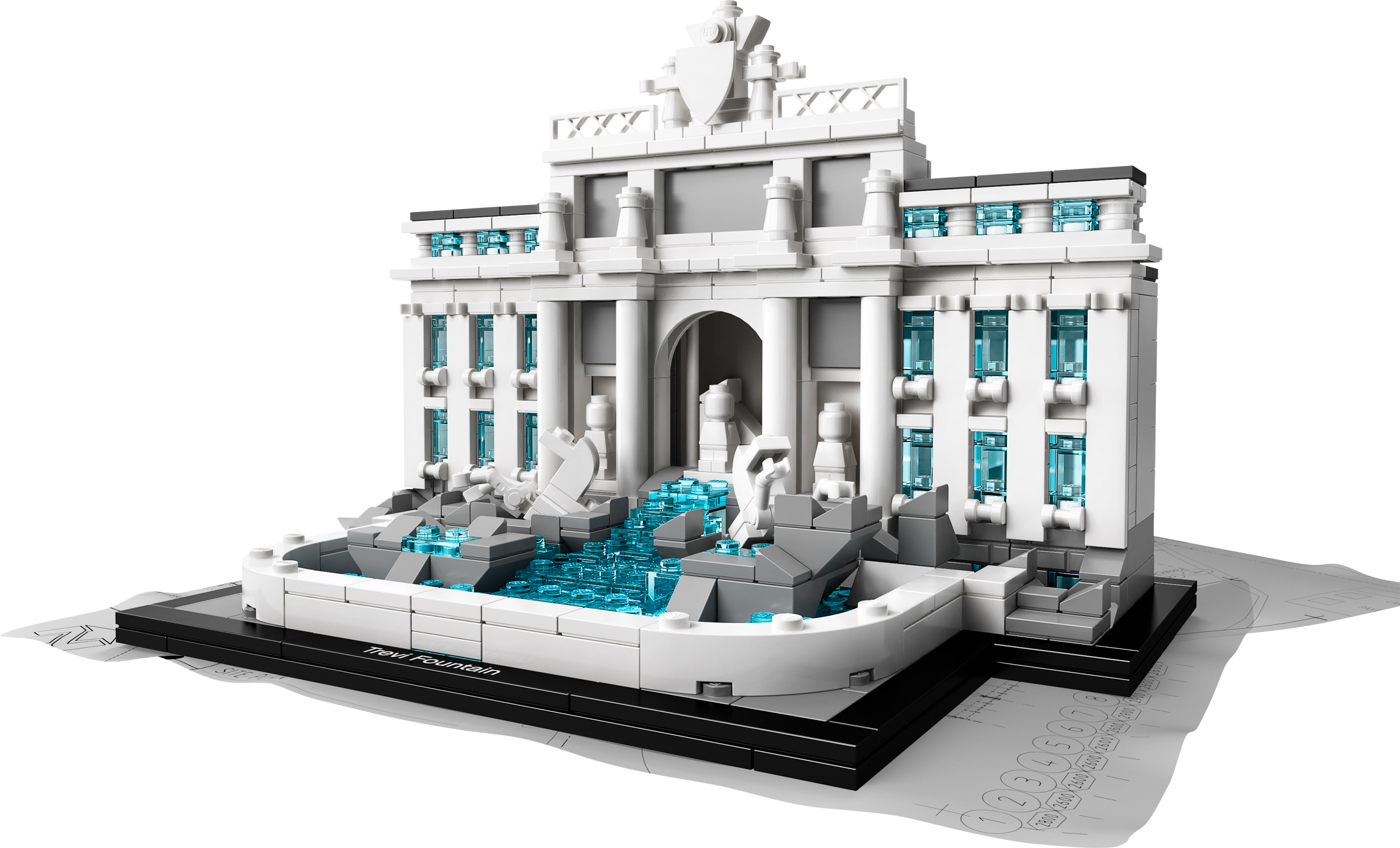 Recreate a truly iconic landmark of Rome – the Trevi Fountain! Construct a detailed LEGO® brick model of the world-famous Trevi Fountain, the largest fountain in Rome. Designed by Nicola Salvi, the ‘Fontana di Trevi’ took 30 years to build and was completed by his friend – the sculptor, Pietro Bracci – in 1762, 11 years after Salvi’s death. This stunning Baroque monument carved from Travertine stone has been the backdrop for many classic movies, including Federico Fellini’s La Dolce Vita. And, today, over 250 years later, the 49-meter-wide fountain still draws thousands of visitors to the small Trevi square.