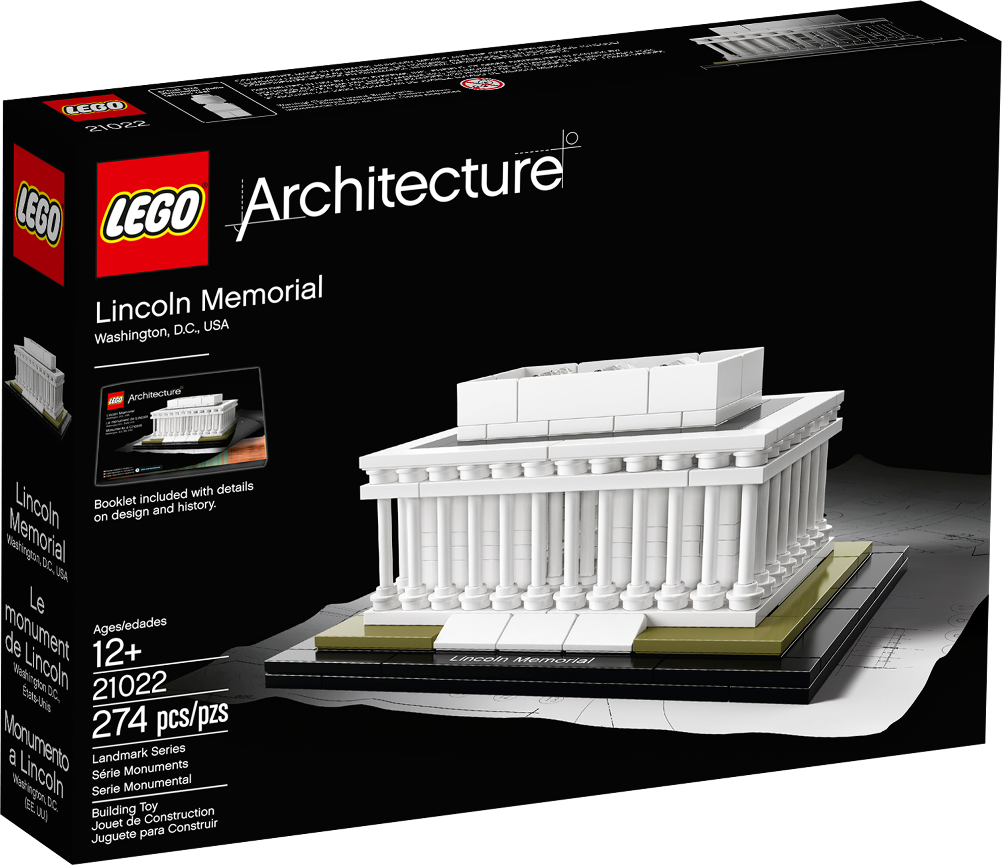 Build the iconic Lincoln Memorial in LEGO® bricks! Construct a LEGO® brick model of the Lincoln Memorial, national monument to the 16th President of the United States, Abraham Lincoln. Designed by architect Henry Bacon to resemble a classic Greek temple, the Memorial was officially dedicated to the American people at a ceremony on May 30, 1922, 57 years after Lincoln’s death. Today, it remains a hugely popular tourist attraction and is open 24 hours a day to the public. Just like the actual building in Washington D.C., this detailed LEGO set incorporates 36 Doric columns, which symbolize all the states within the Union at the time of Lincoln’s passing. The LEGO® brick model is designed with a removable roof so you can view a model of the Abraham Lincoln statue, the famous sculpture created by Daniel Chester French that dominates this iconic American edifice. Interpretation of real-world architectural landmark, the Lincoln Memorial Features a removable roof, the Abraham Lincoln statue and a nameplate Booklet included with details on the design, architecture and history of the building (English language only. Other languages available for download at LEGO.com/architecture) Measures 2” (6cm) tall, 4” (12cm) wide and 3” (9cm) deep Collect the entire LEGO® Architecture Landmark and Architect Series sets The LEGO® Architecture product line isabout celebrating the world of architecture through the medium of the LEGO brick and for all with an interest in design, architecture and history