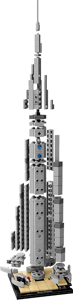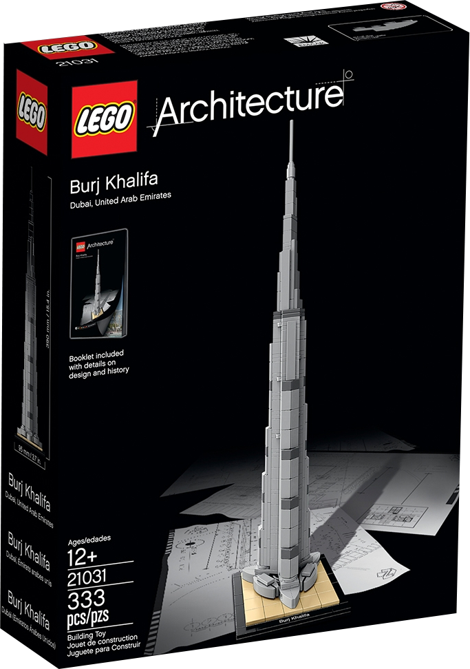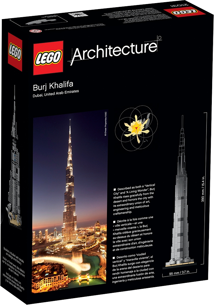 Experience the 160-story Burj Khalifa! Celebrate innovative structural design with this LEGO® Architecture model of the Burj Khalifa, the tallest man-made structure in Dubai. The 2,716.5 feet (828 meters) steel, glass and reinforced concrete tower, designed by architect house Skidmore, Owings & Merrill, was constructed between 2004 and 2010. The Burj Khalifa was commissioned to help Dubai diversify from an oil-based economy to one focusing on service and tourism. LEGO® interpretation of the real-world architectural landmark, the Burj Khalifa. This 2016 model stands over 15” tall, making it the tallest LEGO® Architecture model to date. The included booklet contains information about the design, architecture and history of the building (English language only. Other languages available for download at LEGO.com/architecture). Collect the entire LEGO® Architecture series. LEGO® Architecture celebrates the world of architecture through the medium of the LEGO brick, and is developed for all with an interest in design, architecture and history. Measures 15” (39cm) high, 3” (9cm) wide and 3” (9cm) deep.