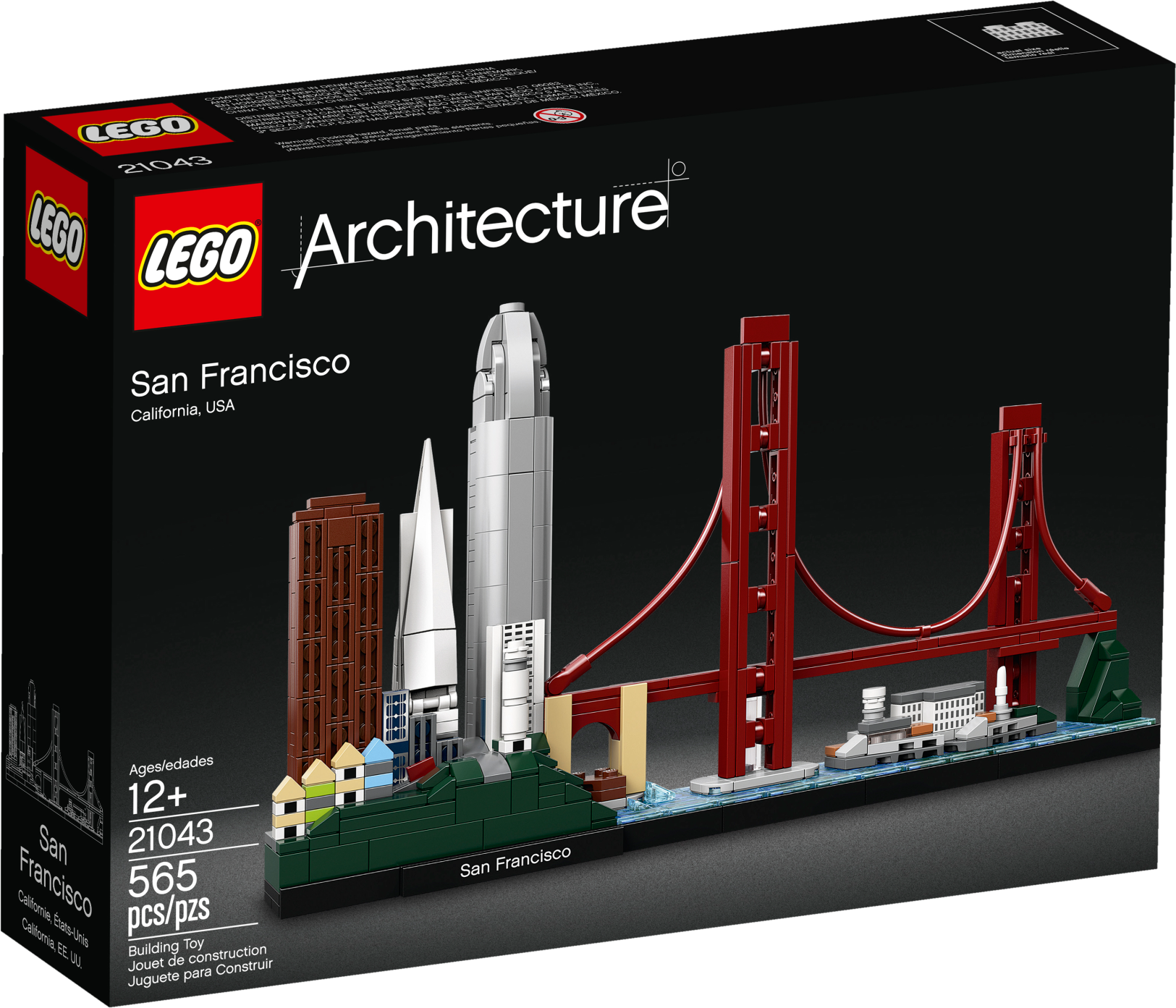 Recreate the magnificence of San Francisco’s architecture with this awesome 21043 LEGO® Architecture Skyline Collection model. This LEGO brick collectible features iconic San Francisco attractions and landmarks, including the city’s famous “painted ladies” buildings, 555 California Street, the Transamerica Pyramid, Salesforce Tower, Coit Tower, Fort Point, Golden Gate Bridge and Alcatraz Island. A blue-tiled baseplate representing the Golden Gate strait and a San Francisco nameplate add the finishing touch to this amazing model. LEGO Architecture Skyline Collection models are perfect for display in the home or office and have been developed for all with an interest in travel, architectural culture, history and design. Each skyline building set is scaled to give an accurate representation of the comparative size of the featured structures, with realistic color depiction.