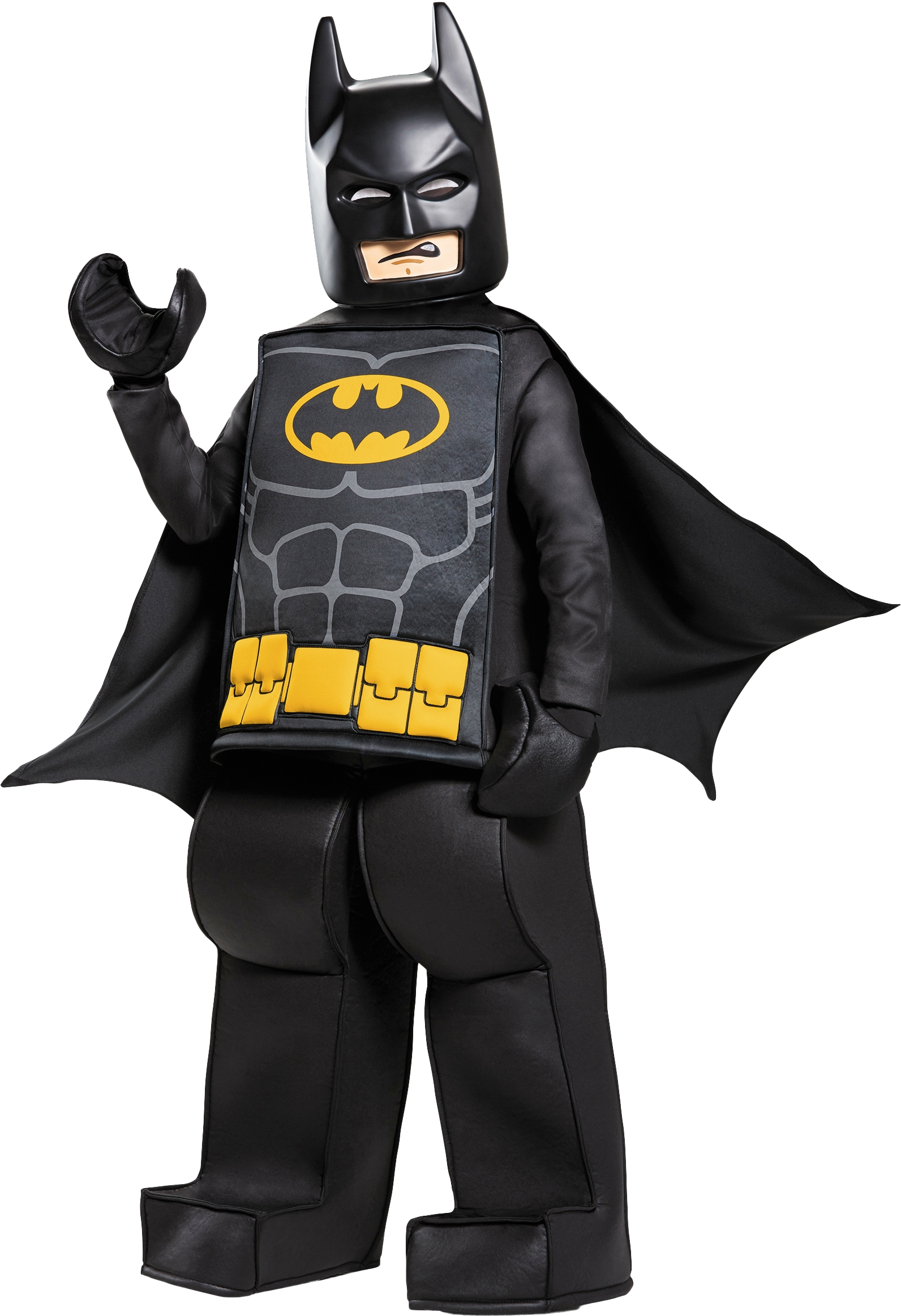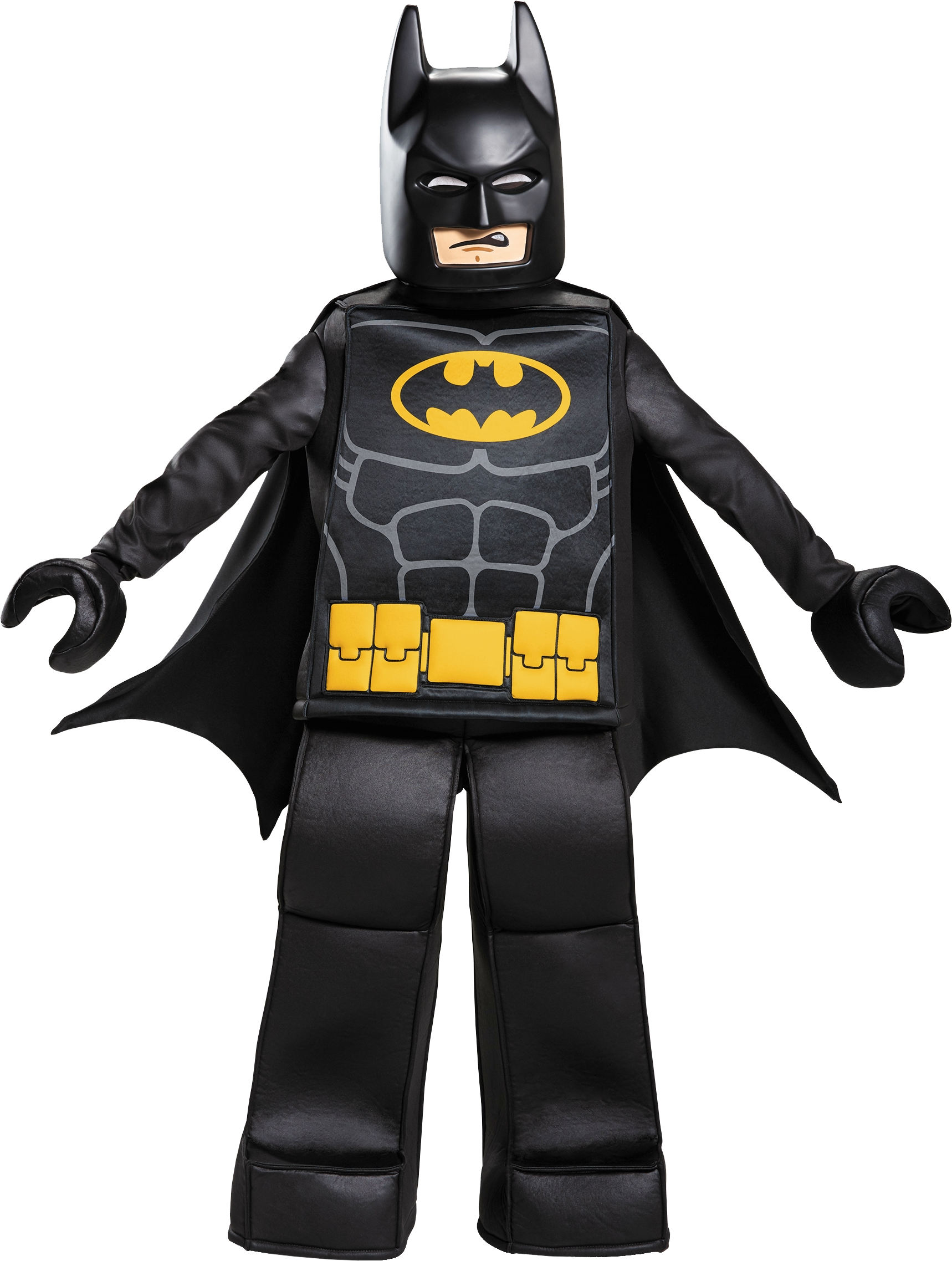 Put on THE LEGO® BATMAN MOVIE Batman™ Prestige Costume and save Gotham City! Available in 3 sizes, this minifigure-style outfit features a structured tunic top with the iconic bat symbol, sewn-in padded fabric belt, and structured pants. Complete the look with a Batman character mask, minifigure-style hands and a detachable cape, and then recreate thrilling scenes from THE LEGO BATMAN MOVIE.Features a Batman™ character mask, minifigure-style structured tunic top with printed bat symbol and sewn-in padded fabric belt, structured minifigure-style pants, 2 minifigure-style hands and a detachable cape.Available in small, medium or large sizes.Suitable for ages 4+.Sizes: Boys S (ages 4-6), Boys M (ages 7-8) or Boys L (ages 10-12).