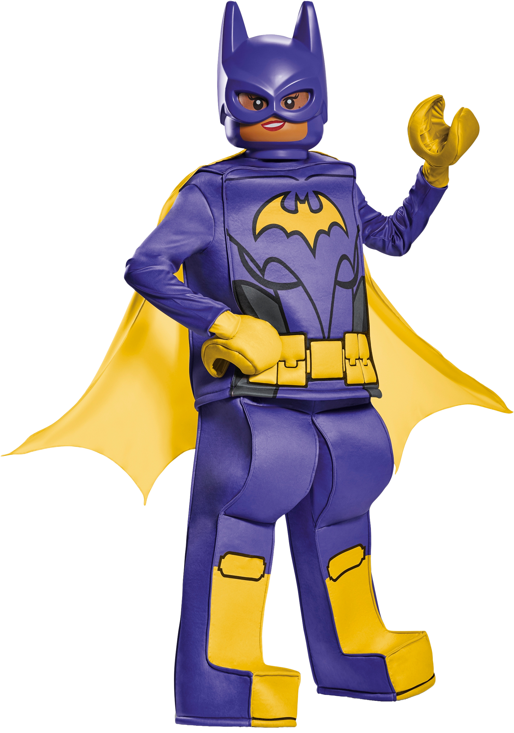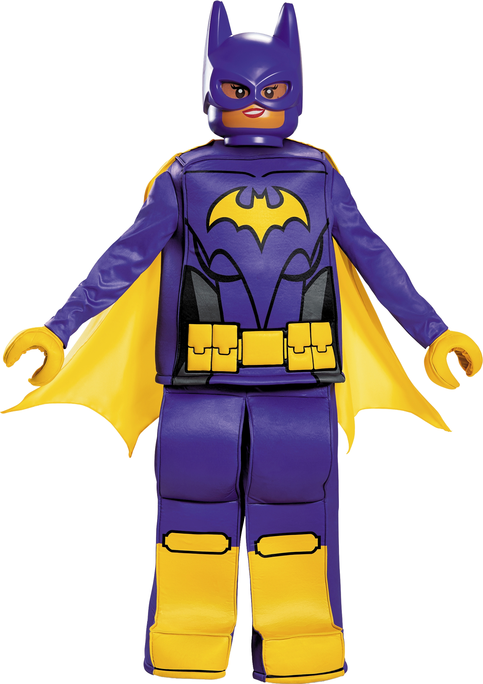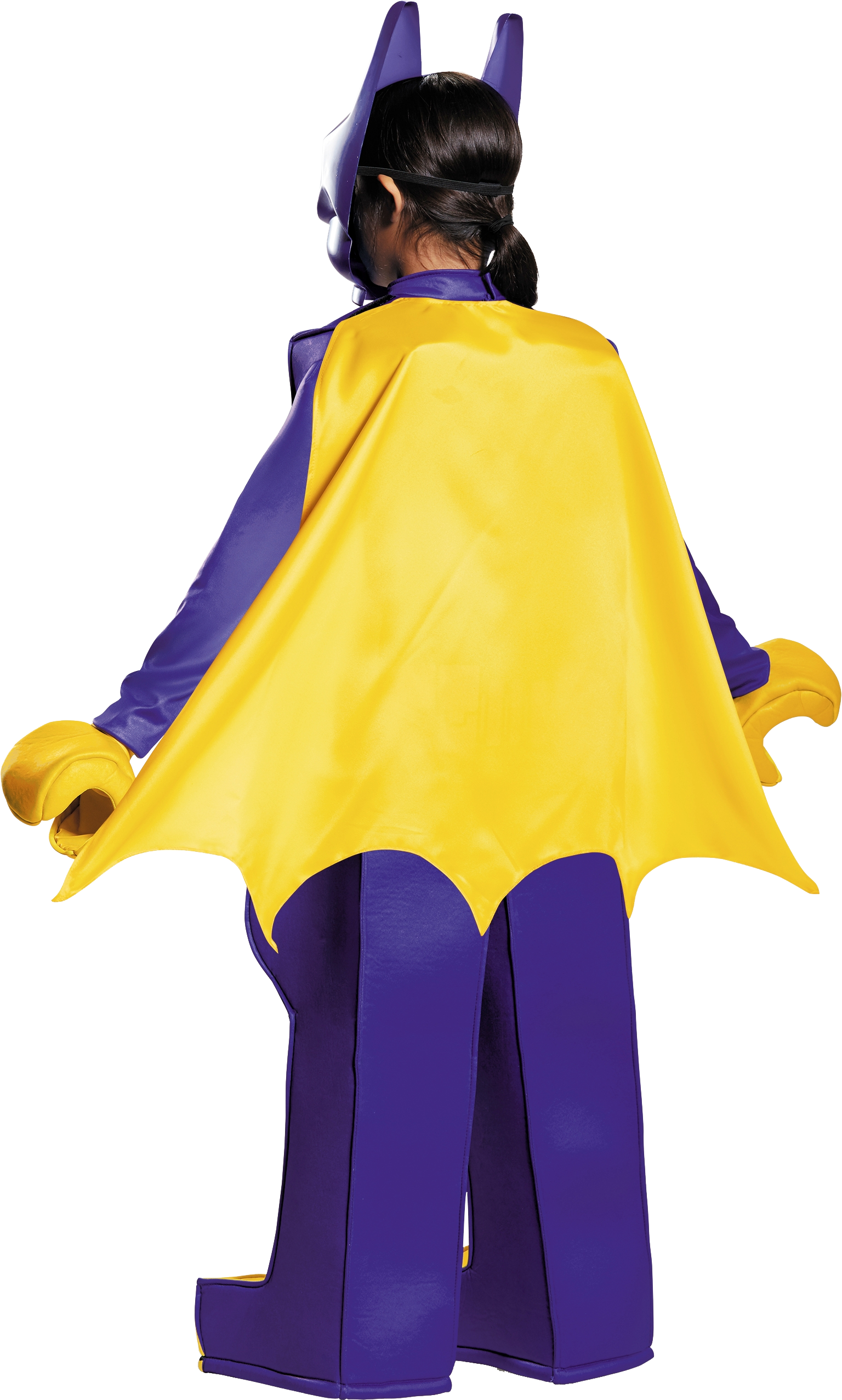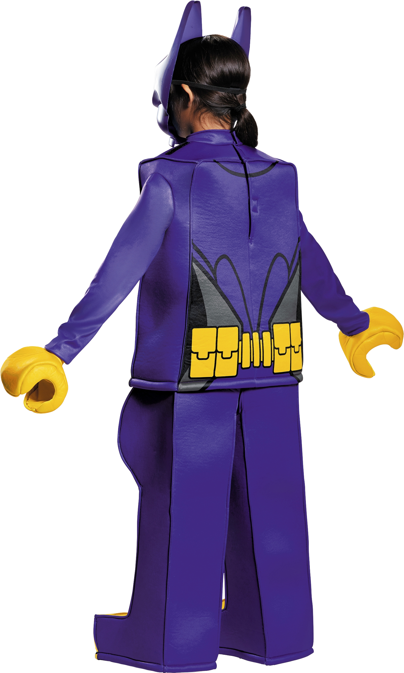 Become Batgirl™ with this awesome minifigure-style THE LEGO® BATMAN MOVIE outfit. Available in 3 sizes, it features a structured tunic top with the iconic bat symbol, sewn-in padded fabric belt, and structured pants. Complete the look with a Batgirl character mask, minifigure-style hands and a detachable cape, and then role-play thrilling scenes from THE LEGO BATMAN MOVIE.Features a Batgirl™ character mask, minifigure-style structured tunic top with printed bat symbol and sewn-in padded fabric belt, structured minifigure-style pants, 2 minifigure-style hands and a detachable cape.Available in small, medium or large sizes.Suitable for ages 4+.Sizes: Girls S (ages 4-6), Girls M (ages 7-8) or Girls L (ages 10-12).