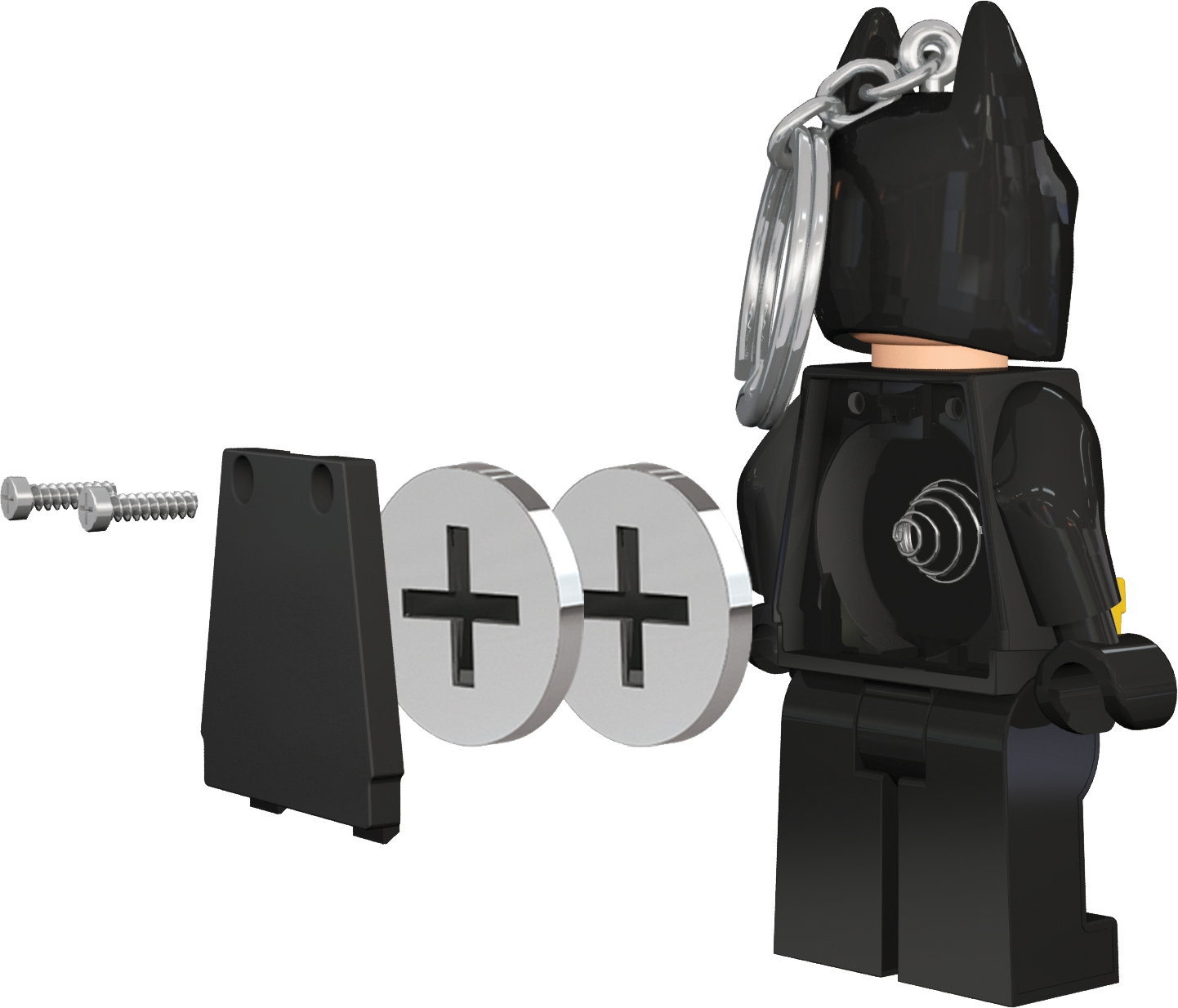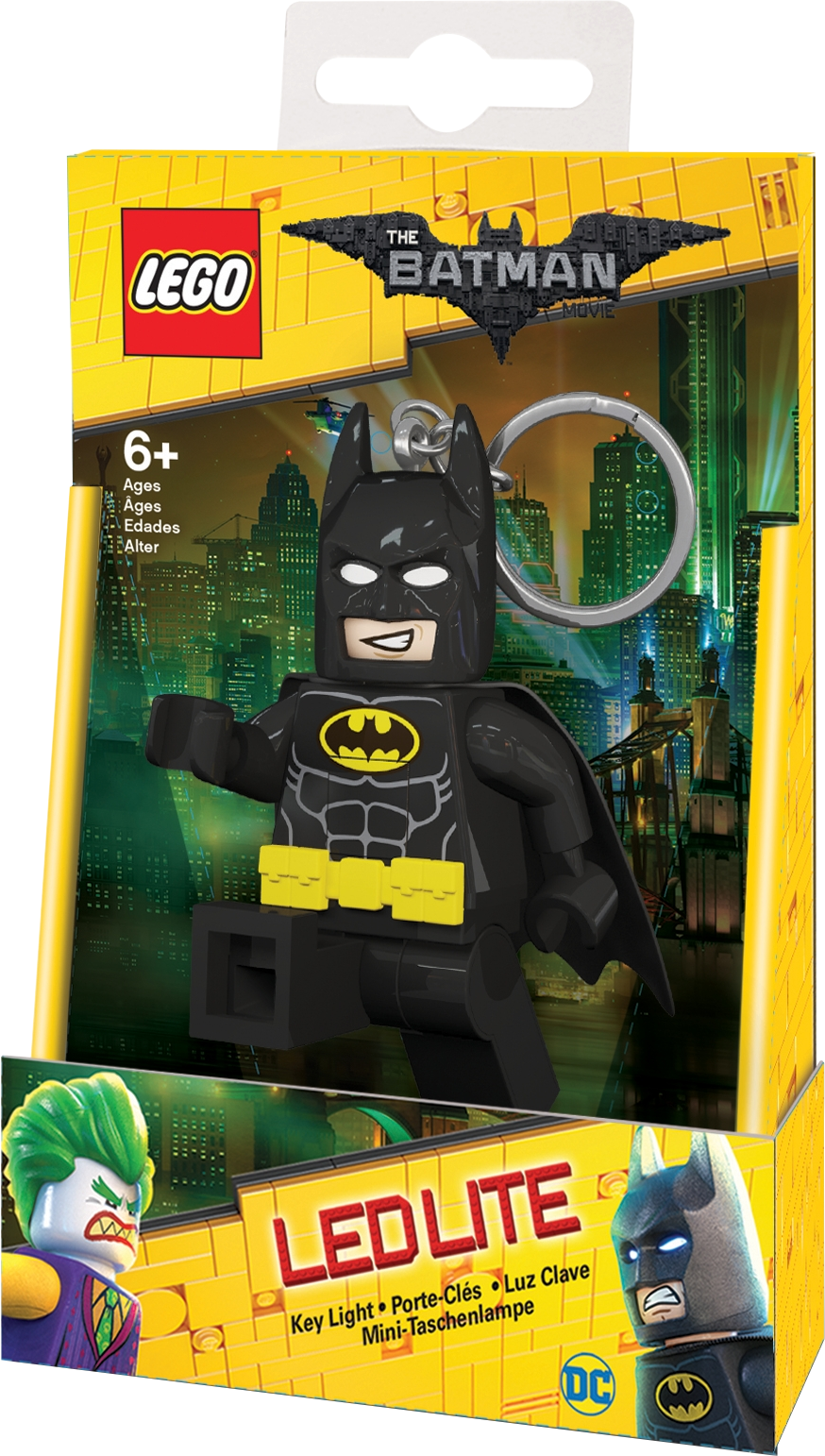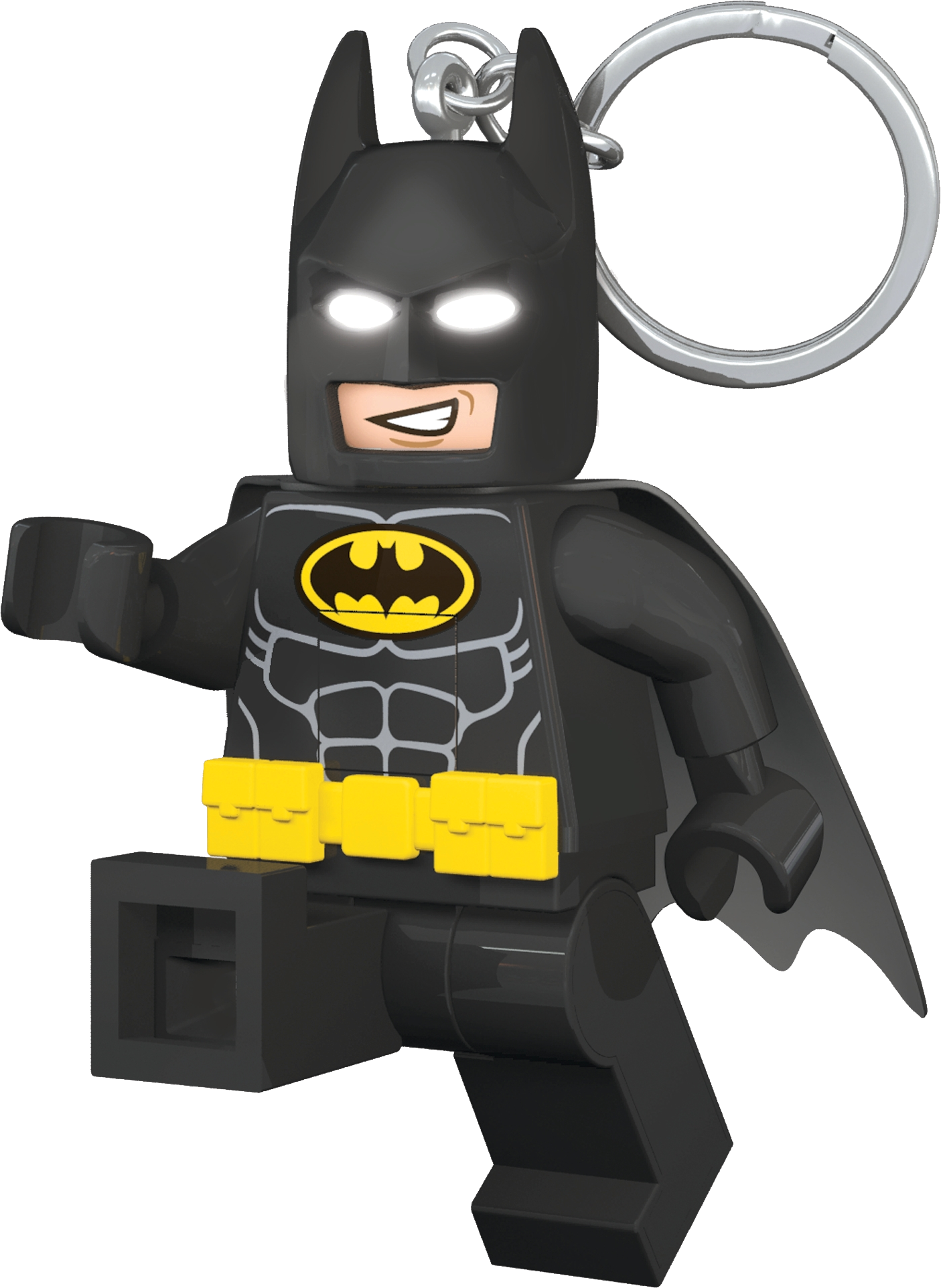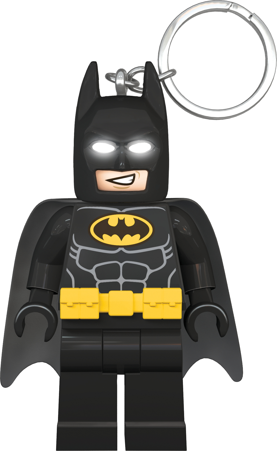 Seek out Super-Villains with THE LEGO® BATMAN MOVIE Batman™ Key Light! This large posable minifigure of the Caped Crusader has a bright LED light in each eye—simply press the button on his body to turn the lights on and find your way through the darkness. Features a large posable Batman™ minifigure key chain with 2 bright LED lights in the eyes. Push the button on the body to activate the lights. Switch with auto shut-off saves battery power. This product requires batteries (included). Please refer to the product packaging for type and quantity. Large Batman™ minifigure stands over 3” (8cm) tall.
