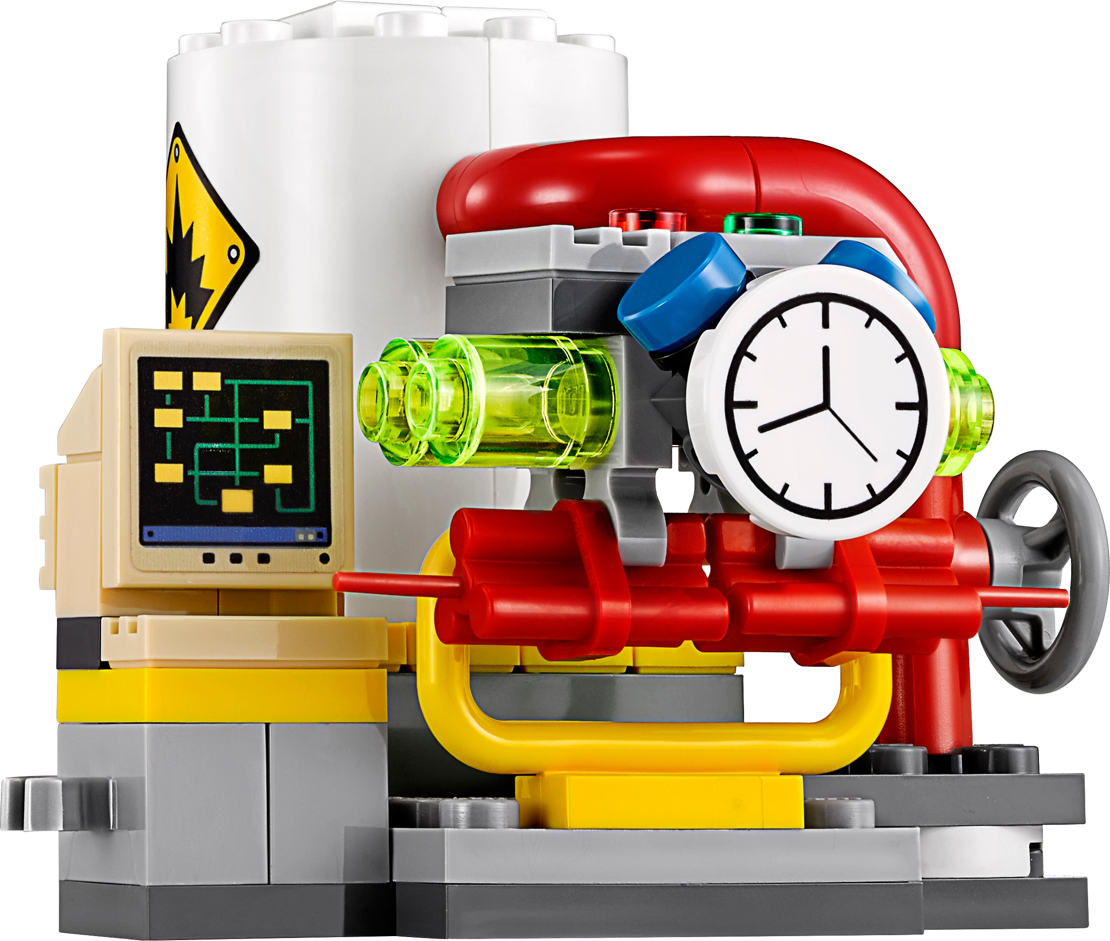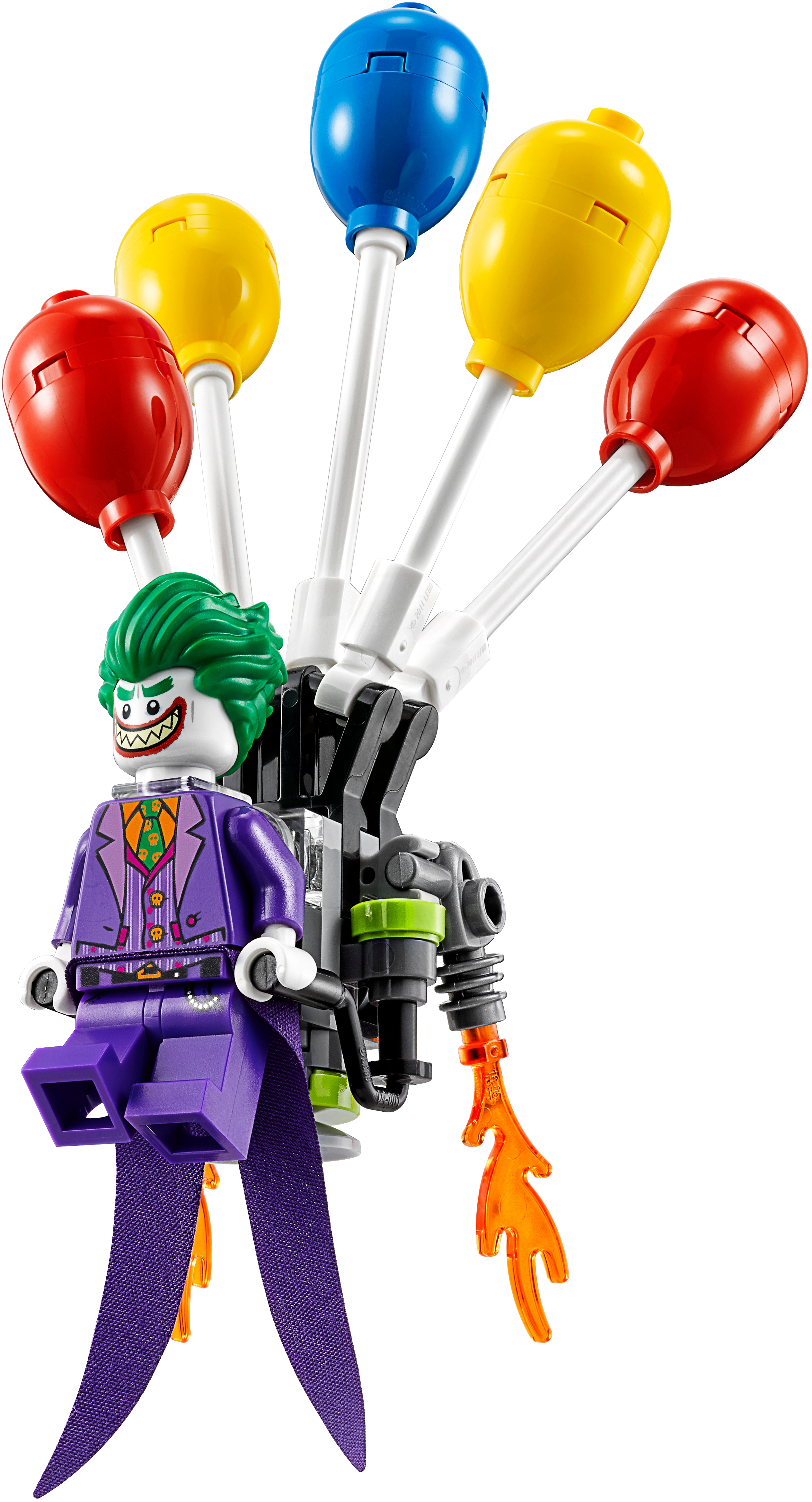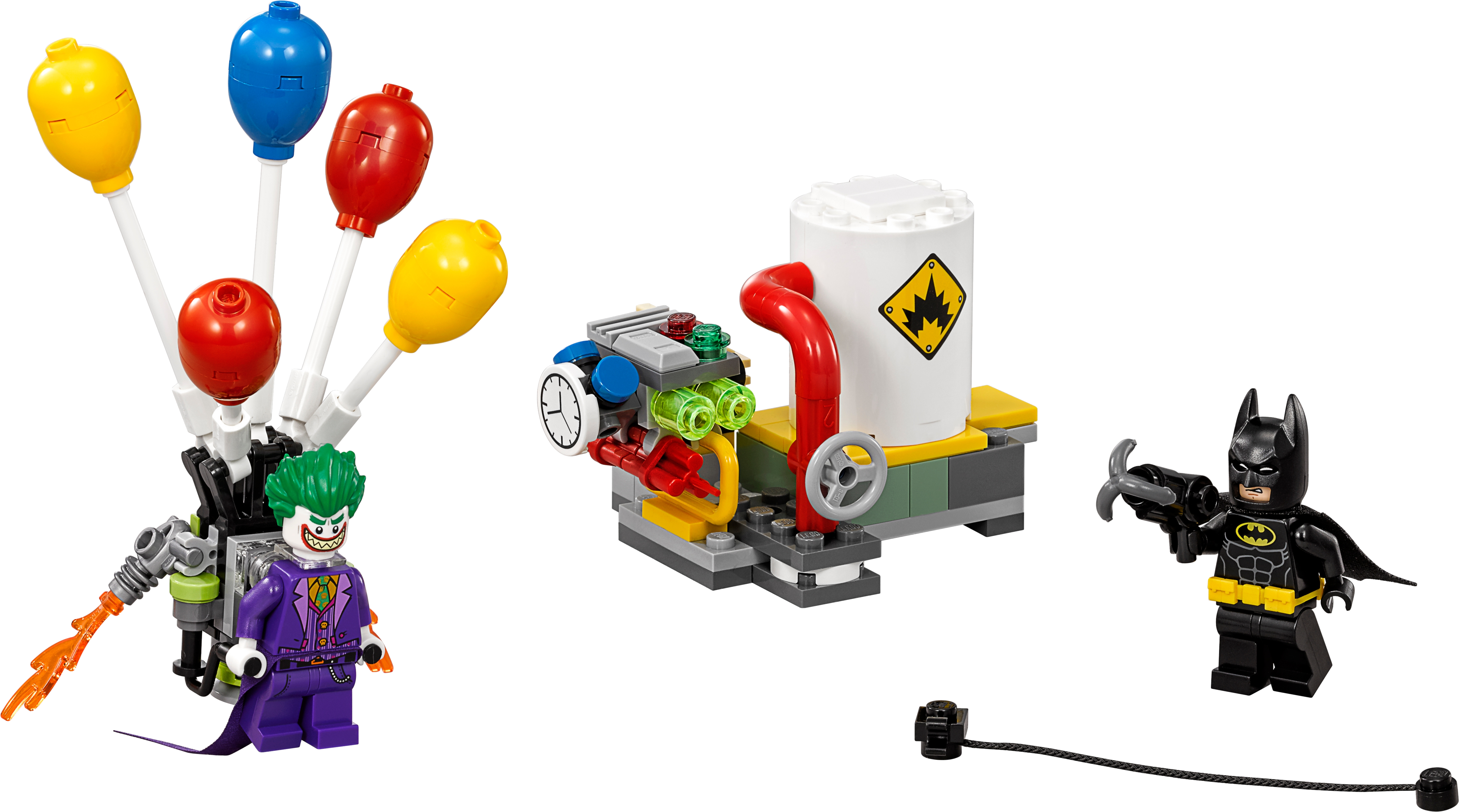 Stage a face-off between The Joker™ and Batman™ at the Gotham City Energy Facility in THE LEGO® BATMAN MOVIE: The Joker Balloon Escape set, featuring The Joker’s detachable balloon backpack and a power plant build. The power plant has a movable bomb element and silo with explode function, while Batman is armed with a grappling gun to intensify role-play battles. Includes two minifigures. Includes two minifigures: Batman™ and The Joker™. The Joker’s balloon backpack features five balloon and two translucent flame elements. The power plant features a silo with explode function, pipes, plus computer, pressure meter and bomb elements. Weapons include Batman's grappling gun with string attached. Accessory elements include Batman's cape and new-for-spring-2017 molded utility belt, and The Joker's special purple coat-tail. This set offers an age-appropriate build and play experience for ages 6+. Connect the power plant to other builds from 70901 Mr. Freeze™ Ice Attack and 70910 Scarecrow™ Special Delivery to create an even bigger power station. Balloon backpack measures over 4” (11cm) high, 3” (9cm) wide and 1” (4cm) deep. Power plant measures over 2” (6cm) high, 2” (6cm) wide and 2” (7cm) deep.