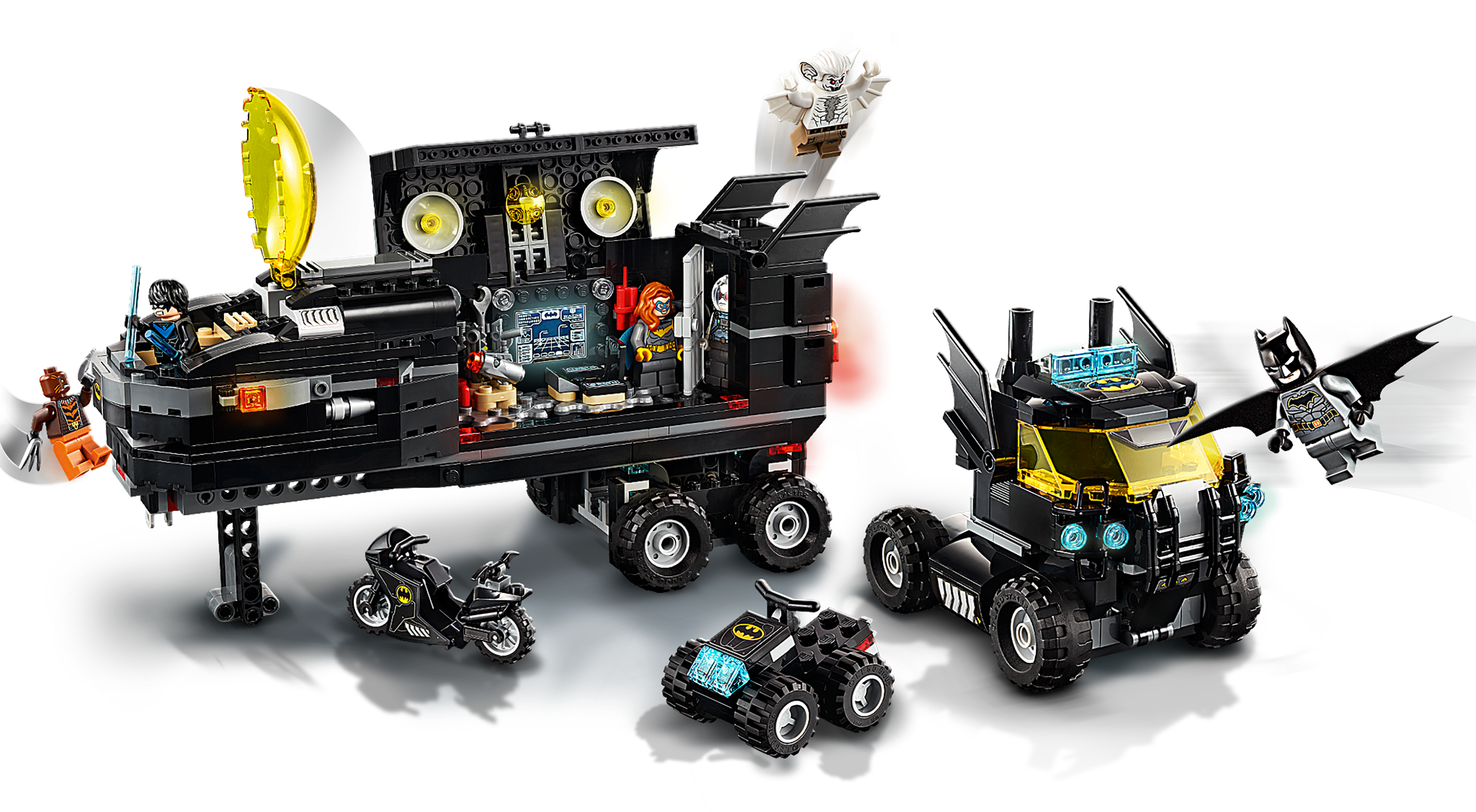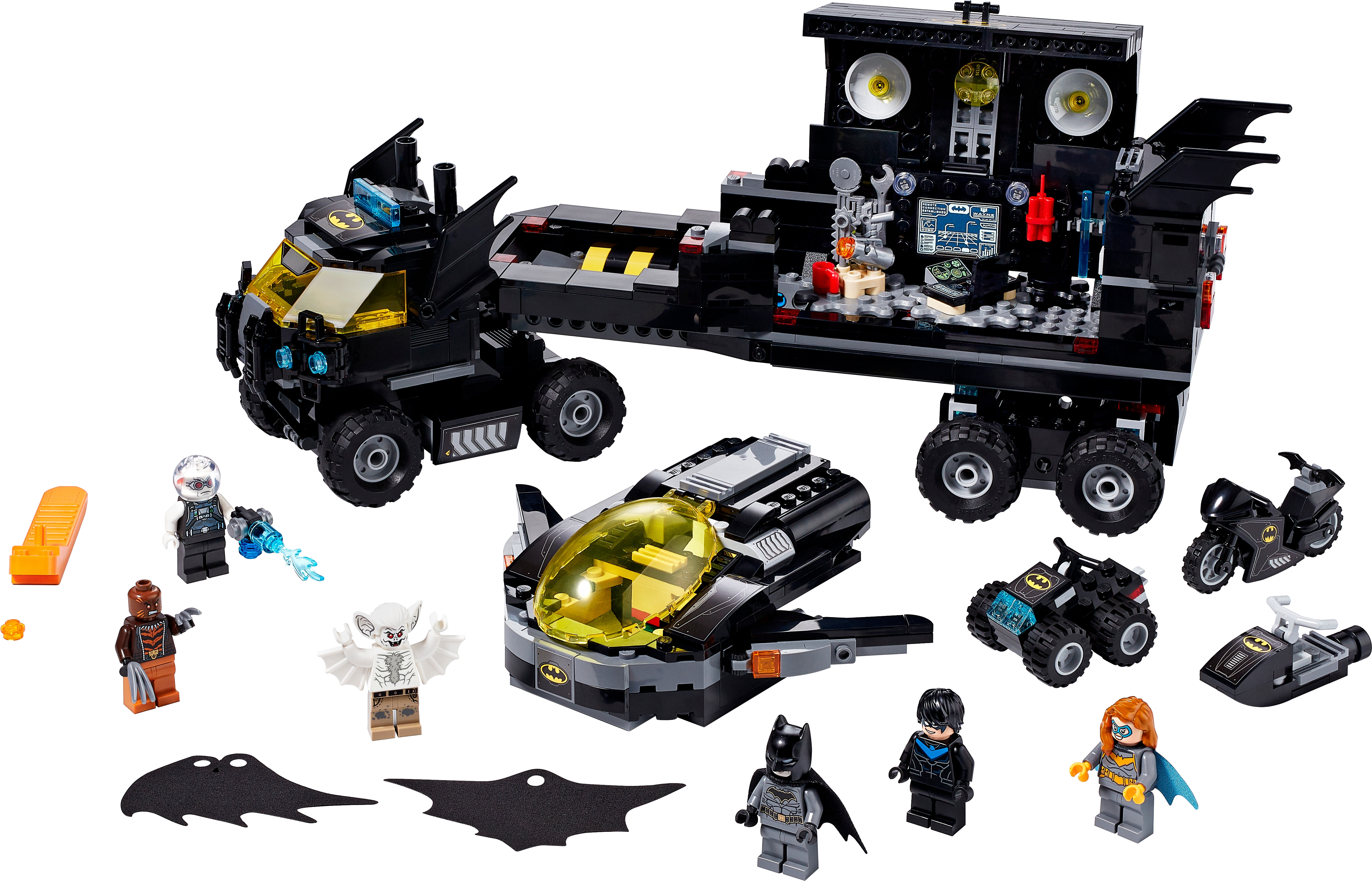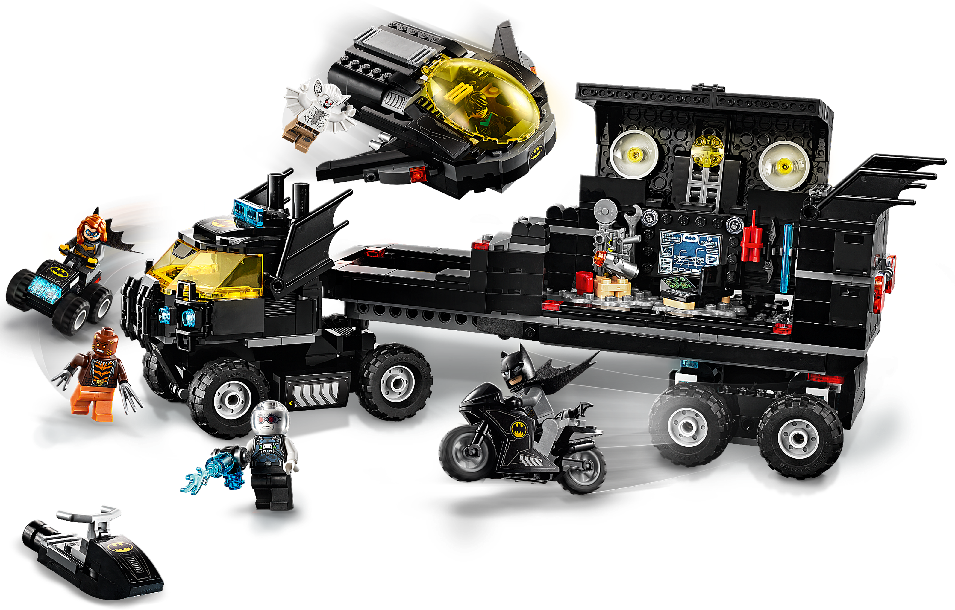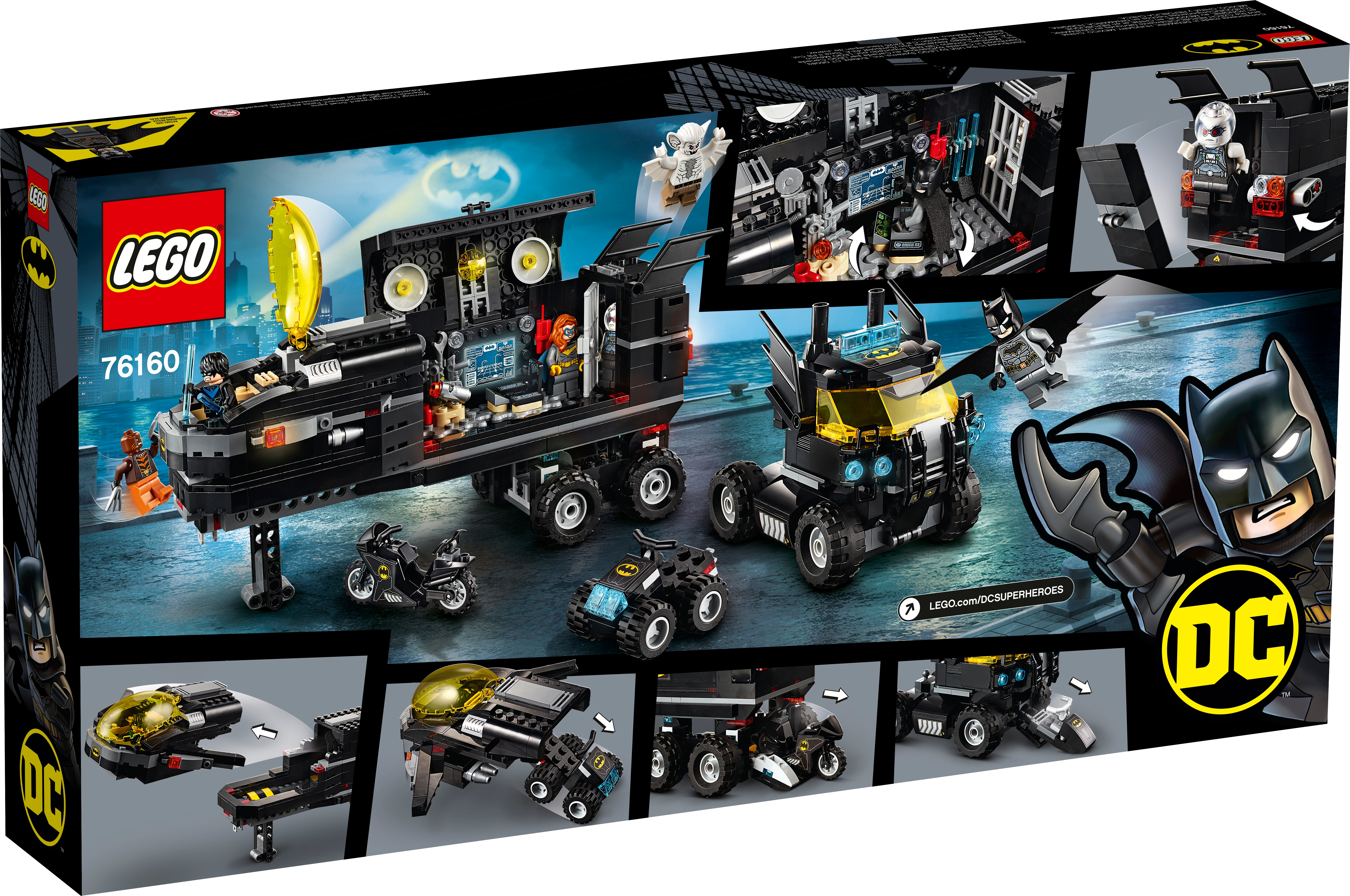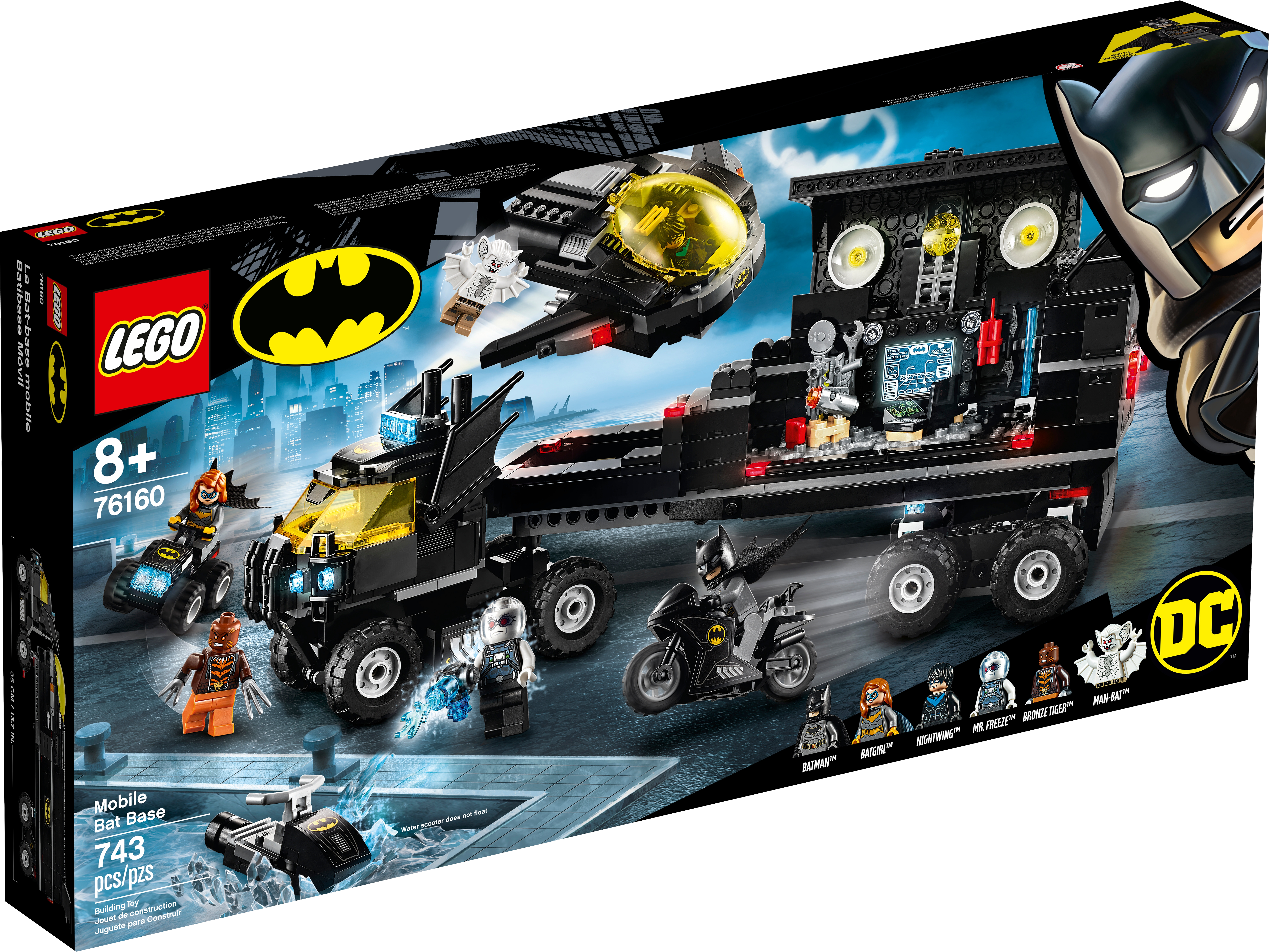 The LEGO® DC Mobile Bat Base (76160) incorporates 5 iconic vehicles, a bunch of awesome weapons and lots of cool gadgets. With 6 popular LEGO DC minifigures from the Batman™ movies, this set gives kids everything they need to explore an exciting world of Batman adventures!LEGO Batman Batcave™ playset – on wheels!Kids join Batman, Batgirl™ and Nightwing™ on the hunt for notorious Super-Villains Mr. Freeze™, Man-Bat™ and Bronze Tiger™. The high-tech Mobile Bat Base is packed with exciting hidden features: Detach the Batjet from the trailer and unfold its wings; when it lands, drive the BatQuad out of the rear; unfasten the motorcycle from the back of the truck; release a water scooter from the front of the truck with the touch of a switch… there's even an on-board jail for the bad guys and an explosion feature for when they escape.Batman building toys and action minifiguresLEGO DC Batman playsets bring all the thrills and epic fun of the Batman movies into kids' homes.The LEGO® DC Mobile Bat Base (76160) toy is packed with iconic vehicles, awesome gadgets and cool weapons for kids to use as they help Batman™ and Batgirl™ round up 4 notorious Super-Villains.This ‘Batcave™ on wheels’ set incorporates a Batjet, BatQuad, motorcycle, water scooter, toy truck and 6 minifigures from the Batman™ movies: Batman, Batgirl™, Nightwing™, Mr. Freeze™, Man-Bat™ and Bronze Tiger™.The toy's opening roof and side provide easy access to Batman's Batcave™ accessories.With so much to discover, and 6 minifigures from the Batman™ movies, the possibilities for independent imaginative play are endless.It’s not just Batman™ movie fans who’ll be thrilled to receive this mobile Batcave™ building toy as a birthday gift. It's a great ‘build your own truck' playset for all children aged 6 and up who enjoy imaginative play.Measuring over 14” (38cm) long, the Mobile Bat Base vehicle is the perfect size for hands-on play and big enough to contain everything kids needs for epic super-hero adventures.This Batman™ truck toy doesn’t need batteries – it’s powered purely by kids’ imaginations! And with so many accessories and fun features, young super heroes can enjoy endless, hands-on, creative play.Simple instructions are included to get kids building and playing right away and making the most of all the toy's cool features and amazing vehicles.LEGO® DC Batman™ playsets put super-hero movie action into kids' hands. With characters, vehicles, gadgets and weapons from the blockbuster movies, fans can recreate favorite scenes and dream up adventures of their own.LEGO® children’s building toys meet the highest industry standards, ensuring they are consistent, compatible and connect and pull apart perfectly every time – it's been that way since 1958.LEGO® bricks and pieces are dropped, heated, crushed, twisted and analyzed to ensure that your child's build-and-play set meets the highest safety and quality standards in the world.