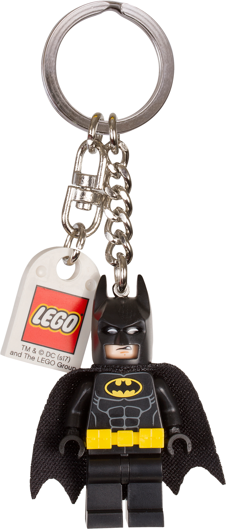 Attach this awesome key chain to your keys or backpack and take Batman™ with you wherever you go. Featuring a Batman minifigure with a durable metal ring and chain, this makes a striking accessory for fans of THE LEGO® BATMAN MOVIE. Features a Batman™ minifigure attached to a durable metal ring and chain. Attach it to your keys or backpack. Minifigure is not detachable from metal chain.