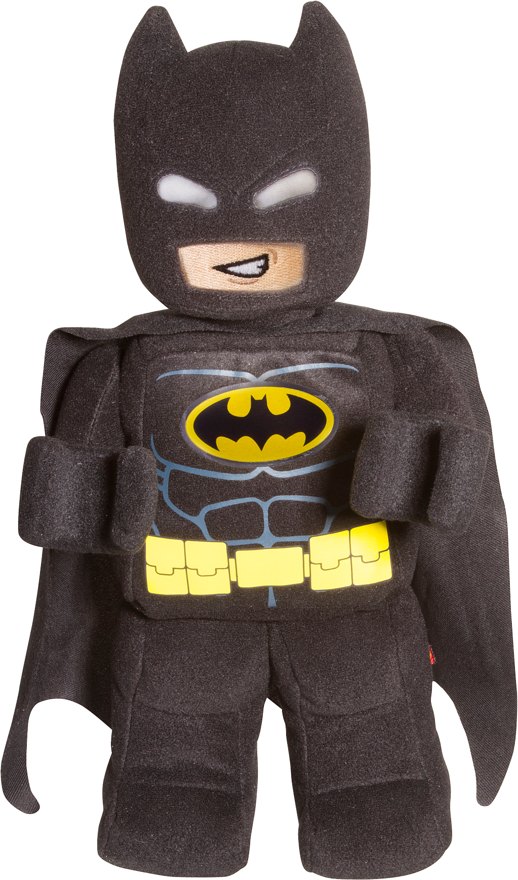 Discover the softer side of the Dark Knight with THE LEGO® BATMAN MOVIE Batman™ Minifigure Plush toy. This 12” (32cm) tall cuddly toy is an up-scaled version of the Batman minifigure and features brushed tricot fabric with silkscreen-printed decoration, including the iconic Bat-shaped symbol, cape and embroidered face details.This up-scaled minifigure-style stuffed toy features brushed tricot fabric with silkscreen-printed decoration, including the Bat-shaped symbol, cape and embroidered face details.Measures over 12” (32cm) tall.