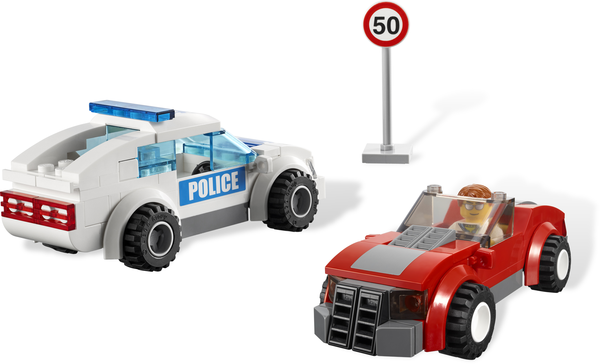 Catch the speeding sports car! The driver in the red sports car is speeding and the police officer standing by the streetlight catches him using the speed camera. Send the police car and the police motorcycle in hot pursuit and don’t let the speeder get away! Set includes 3 minifigures, 3 vehicles, camera, traffic lights and speed limit sign. Includes 3 minifigures: 2 police officers and driver Features 3 vehicles: police car, police motorcycle and cool red sports car Accessories include traffic camera, traffic lights and speed limit sign Vehicles feature realistic rubber tires, windshields and translucent elements Speed after the sports car in 2 cool police vehicles! Red sports car measures 4” (10cm) long and 2” (5cm) wide Police car measures 4” (10cm) long and 2” (5cm) wide Police motorcycle measures 2” (5cm) long and 1” (2cm) wide