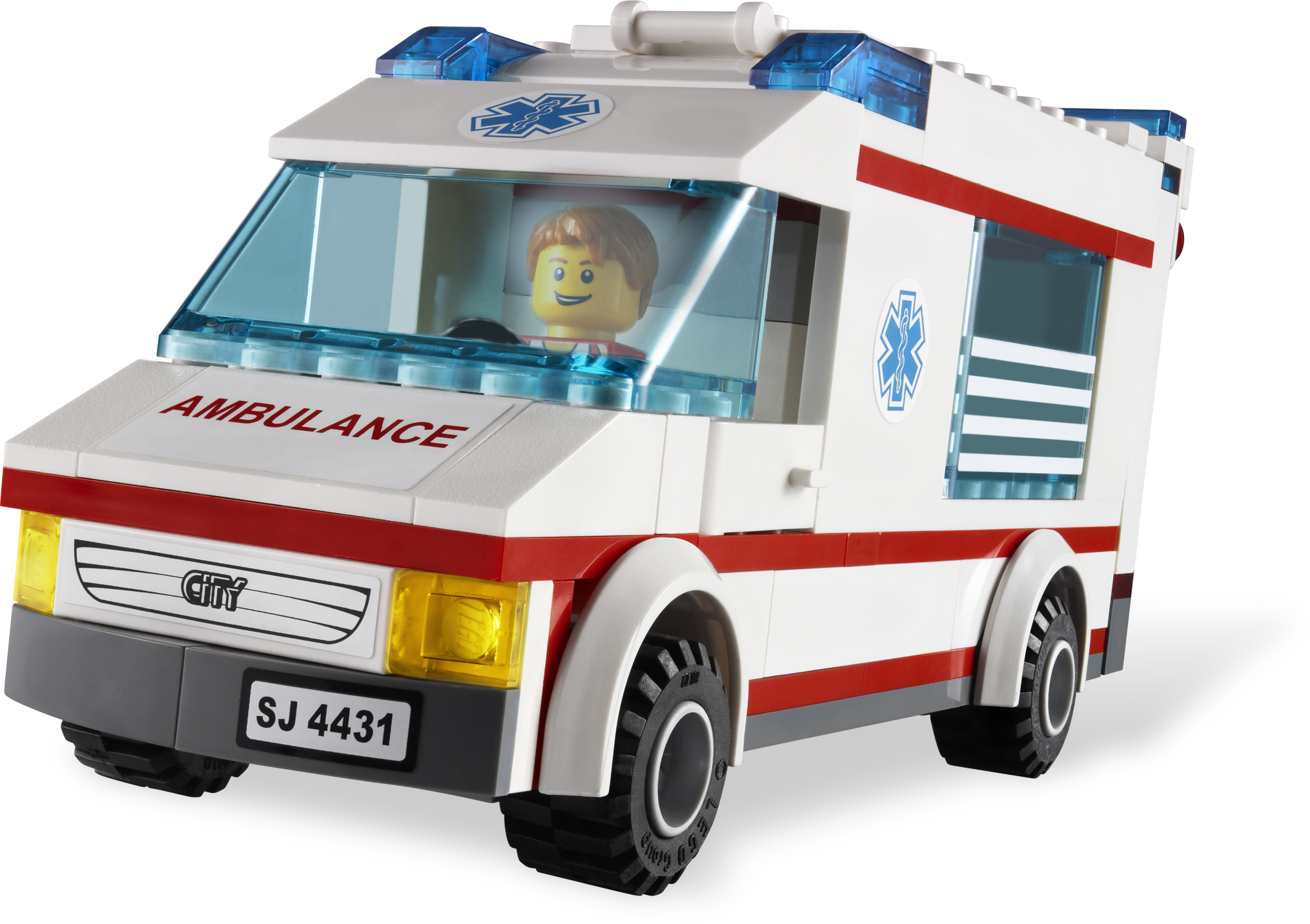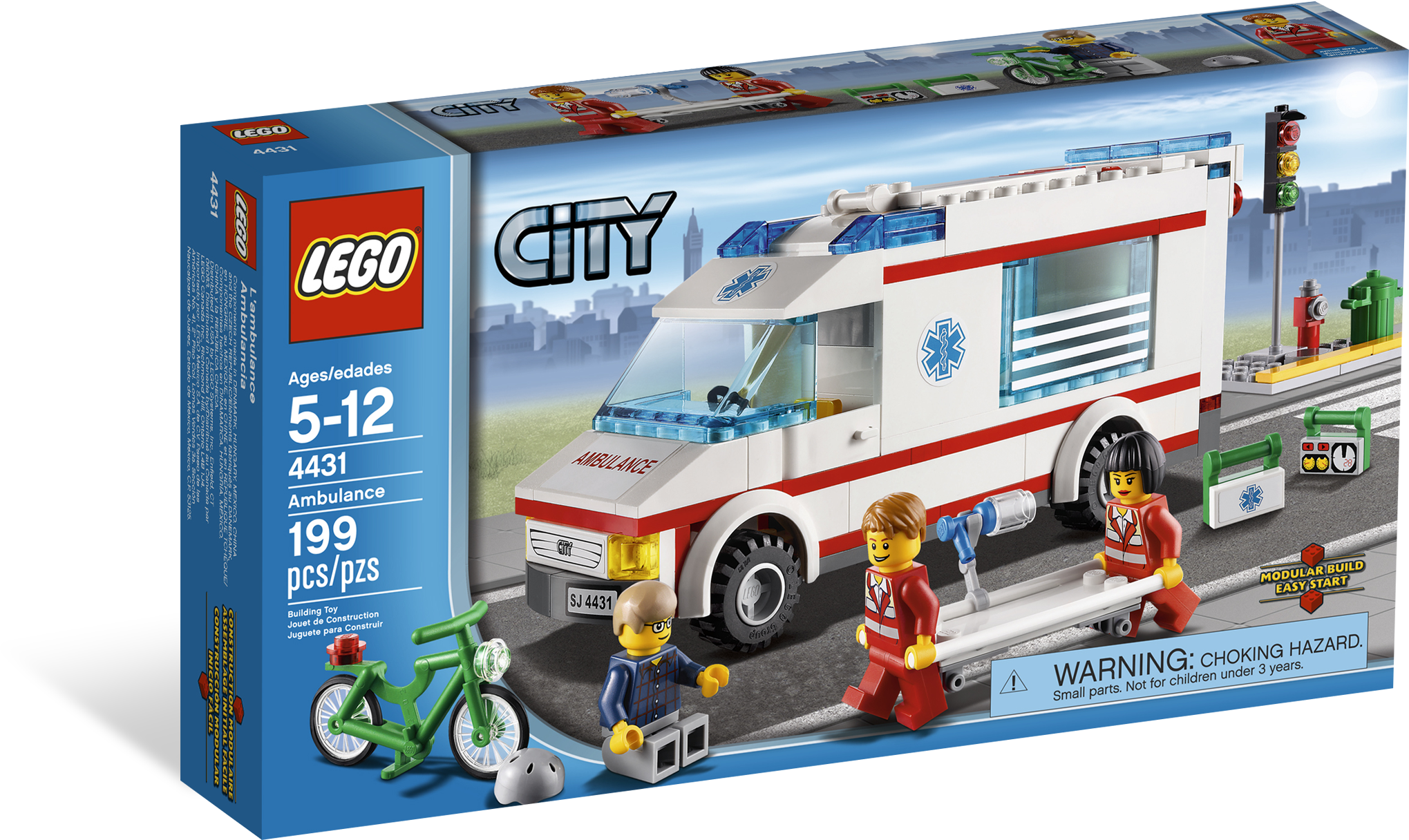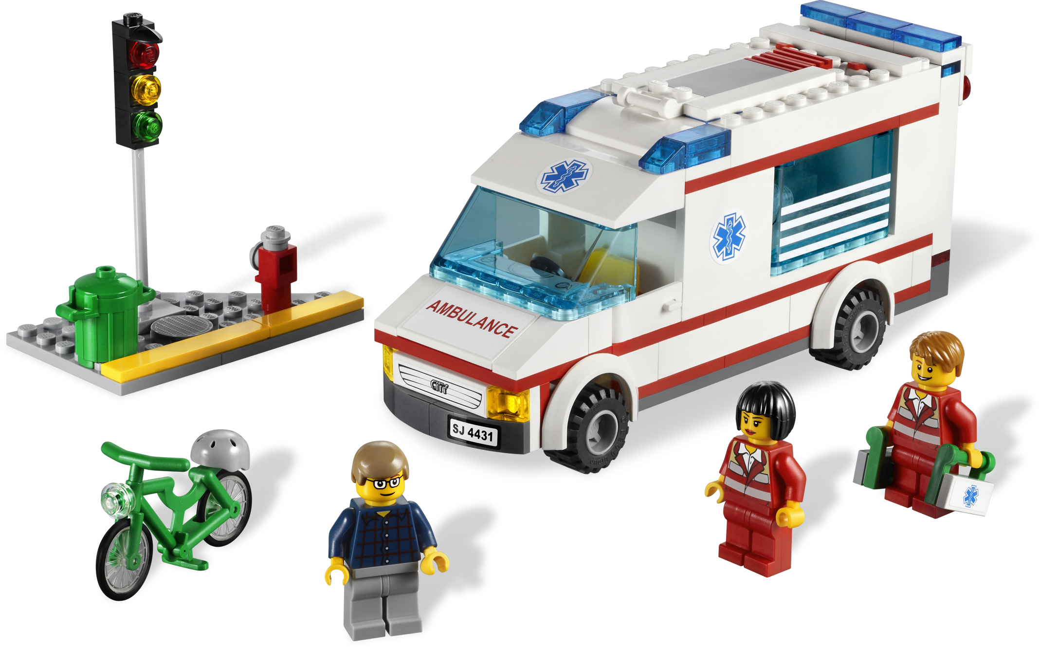 Race the patient to the hospital! There’s been an accident at the traffic lights and we need an ambulance fast! Lift the patient onto the stretcher, load him into the back of the ambulance and rush him off to the hospital as fast as you can! Includes 2 doctors and a patient minifigure.Includes 3 minifigures: 2 doctors and a patientFeatures opening rear door, detailed interior and removable stretcherAccessories include traffic lights, bicycle, helmet, trash bin and doctor’s equipmentRemove the roof to play inside!Rescue the patient with the stretcher!Measures over 6” (17cm) long
