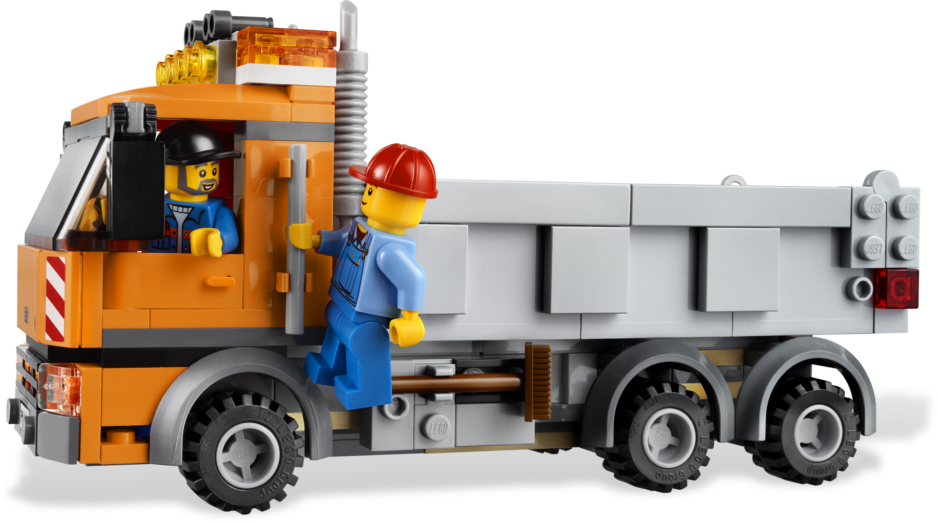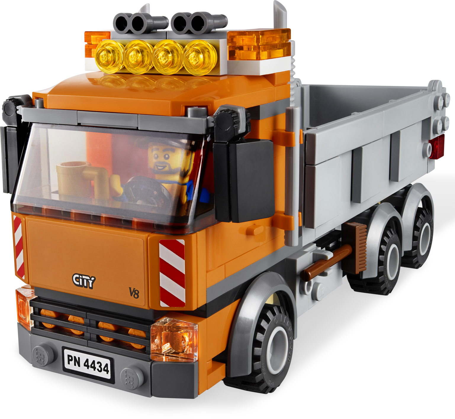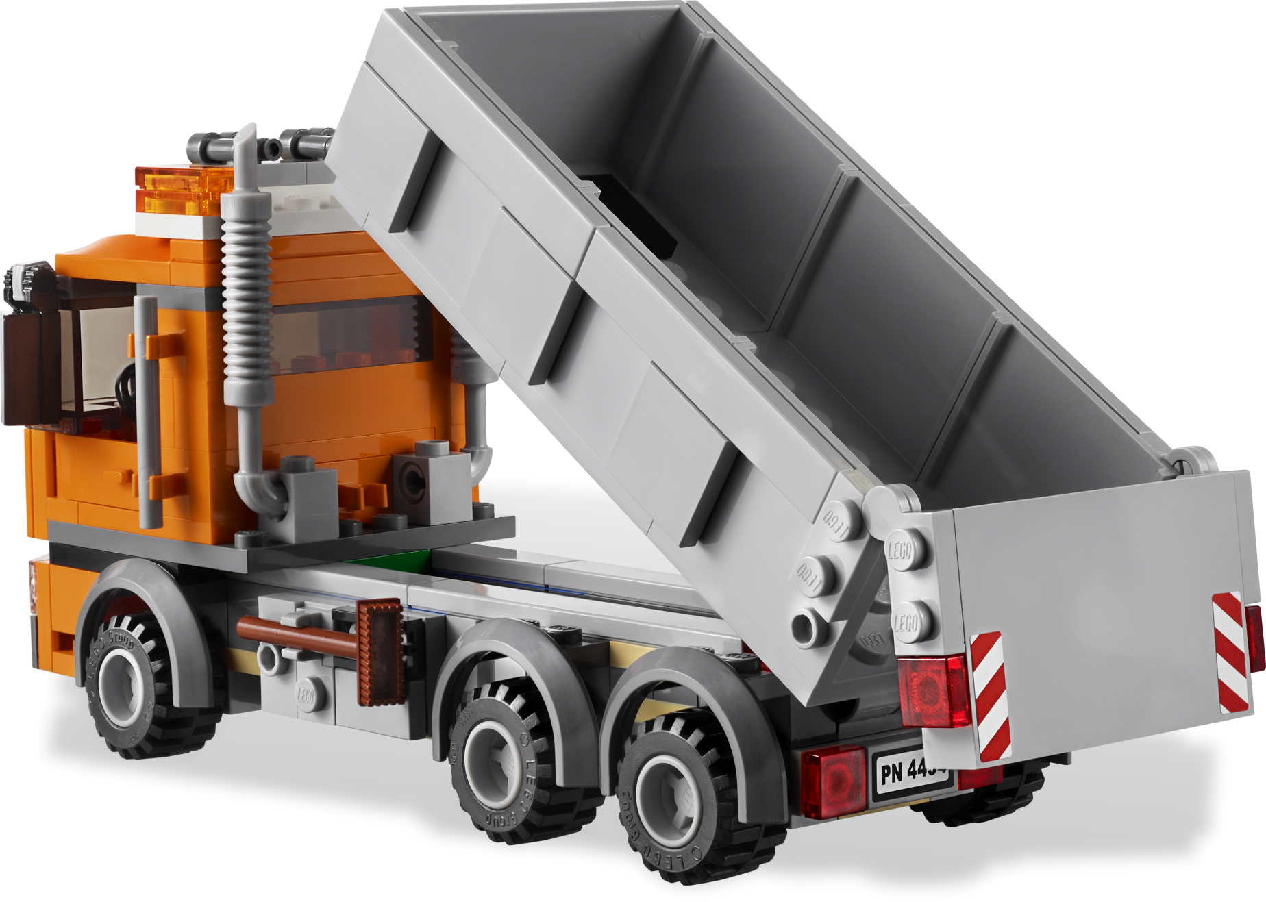 At the building site, the rugged Tipper Truck pulls up with another full load. Lift the huge bed to dump the rocks and get ready for the next haul! This truck is ready for any construction job with a 3-way lifting function and tons of accessories. Includes 2 worker minifigures.
