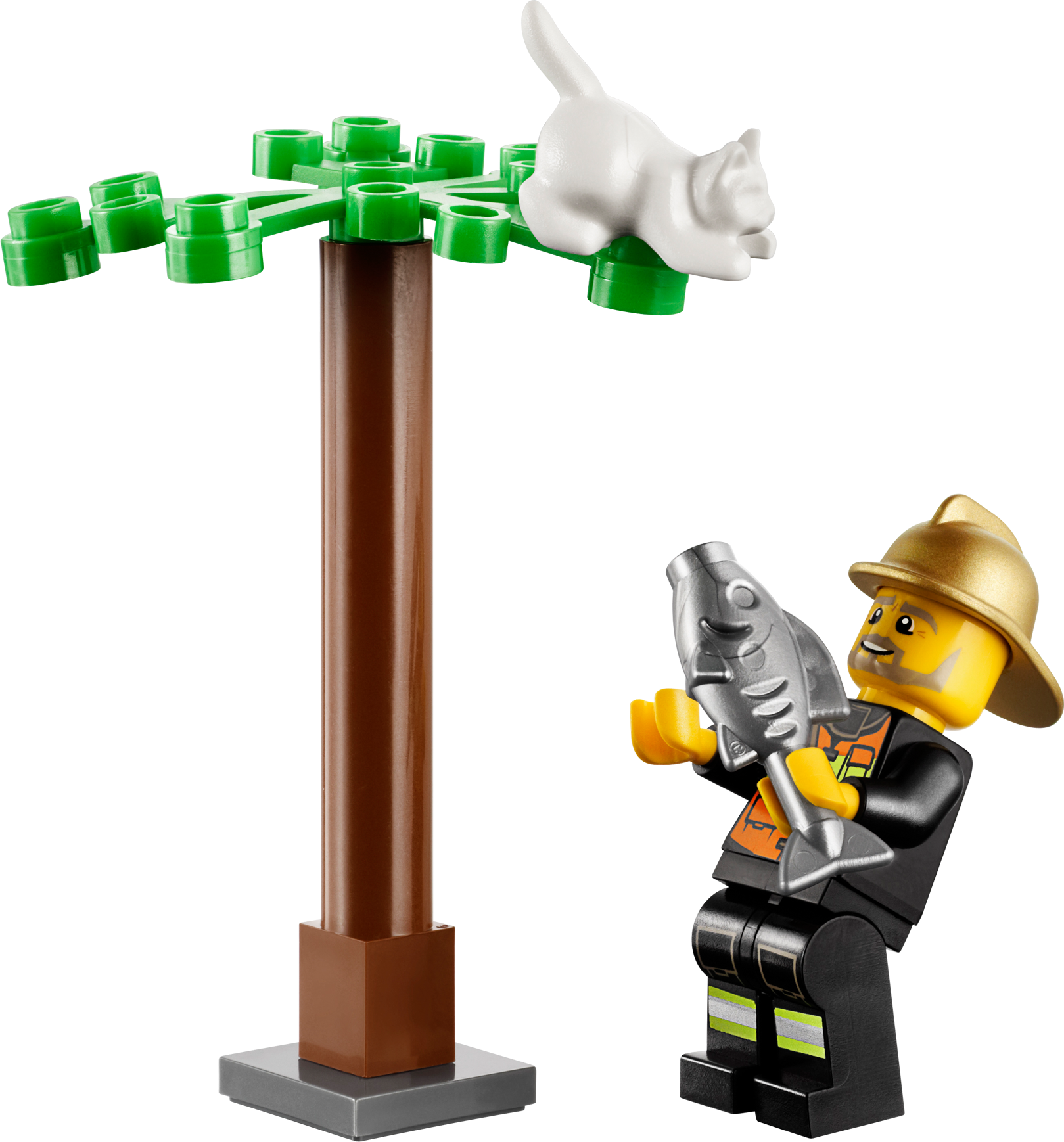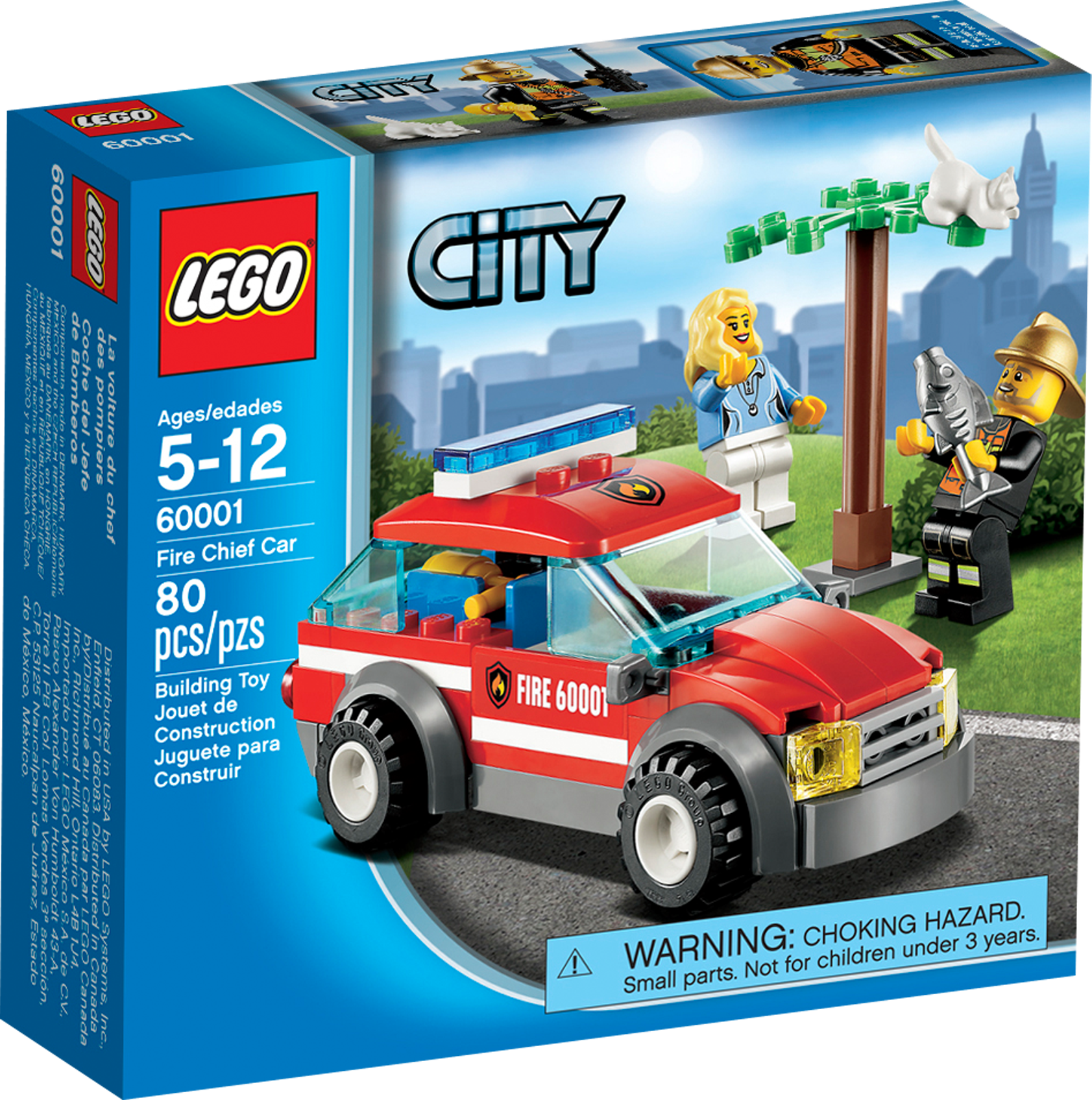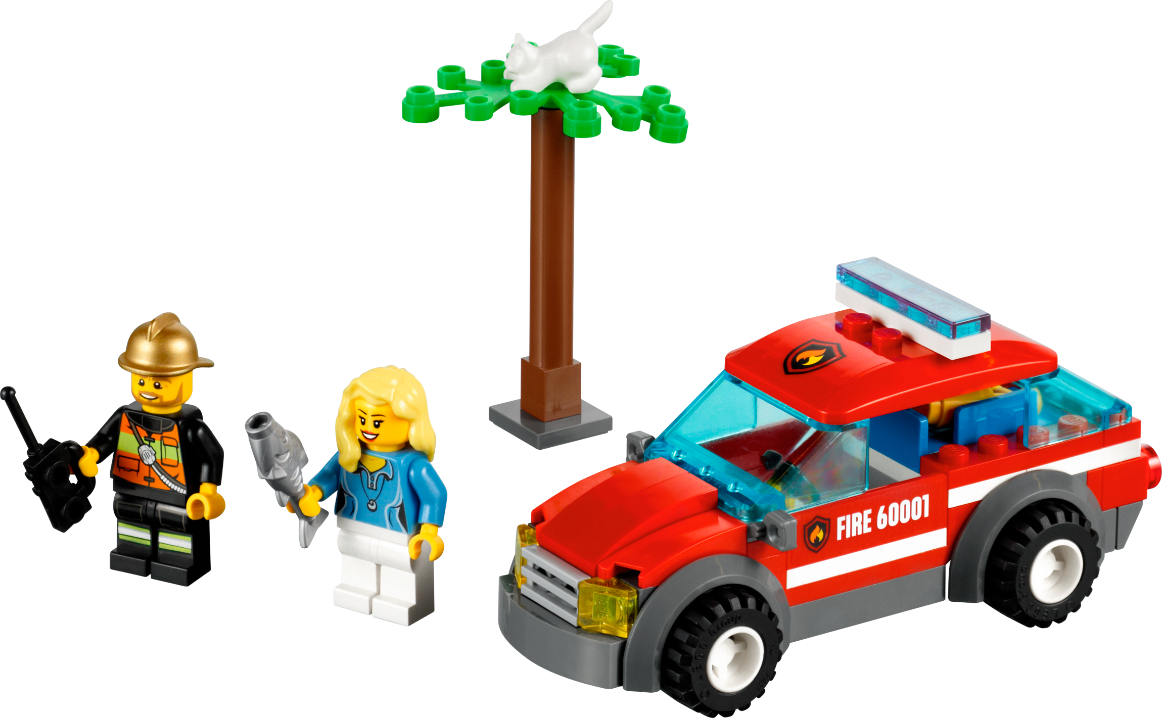 Race to the rescue in the Fire Chief's Car! Help save the day! When the cat gets stuck in the buildable tree, rush the fire chief to the scene in his cool Fire Chief Car to lure the cat down with a tasty fish. The fire chief is always ready to help the people of LEGO® City! Includes 2 minifigures: fire chief and a cat owner with assorted accessories.Includes 2 minifigures: fire chief and a cat owner with assorted accessoriesFeatures Fire Chief Car, tree, and a catAccessories include fire extinguisher, walkie-talkie and a fishAlso includes gold helmetRescue the cat!Fire Chief Car measures over 1" (4cm) high, 4" (11cm) long and 1" (5cm) wide