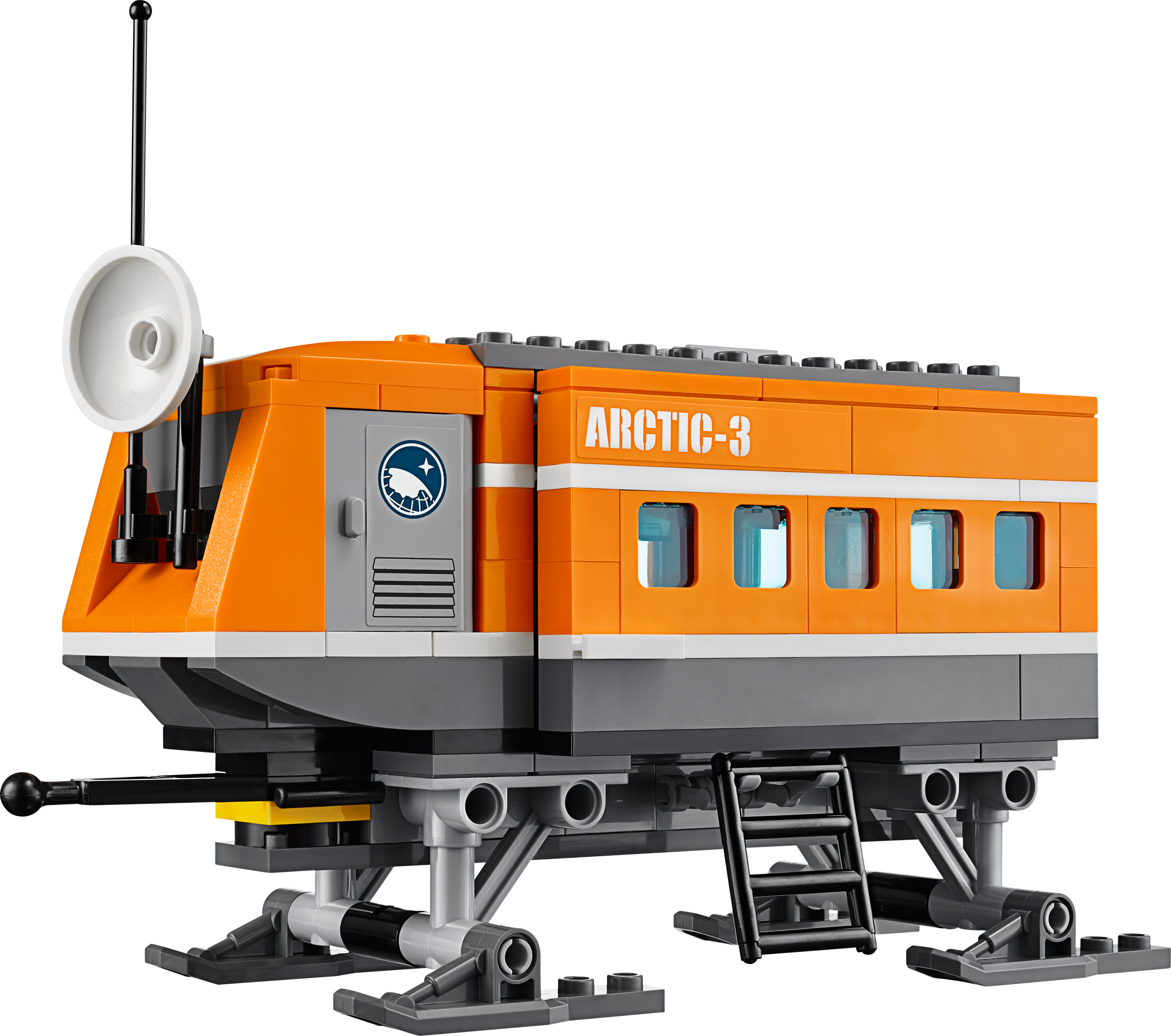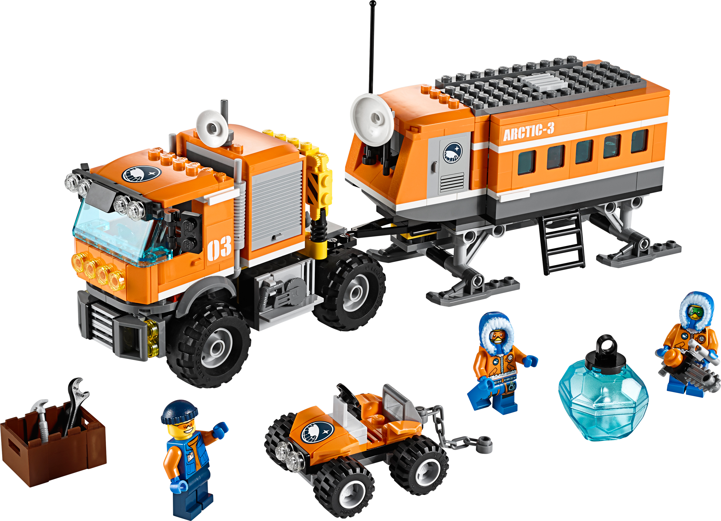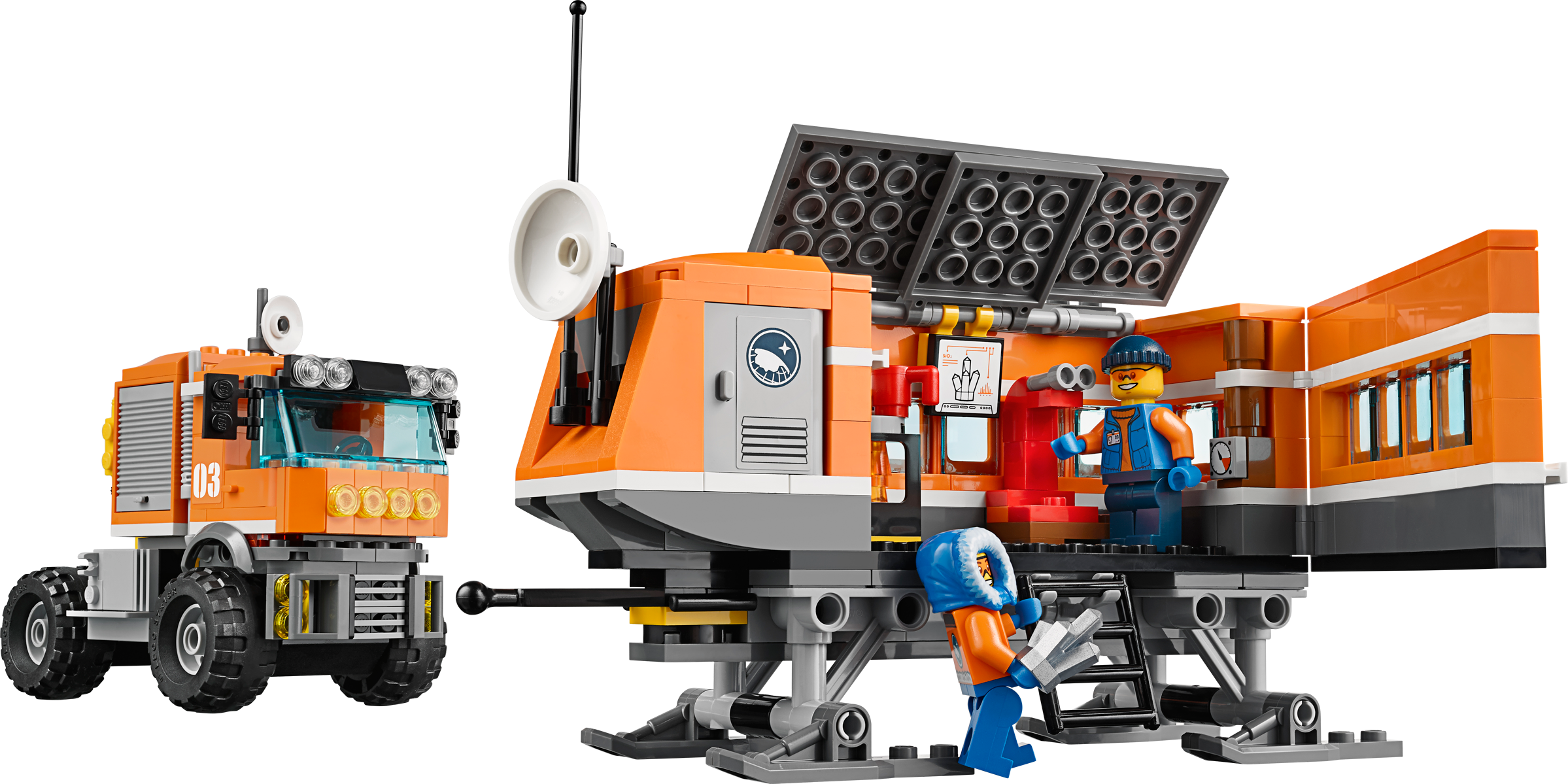 Investigate remote polar areas with the awesome LEGO® City Arctic Outpost! Drive out into remote areas with the mobile LEGO® City Arctic Outpost and investigate the secrets of the ice in its high-tech laboratory! The truck’s powerful engine and massive tires means it can cope with the toughest conditions. Pull out the box of tools from the trunk and unclip the circular saw and wrench from the sides of the truck. Open up the detachable mobile lab to reveal an impressive array of equipment, including computer screens and microscope, to support the explorers in the search for the secrets hidden in the ice. Cut through the ice block with the chainsaw and attach the all-terrain vehicle’s chain to drag it back to the Outpost. Then activate the crane to lift the ice into the lab for analysis. Includes 3 Arctic explorer minifigures with accessories.
