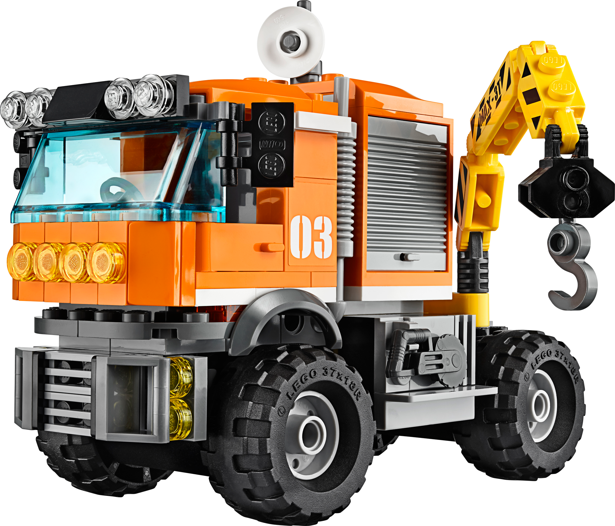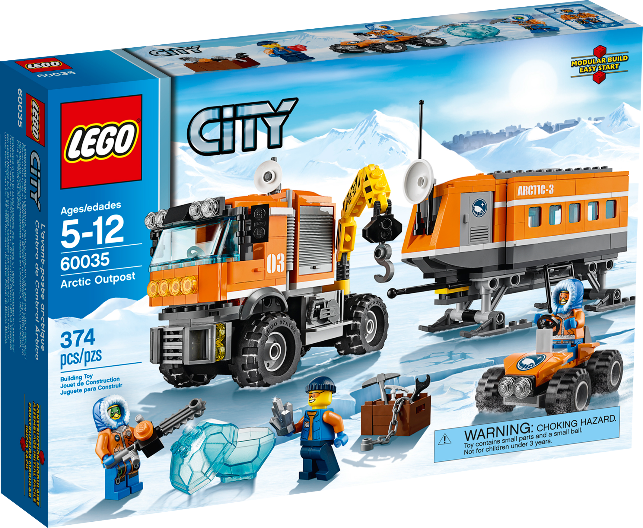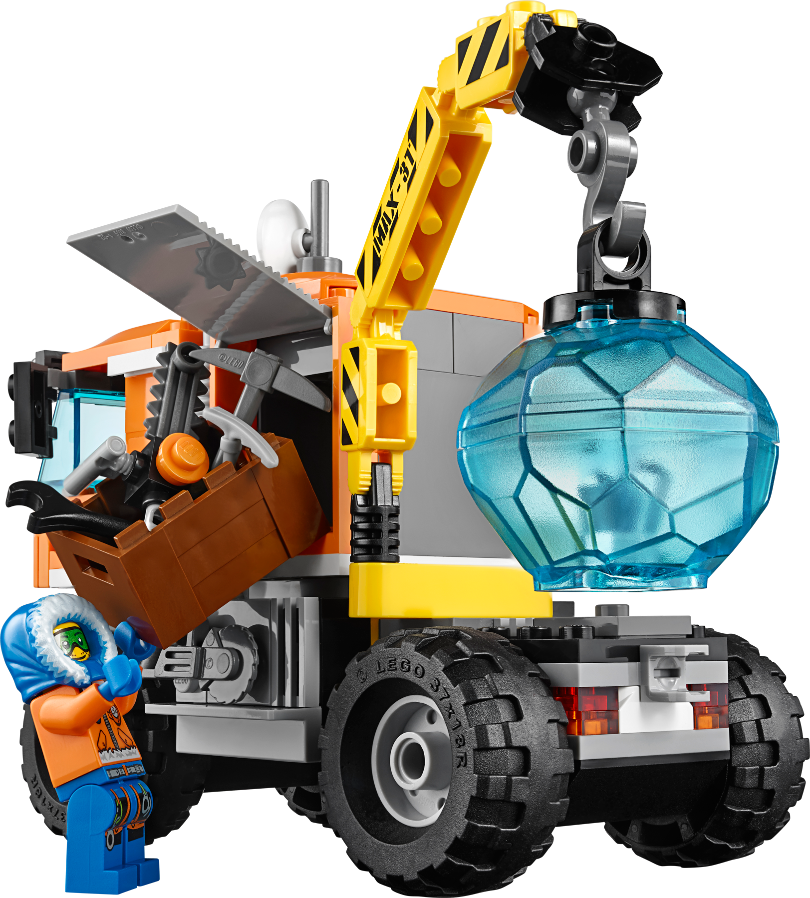 Investigate remote polar areas with the awesome LEGO® City Arctic Outpost! Drive out into remote areas with the mobile LEGO® City Arctic Outpost and investigate the secrets of the ice in its high-tech laboratory! The truck’s powerful engine and massive tires means it can cope with the toughest conditions. Pull out the box of tools from the trunk and unclip the circular saw and wrench from the sides of the truck. Open up the detachable mobile lab to reveal an impressive array of equipment, including computer screens and microscope, to support the explorers in the search for the secrets hidden in the ice. Cut through the ice block with the chainsaw and attach the all-terrain vehicle’s chain to drag it back to the Outpost. Then activate the crane to lift the ice into the lab for analysis. Includes 3 Arctic explorer minifigures with accessories.