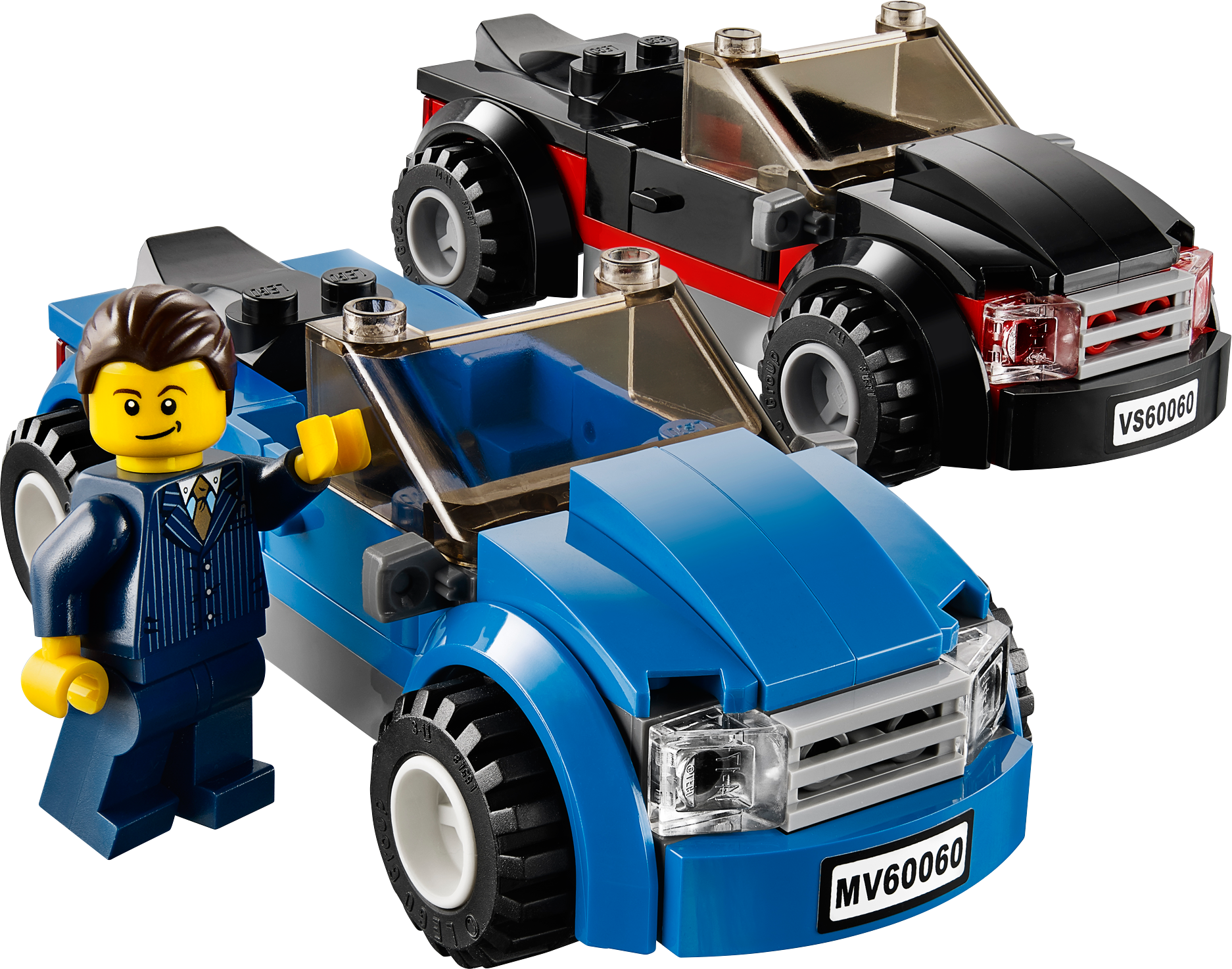Includes 2 minifigures with assorted accessories: a driver and a dealer.