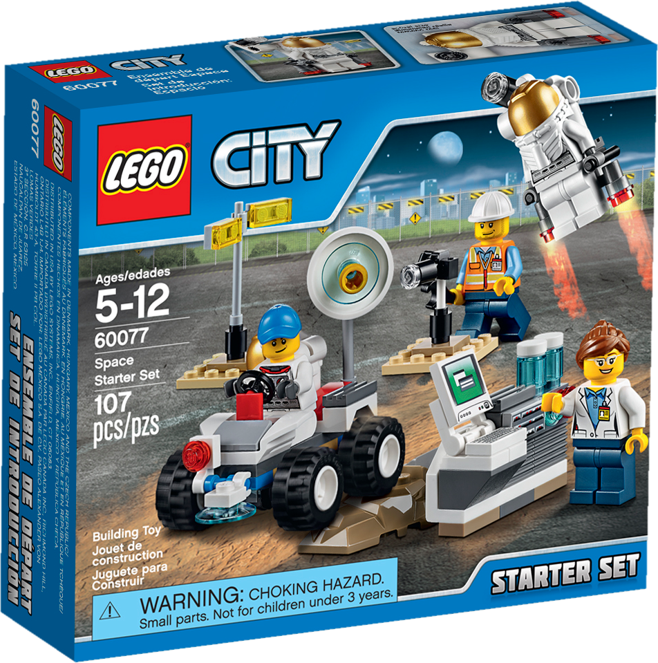 Join the space team at the test lab! Join the space team at the test laboratory with the LEGO® City Space Starter Set! Have the engineer tighten the nuts and bolts and check the infrared camera and drilling function on the Mars rover buggy before you take it for a test drive over the simulated Mars terrain. Help the astronaut test the jetpack and then join the scientist at the computer station to examine the results. It’s all in a day’s work for the LEGO City space team! Includes 4 minifigures with assorted accessories: a scientist, engineer and 2 astronauts. Includes 4 minifigures with assorted accessories: a scientist, engineer and 2 astronauts Features a Mars rover buggy, simulated Mars terrain, computer station and jetpack, camera and lamp elements Mars rover buggy features infrared camera and surface scanner elements Accessory elements include a wrench, space helmet, peaked cap and a hard hat Join the space team! Test-drive the Mars rover buggy! Power up the jetpack! Mars rover buggy measures over 2” (7cm) high, 2” (7cm) long and 1” (4cm) wide Computer station measures over 1” (4cm) high, 1” (4cm) wide and 1” (2cm) deep