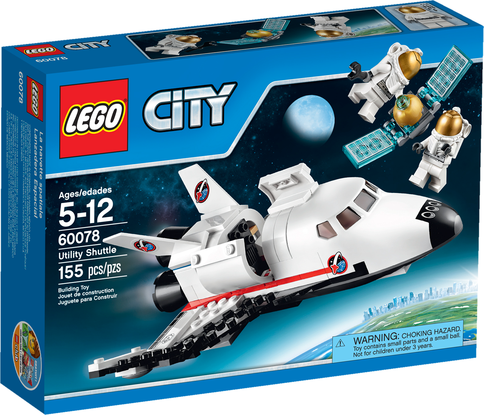 Blast off into space aboard the awesome Utility Shuttle! Blast off into space aboard the high-tech Utility Shuttle! Join the astronauts on a spacewalk high above the earth as they launch a new satellite into orbit. Open the cargo bay doors and slowly lift the satellite into position, then fold out the solar wings and use the wrench to tighten them into place. When you’re done, close the cargo bay doors and head back to earth for the next exciting LEGO® City space mission! Includes 2 astronaut minifigures with an accessory. Includes 2 astronaut minifigures with an accessory Features a Utility shuttle with opening cargo bay doors and a satellite Also includes a wrench element Blast off into space! Open the cargo bay doors Fold out the solar wings Shuttle measures over 2” (7cm) high, 7” (18cm) long and 7” (20cm) wide