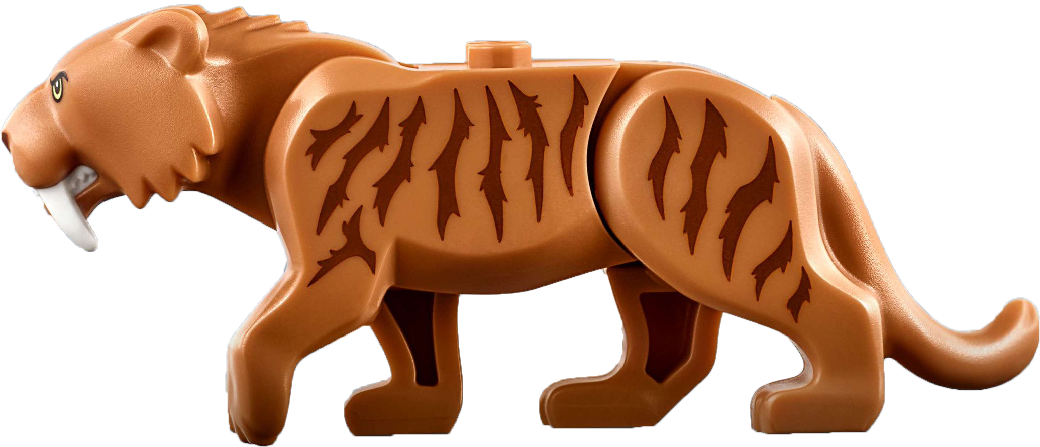 Also includes a translucent-blue ice block with hook latch on top and space inside for the ‘frozen' saber-toothed tiger figure.