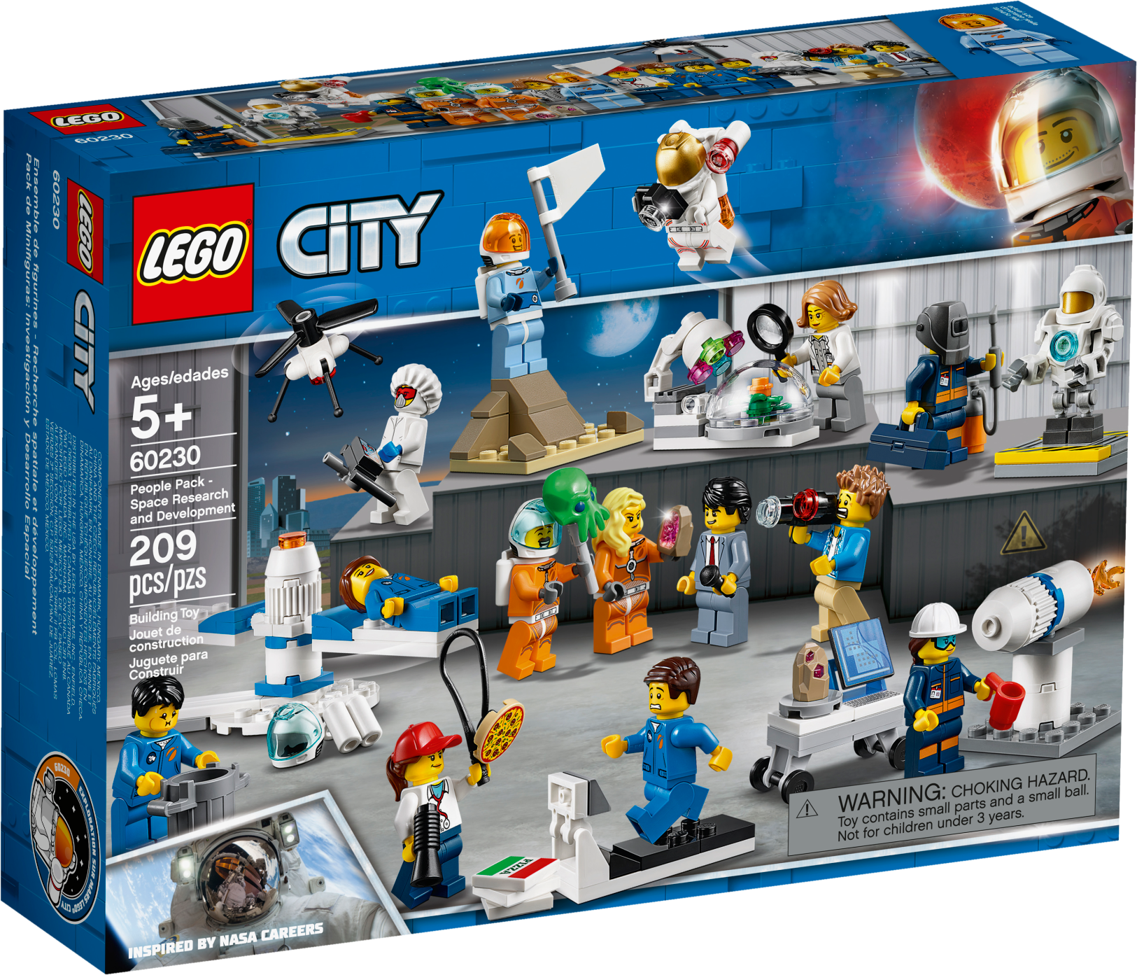 Includes 14 LEGO® City minifigures: 7 astronauts, a reporter, camera operator, personal trainer, a drone engineer, rocket engineer, a mechanical engineer and a botanist plus a robot figure.