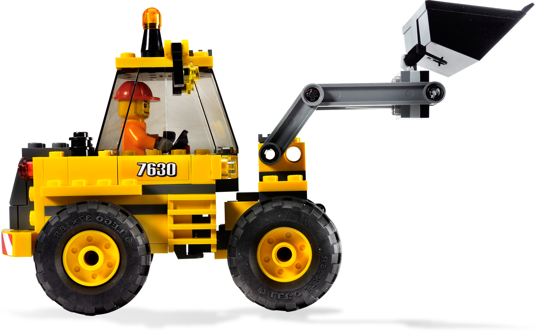 Clearing out a construction site is easy for this rugged front-end loader. With its big excavator bucket and heavy-duty wheels, it can load up a dump truck and get back to work in no time! Move around the construction site with ease! Front end loader pivots and the bucket lifts and lowers! Includes 1 construction worker minifigure! Measures 8" (20cm) long