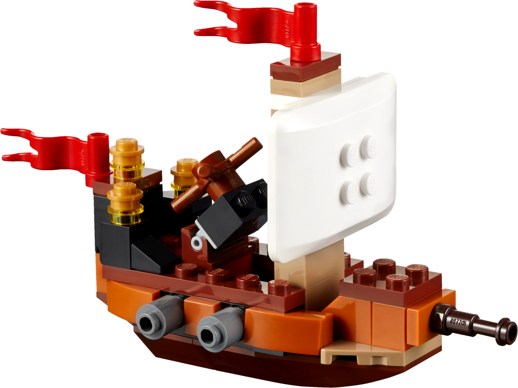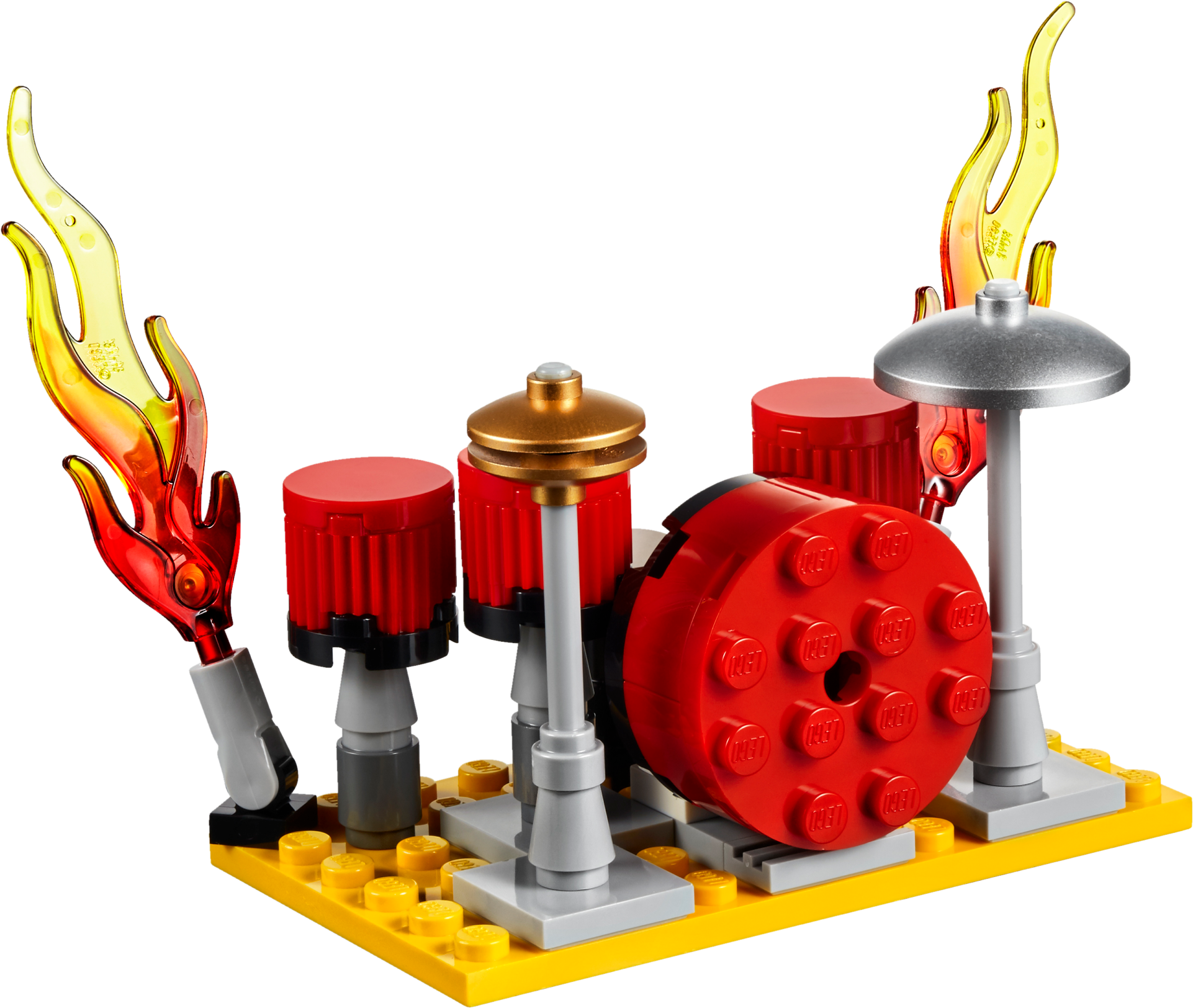 Accessory elements include a parrot, snake, apple, croissant, popsicle, loaf of bread, mug and glass, wrench, camera, binoculars, knight’s sword, pirate’s sword, 3 wigs, 2 pirate hats, 2 helmets with interchangeable space and underwater visors, knight's helmet, 2 sets of flippers and a stick of dynamite.