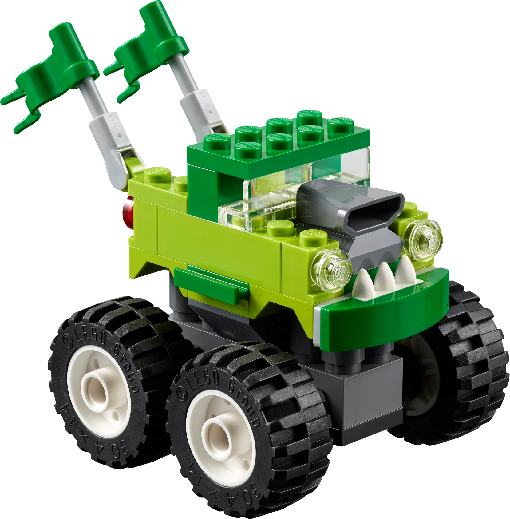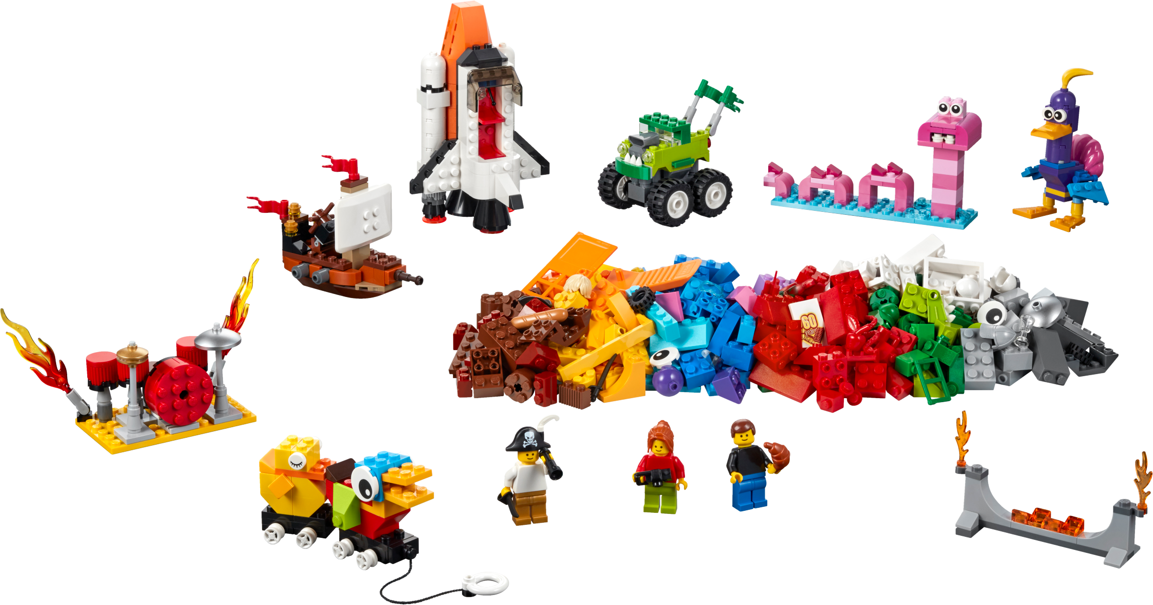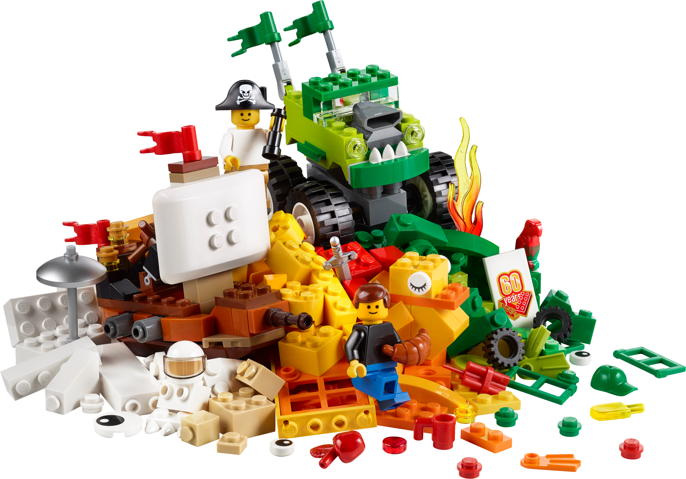Features a mix of bright and colorful LEGO® pieces that allow for open-ended creative play, special pieces including wheels, shapes and eyes, plus a special edition tile celebrating 60 years of the LEGO brick.
