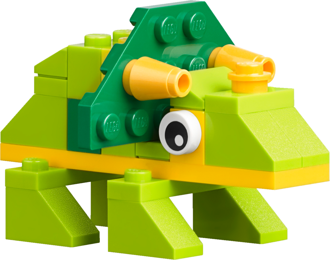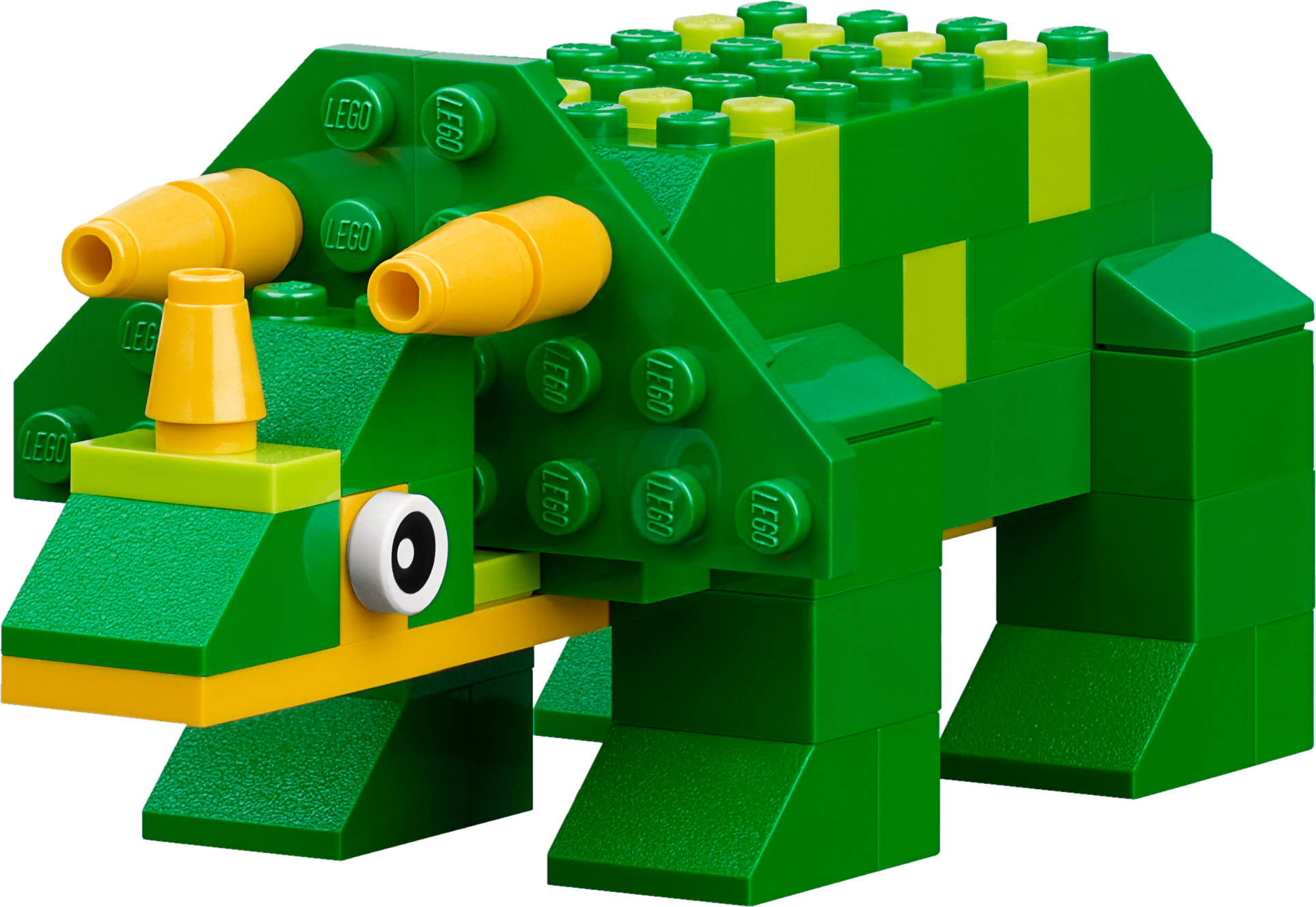Features LEGO® bricks with face decoration, and farmyard and dinosaur-themed elements to spark the imagination.