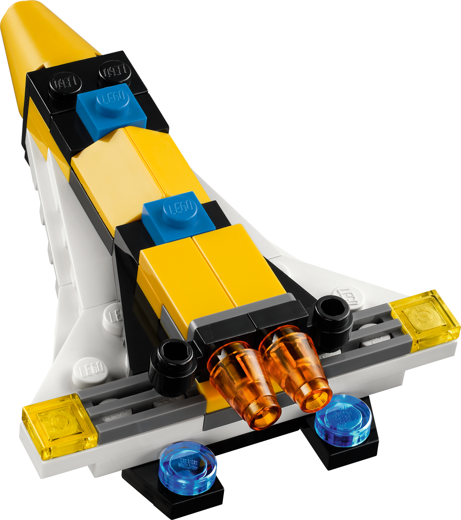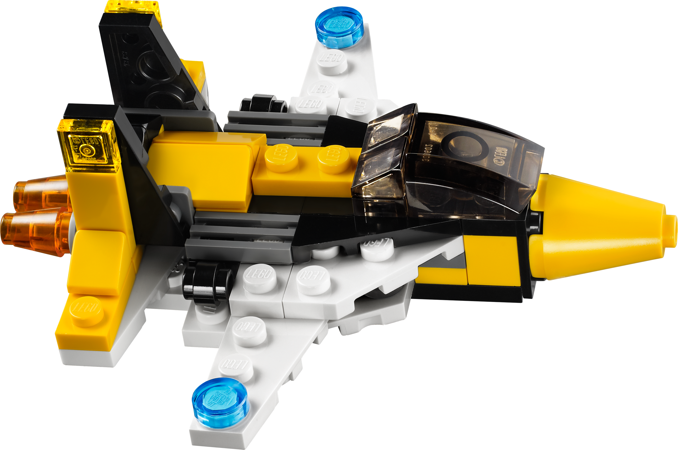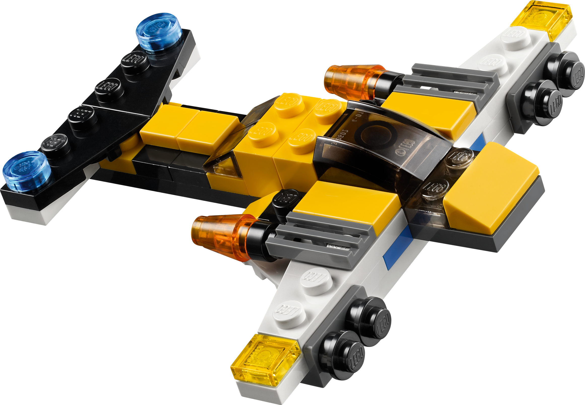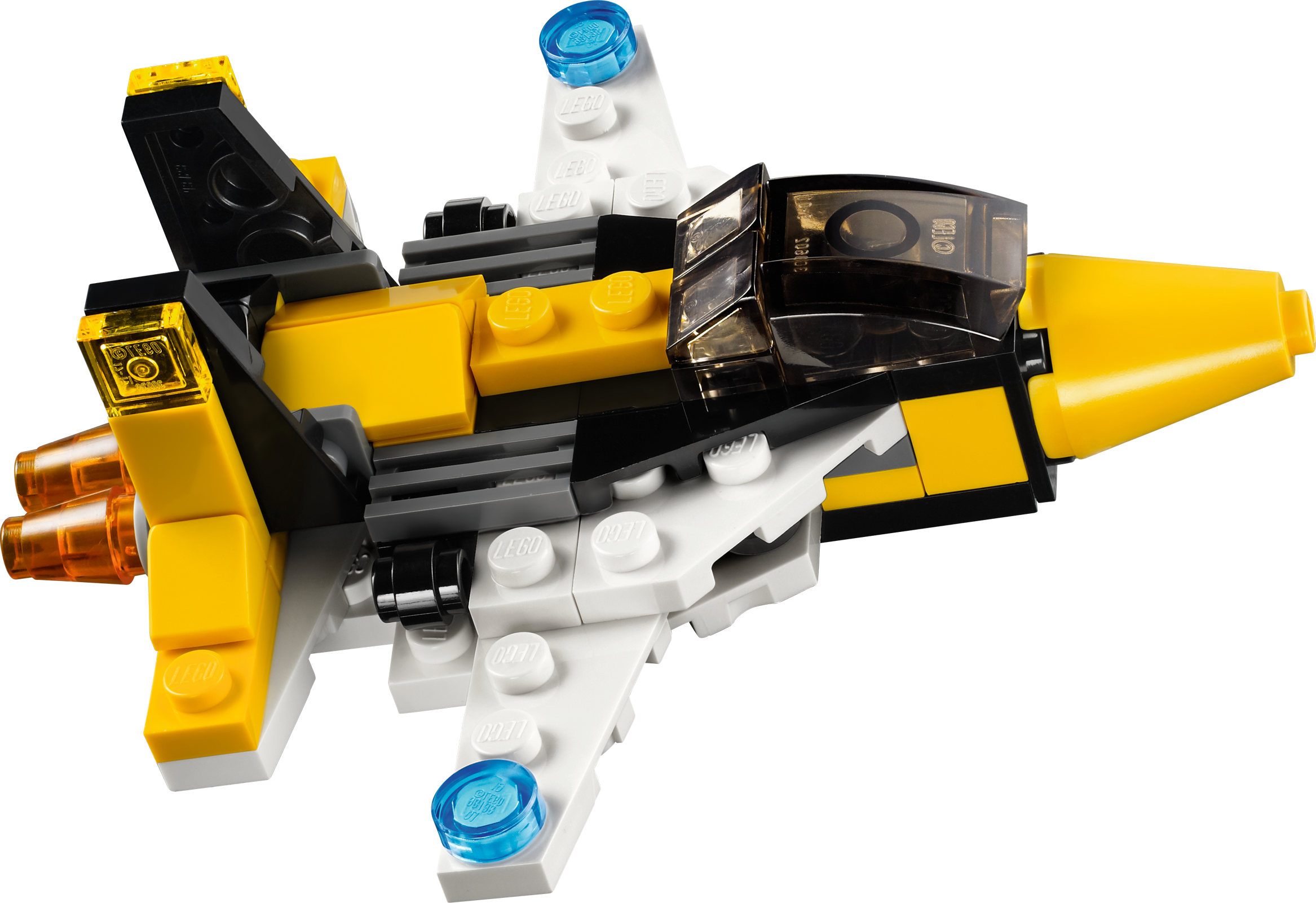 Streak across the sky with this great 3-in-1 mini-aircraft! Streak through the clouds like lightning in this sleek Mini Skyflyer! Sweep the wings back and fire the powerful orange afterburners to fly the fastest creation in the sky! This easy-to-build yellow jet rebuilds into a classic airplane or powerful space rocket for even more high-flying fun. Comes in a handy reusable storage can.•3-in-1 model: rebuilds into a classic airplane or powerful space rocket•Fold the wings back!•Store your creation in the sturdy reusable storage can!•Rebuild into 2 more models!•Measures over 1" (3cm) high, 3" (10cm) long and 3" (9cm) wide•Classic airplane measures over 1" (3cm) high, 2" (6cm) long and 1" (3cm) wide•Space rocket measures over 1" (4cm) high, 2" (6cm) long and 1" (3cm) wide