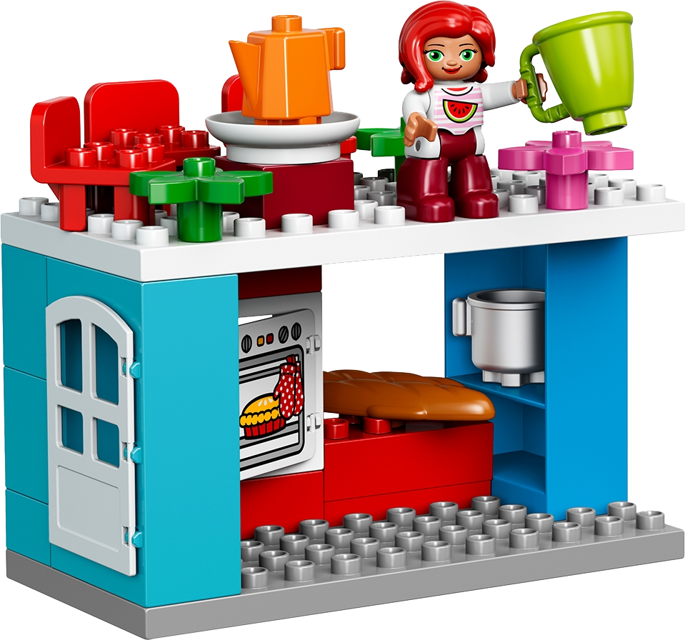 Play out real-life scenarios in LEGO® DUPLO® My Town: a recognizable world with modern DUPLO figures. There are endless play opportunities in this easy-to-build house—toddlers can have fun practicing activities and routines, from getting up in the morning, preparing and eating a meal to washing the car. Watch role-play skills develop as they play out everyday life with three DUPLO figures. Includes three LEGO® DUPLO® figures: a mom, dad and a child. Features a modular house over three levels with a kitchen with opening oven, bathroom with toilet, basin and opening mirror cabinet, bedroom with beds, child’s room with opening dormer windows, roof terrace dining area, interior shelves, opening doors, and a car. Includes bricks decorated as a mirror, toilet paper, alarm clock, oven and a teddy bear as story starters. Accessory elements include a cooking pot, plate, baguettes, jug, cup, brush and flowers. Use the modern characters, accessories and decorated bricks to help reinforce daily routines and play out everyday scenarios with your toddler. This fun and easy-to-build family house encourages early construction skills and presents endless play opportunities. The modular structure means this set can be rearranged and built in lots of different ways. Toddlers will enjoy pretending to help dad wash the car or bake the baguettes in the oven. LEGO® DUPLO® products are specially designed to be safe and suitable for small hands. This set offers an age-appropriate build and play experience for ages 2-5. Family House measures over 11” (28cm) high, 14” (38cm) wide and 3” (9cm) deep. Car measures over 1” (4cm) high, 3” (9cm) long and 2” (6cm) wide. There are several My Town products to collect and play out your child's everyday life in a recognizable LEGO® DUPLO® world.