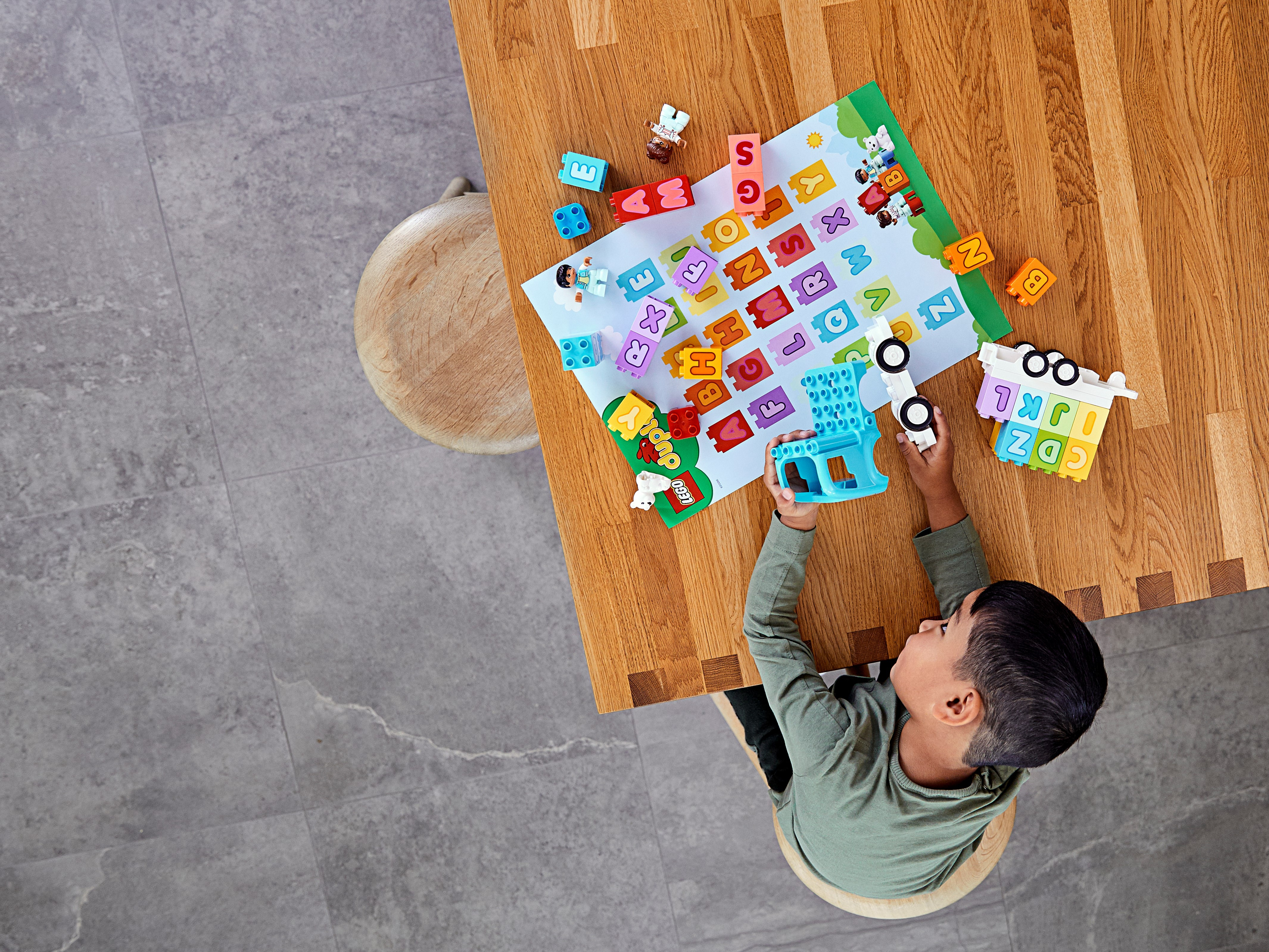 With the LEGO® DUPLO® Alphabet Truck, preschoolers can combine creative building, imaginative play and learning the alphabet. It’s the ultimate playful learning toy for toddlers!Kids’ alphabet learning toyToddlers improve their fine motor skills as they stack the letter bricks onto the back of the truck. When they role-play imaginative adventures with the boy, girl and bear, they develop their visual-spatial awareness. The 26 letter bricks provide lots of opportunities to become familiar with the letters of the alphabet and improve language skills. And as parents and carers join in the fun, they share precious developmental milestones with their little builder.Irresistible educational building toys for toddlersLEGO DUPLO playsets put open-ended play, self-expression and learning into toddlers' hands. They're designed to be the best toys for preschoolers' needs – so little hands can't wait to get hold of the toddler-friendly bricks and start building!Introduce toddlers to their ABC with this alphabet bricks learning toy. This versatile gift for kids inspires creative building, imaginative play and alphabet learning – all in one truck full of imaginative fun!As well as loading and unloading the truck with 26 toddler-friendly bricks – displaying all the letters of the English alphabet – a boy, girl and adorable teddy bear are here to share imaginative role-play adventures.Toddlers improve their fine motor skills as they stack letterbricks onto the truck. As they do that, they become familiar with the letters of the alphabet and soon learn to spell basic words (F-U-N!).With its cute characters and colorful, easy-to-handle bricks, this educational toddlers’ toy makes a great Christmas, birthday or any-other-day gift for boys and girls aged 18 months and up.The truck measures over 4” (12cm) high and 2” (7cm) long, providing an A-to-Z of playful learning on a generous scale. Combine with other LEGO® DUPLO® sets for even more fun.You don’t need batteries to fuel the LEGO® DUPLO® Alphabet Truck – just kids’ imaginations. Hands-on, battery-free toys put creative play into kids’ hands, developing their fine motor skills and spatial awareness.Open the playset’s box and the building, playing and learning begins immediately. Simple instructions for parents and toddlers provide ideas and inspiration for instant enjoyment.Introduce preschoolers to learning with open-ended creative play that inspires youngminds. With familiar scenes, fun characters and easy-to-handle pieces, LEGO® DUPLO® playsets are ideal developmental toys for toddlers.LEGO® DUPLO® playsets meet the highest industry standards, which ensures they are easy for little fingers to pick up, place and pull apart – it's been that way since 1969.At the LEGO Group, we drop, squash, twist, heat, bite, bend, scratch and stretch LEGO® DUPLO® bricks and pieces to make sure every building set meets the highest global safety and quality standards.