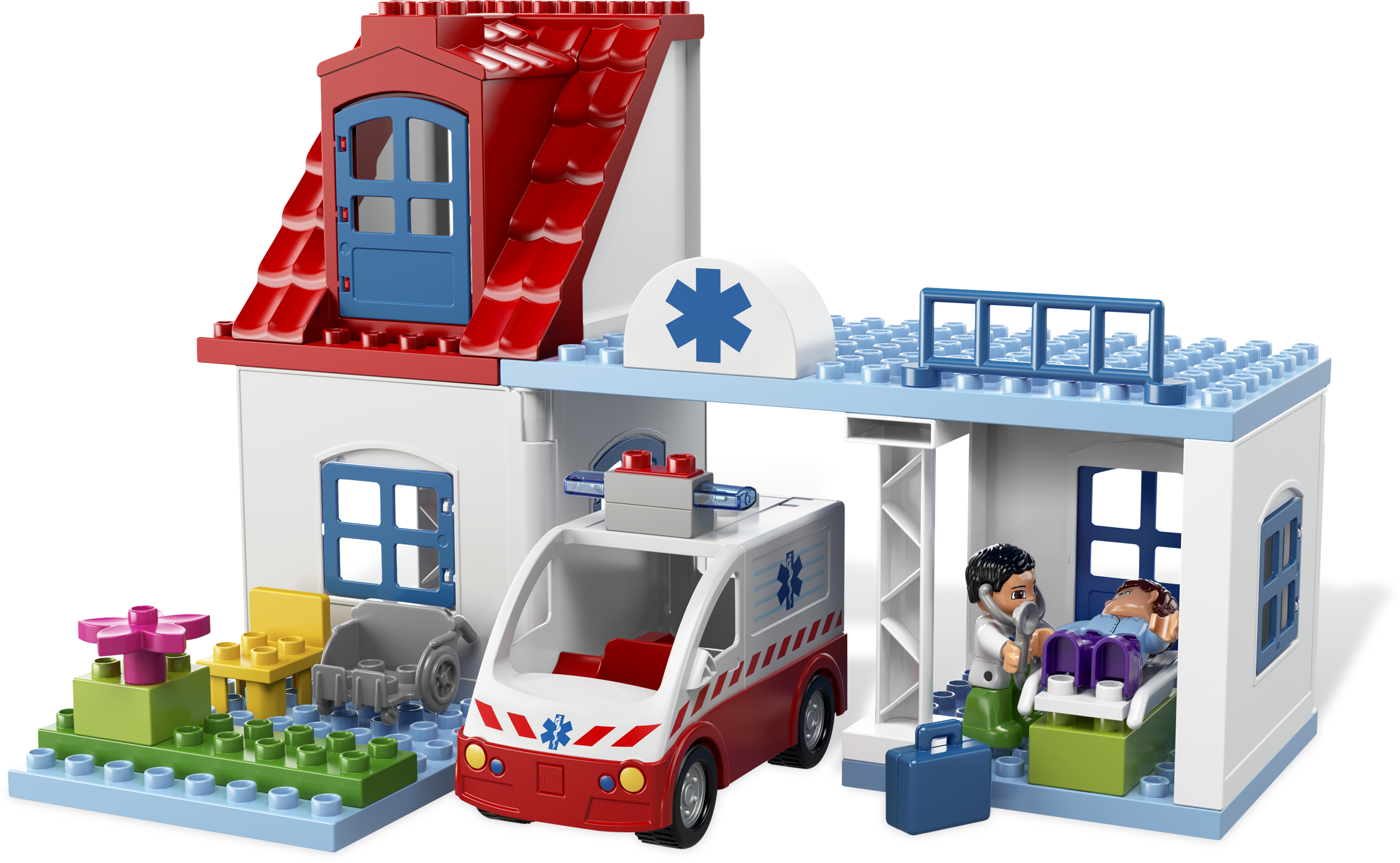 The doctor is in! The doctor is ready for the next patient at the Doctor’s Clinic! With patients arriving in the ambulance with real lights and sounds, he’s ready with his stethoscope to make the diagnosis. Bring the patient to her bed with the working wheelchair, or bring her up to the second floor examination room to put on her cast. Includes 3 LEGO® DUPLO® figures: doctor, woman and baby Features ambulance with light and sound Doctor’s Clinic includes 2 floors and an examination room Accessories include stethoscope, wheelchair, removable cast, bed, chair and much more DUPLO products are fun and safe for younger hands Measures 18” (45cm) wide and 12” (30cm) long