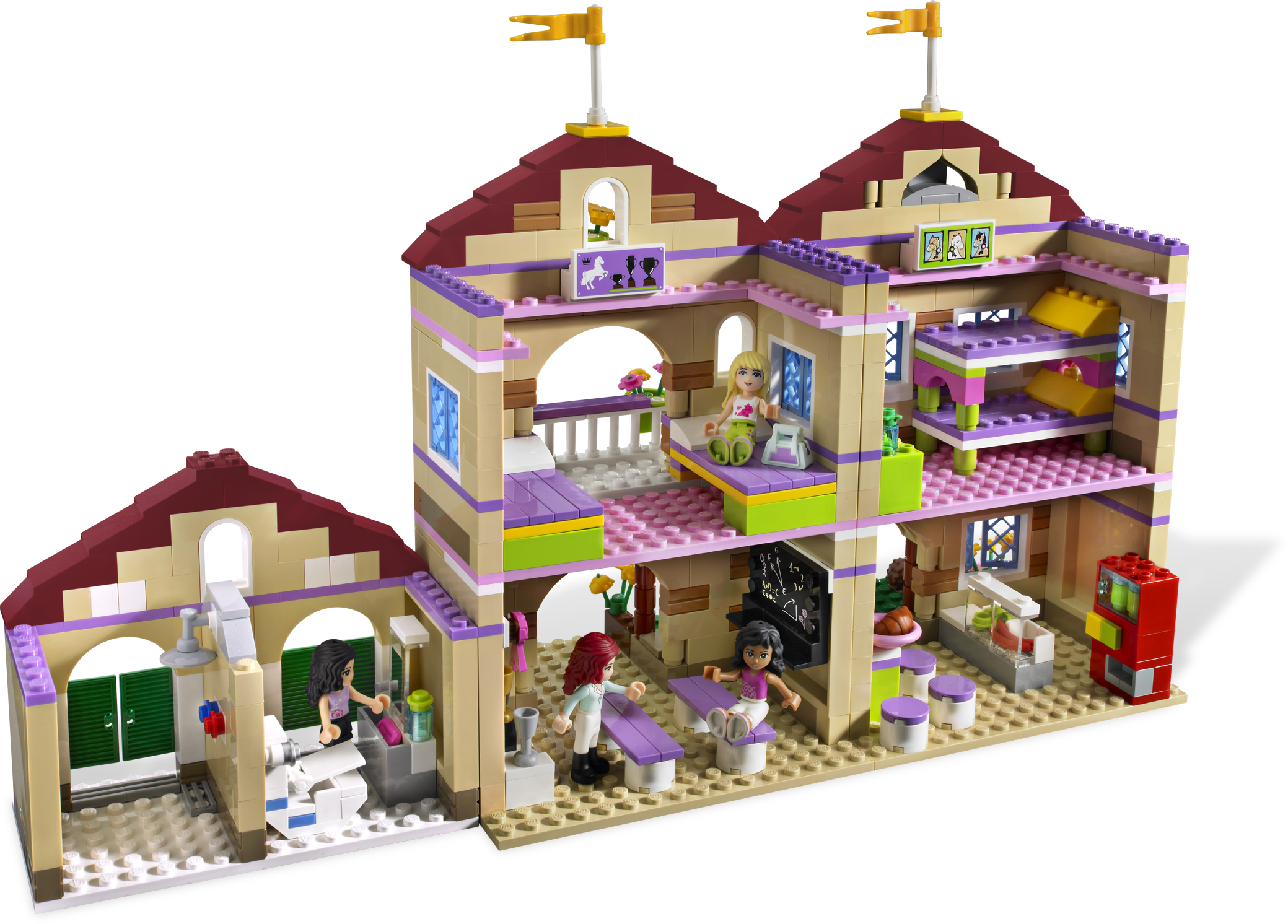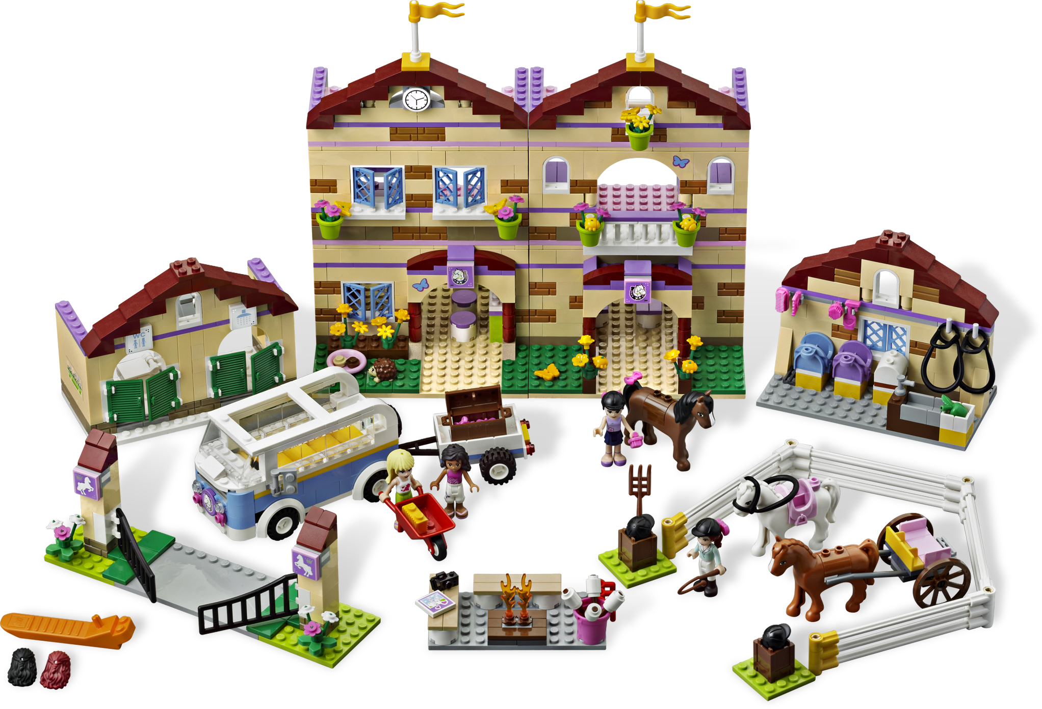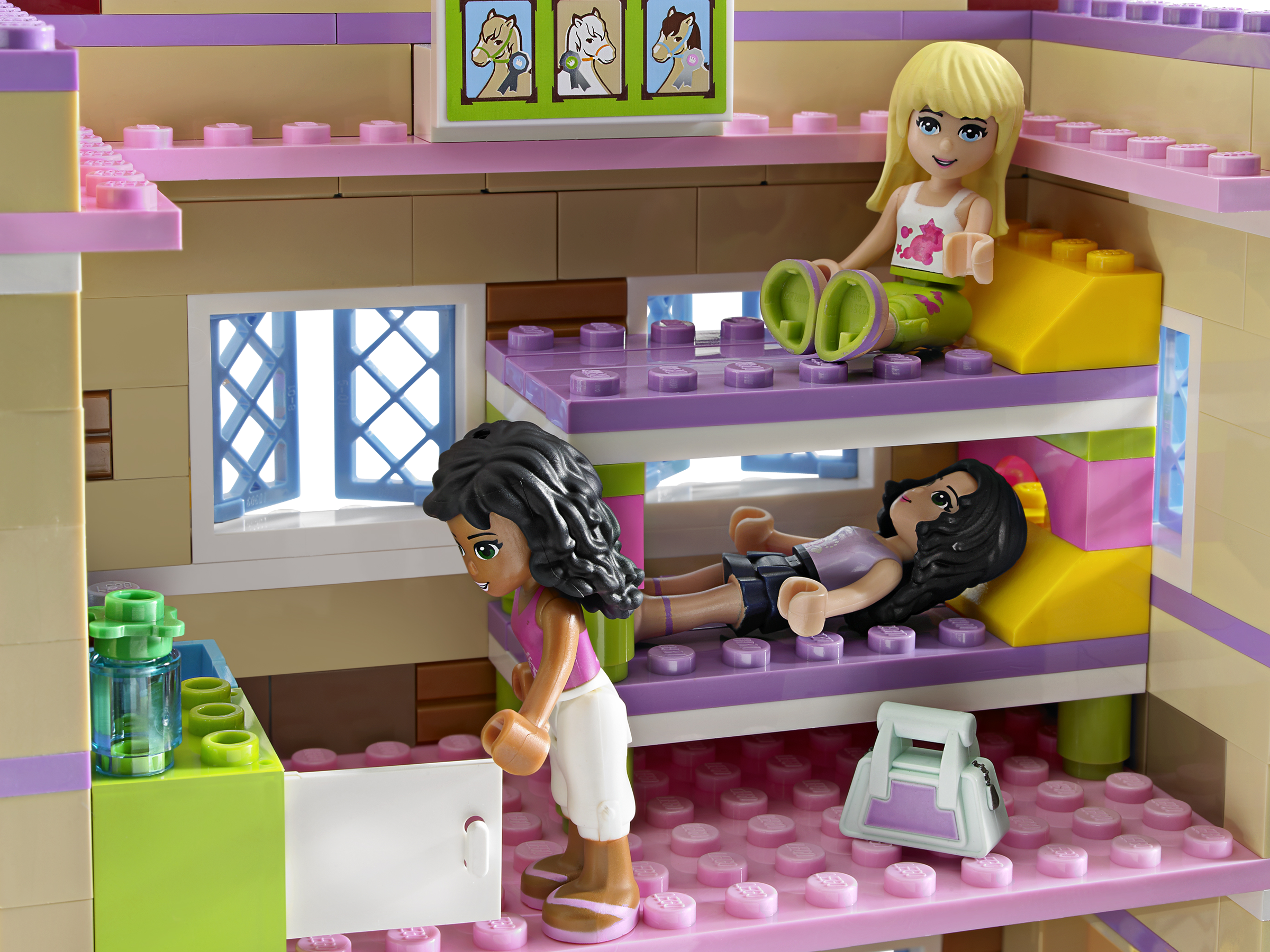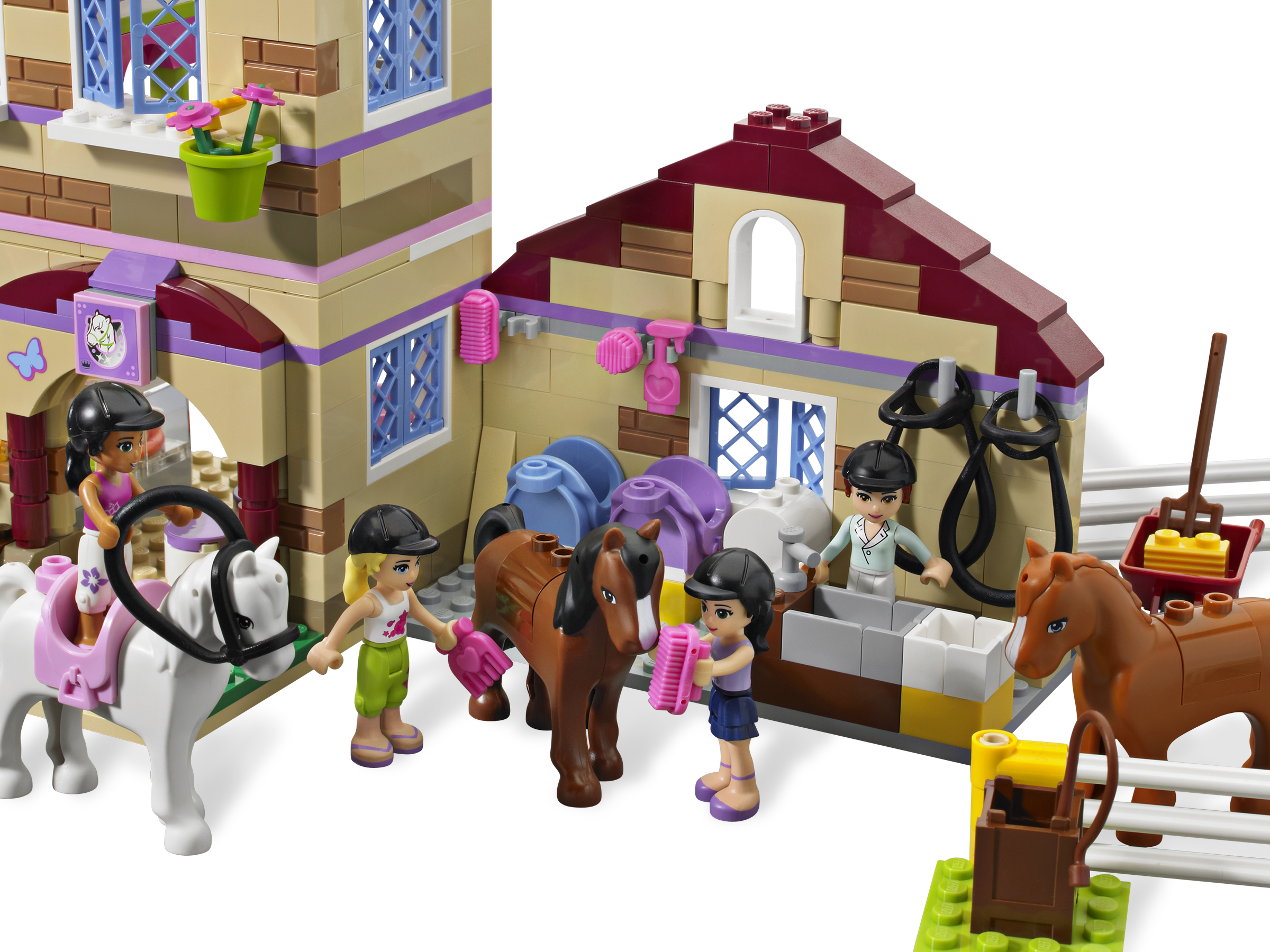 Head off to Summer Riding Camp with the LEGO Friends! Spend the summer at the LEGO Friends Summer Riding Camp! Head off to camp with Emma, Stephanie and their friend Ella in the mini-bus, complete with a trailer for bringing everything you need for a summer with horses. Practice your horseback riding skills and learn to pull the cart with the help of the Instructor Theresa mini-doll figure! Take lessons in the classroom then take the horses out for a ride. Learn to put on their saddles and hold the reins before you ride around the pretty pastures. Then serve up a yummy meal in the canteen, clean up in the bath house and hang out by the campfire! The LEGO Friends love roasting marshmallows and reading each other stories before they go to bed in the cool camp bunkhouse with 4 beds. Includes Emma, Stephanie, Ella and Instructor Theresa mini-doll figures.• Includes 4 mini-doll figures: Emma, Stephanie, Instructor Theresa and Ella• Features 2 two-story buildings: the camp canteen, classroom, 2 bedrooms, bath house with toilet, horse staging area and paddock• Includes a mini-bus with seats for all 4 mini-doll figures and a detachable trailer• Animals include hedgehog and 3 different colored horses: Champion, Foxy and Sunshine• Accessories include camera, storybook, riding helmets, croissants, salad, sausages, dining furniture, blackboard, 3 saddles, 3 bridles, pitch fork, whip, bonfire, marshmallows, cups; animal accessory set: brushes, comb, bows, hairspray, soap and prize ribbons; and flower accessory set: flowers, ladybirds and butterflies• Load the LEGO Friends into the mini-bus!• Ride, groom and feed the horses!• Rebuild and create new ways to play!• LEGO Friends pieces are fully compatible with all LEGO System bricks• Collect all of the LEGO Friends sets for a whole city of LEGO Friends fun!• LEGO Mini-dolls are figures made especially for the world of LEGO Friends, with thousands of customizable fashion and accessory combinations!• Measures over 9” (23cm) tall, 20” (51cm) wide and 6” (17cm) long• Mini-bus and trailer measures over 2” (6cm) tall, 1” (5cm) wide and 7” (20cm) long