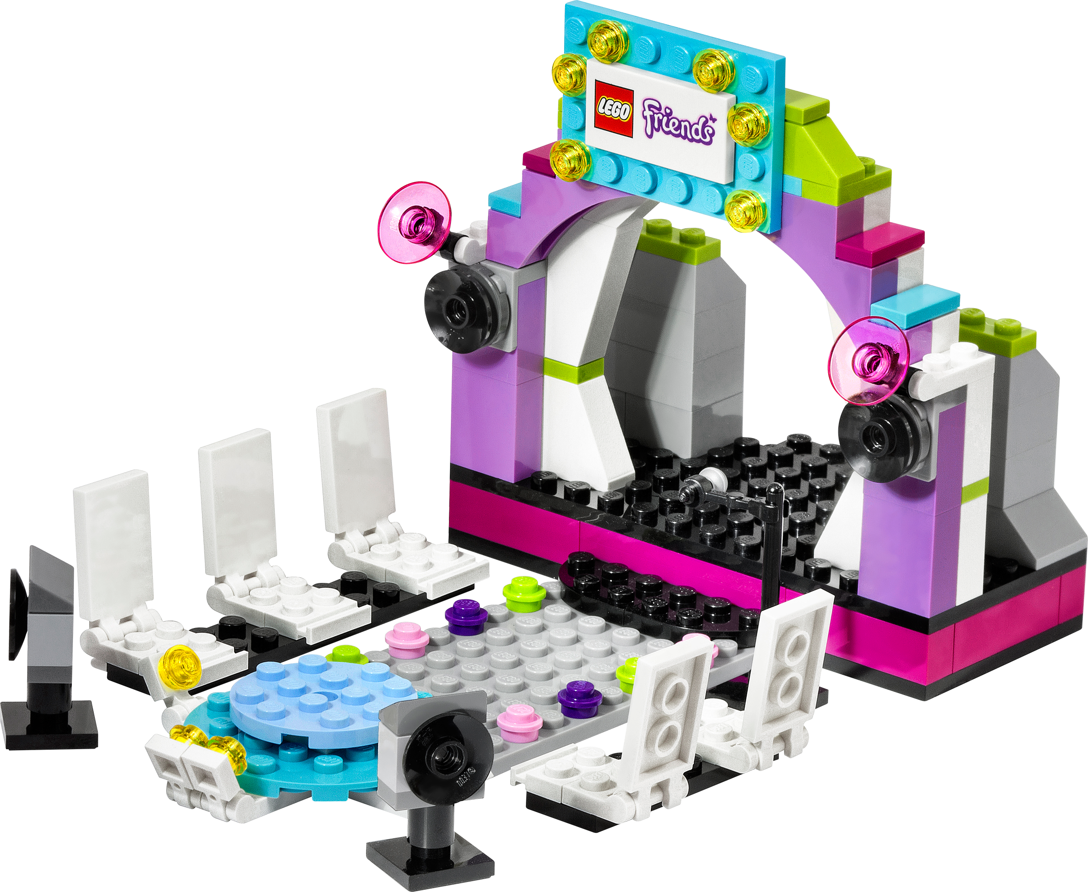 Set the stage for a fantastic fashion show! Create the stage for a fabulous fashion show with the LEGO® Friends Model Catwalk! Build a colorful entrance arch and catwalk for the models to walk down. Use the pretty backdrop included or play a LEGO Friends music video on a smartphone or MP3 player. Arrange the seats and then invite your friends to watch your stylish show!