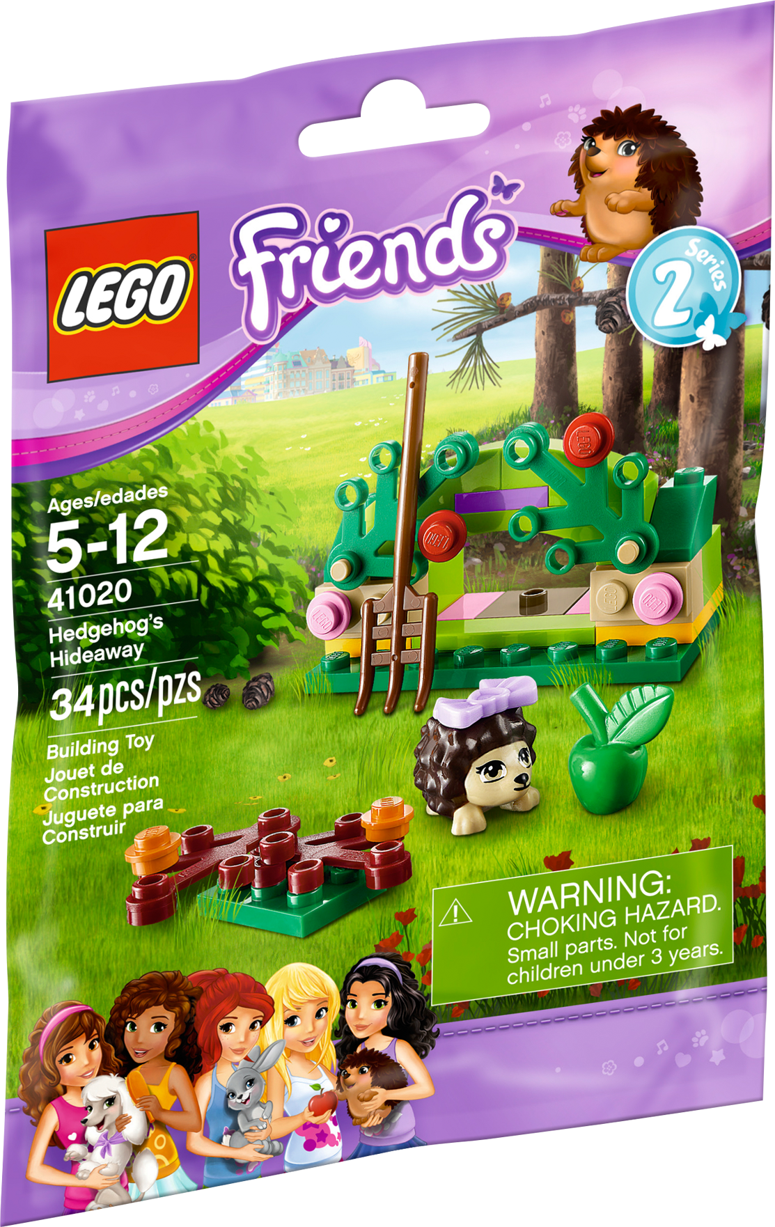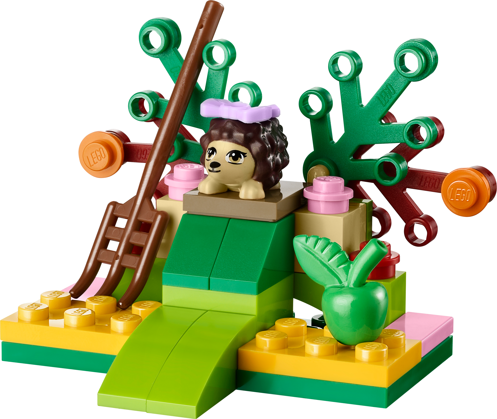 Build a hideaway for the hedgehog, then take care of her online! Rake up the leaves and build an awesome autumn burrow for the hedgehog. Cover the entrance with leaves when she's inside! Feed her the apple and put the pretty bow in her hair. Help make her the happiest hedgehog in Heartlake City! Take care of the hedgehog online at LEGO.com/friends and download more building inspiration. Combine with 41021 Poodle's Little Palace and 41022 Bunny's Hutch to create a bigger house or playground for all 3 animals with the building instructions available on LEGO.com/friends.• Features hedgehog, autumn leaf pile, burrow, rake and an apple• Rake the leaves to help the hedgehog burrow!• Close the leaves over the hedgehog's burrow when she's inside!• Feed the apple to the hedgehog!• Take care of the hedgehog online, or find more building inspiration at LEGO.com/friends!• Combine with 41021 Poodle's Little Palace and 41022 Bunny's Hutch to create a bigger house or playground for all 3 animals with the building instructions available on LEGO.com/friends• LEGO® Friends pieces are fully compatible with all LEGO bricks• Collect all of the LEGO Friends sets for a whole world of LEGO Friends fun!• Measures over 1" (3cm) high, 1" (3cm) wide and 3" (9cm) long