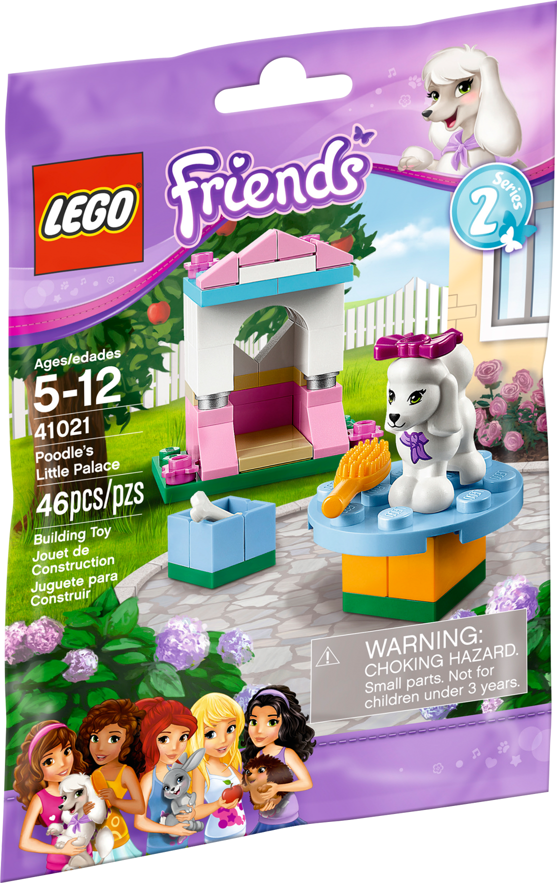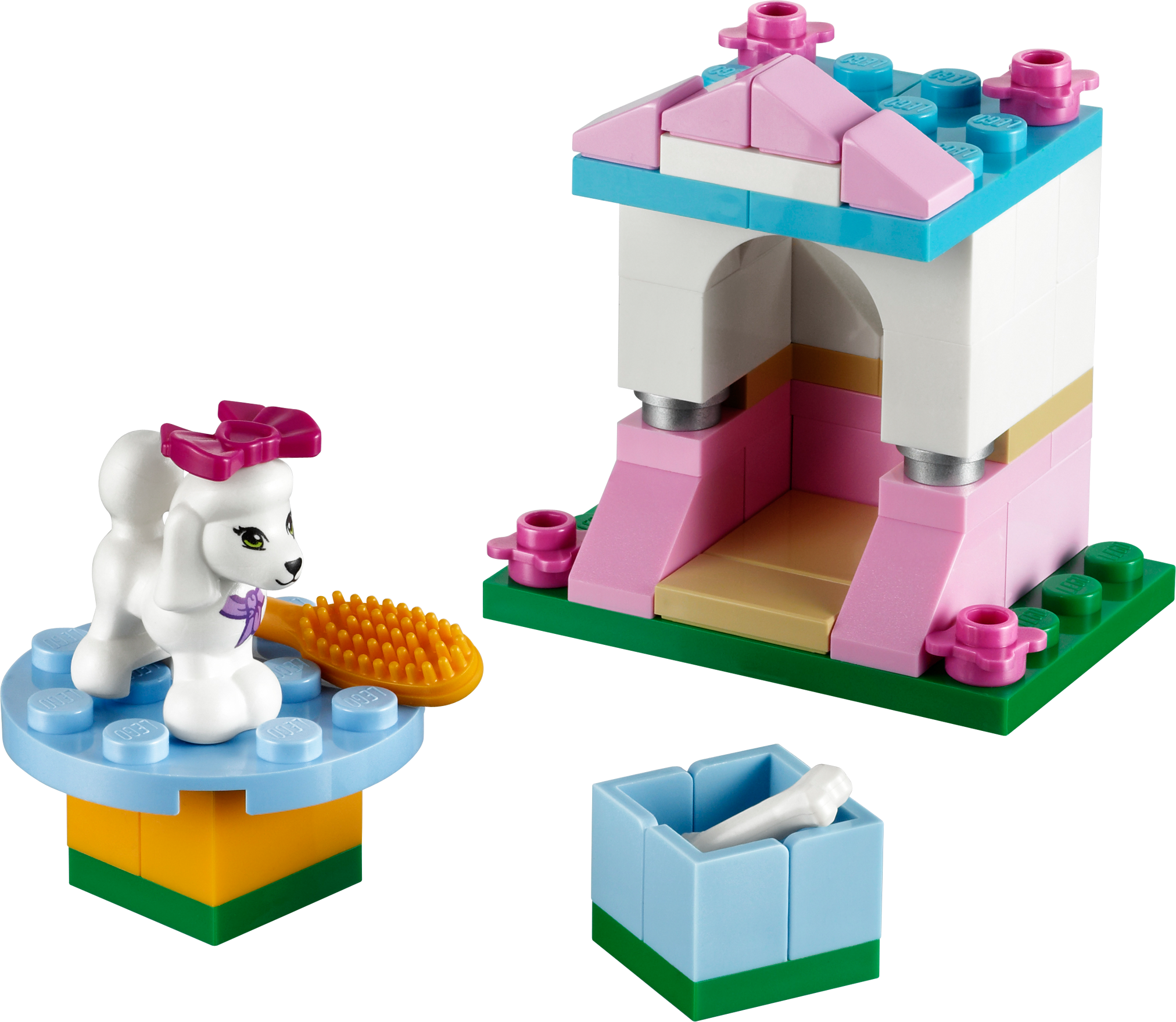 Build the perfect little kennel for the pretty poodle with a grooming table and dish with a bone, then go online to take care of her! Create a kennel for the pretty poodle! Brush and primp her at the grooming table, then feed her a bone! Make her the prettiest poodle in Heartlake City! Take care of the poodle online at LEGO.com/friends and download more building inspiration. Combine with 41020 Hedgehog's Hideaway and 41022 Bunny's Hutch to create a bigger house or playground for all 3 animals with building instructions available on LEGO.com/friends.• Features poodle, kennel, grooming table with brush and a tray with a bone• Brush the poodle on the grooming table!• Feed the poodle by putting a bone in her dish!• Take care of the poodle online, or find more building inspiration at LEGO.com/friends!• Combine with 41020 Hedgehog’s Hideaway and 41022 Bunny’s Hutch to create a bigger house or playground for all 3 animals with building instructions available on LEGO.com/friends.• LEGO® Friends pieces are fully compatible with all LEGO bricks• Collect all of the LEGO Friends sets for a whole world of LEGO Friends fun!• Measures over 1" (5cm) high, 1" (3cm) wide and 3" (9cm) long