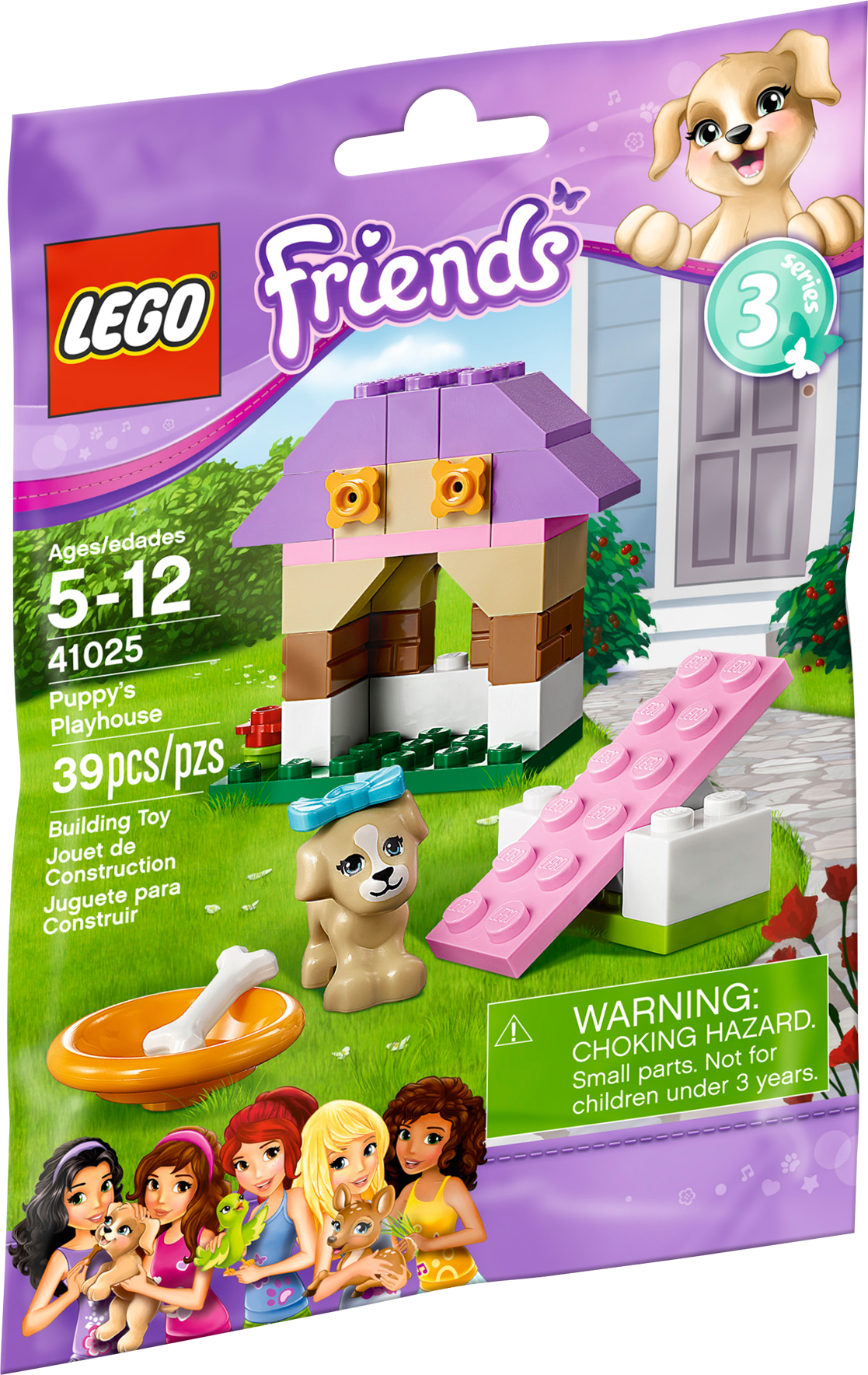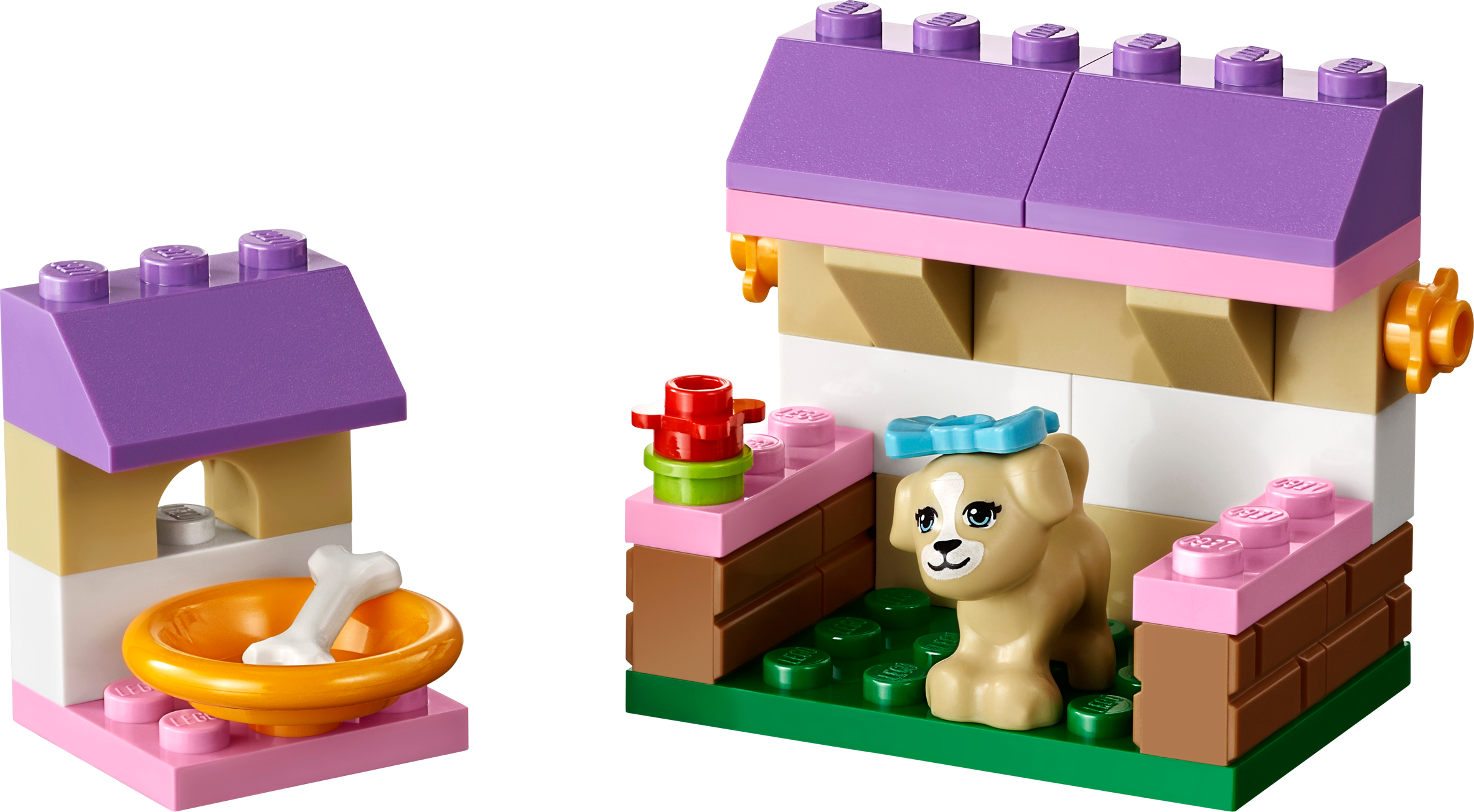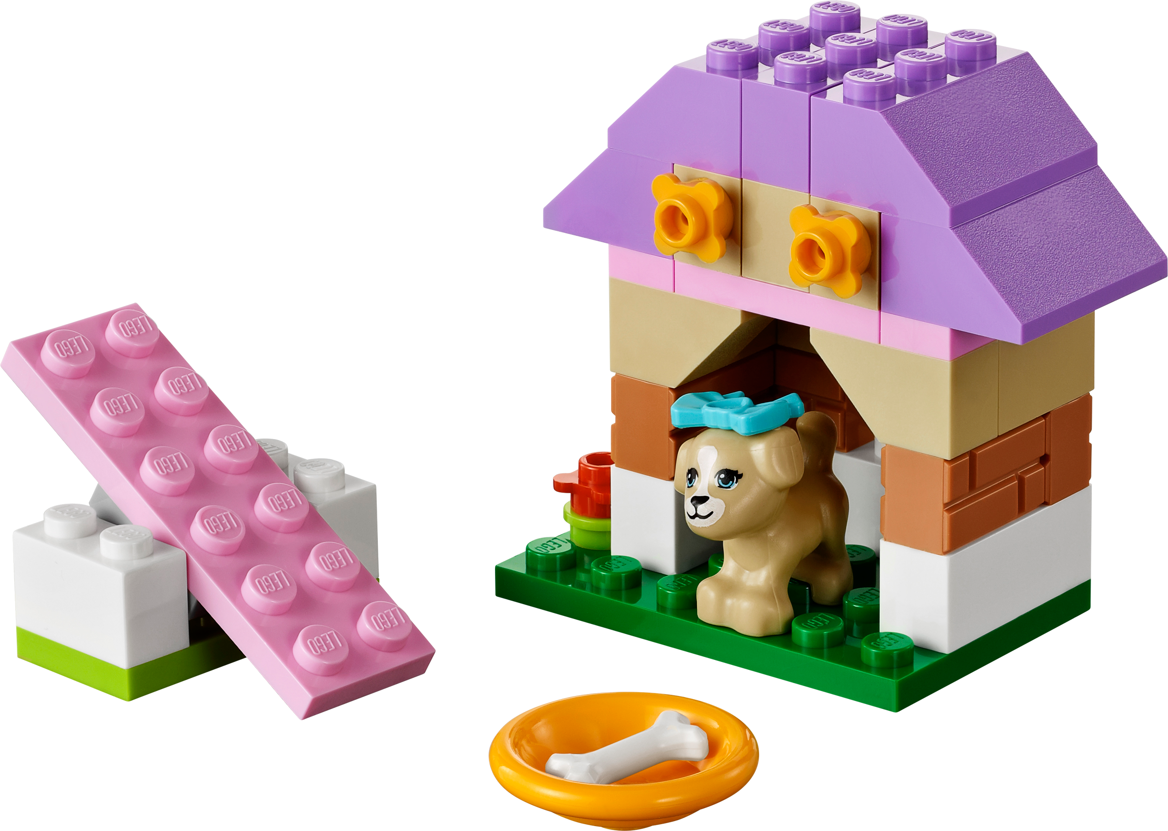 Build the Puppy’s Playhouse and nurture him online! Create a cute little playhouse for the puppy, then help to take care of him! Play on the pink seesaw then reward him with a bone in his dish! When he’s tired, tuck him into his playhouse and pet him until he falls asleep. Take care of the puppy online and get lots of building inspiration at LEGO.com/friends! Combine with LEGO® Friends sets 41023 and 41024 to create a bigger habitat or playground for all 3 animals. Includes a puppy figure with bow accessory.• Includes puppy figure with bow accessory• Features seesaw, kennel and flower decorations• Put the pretty bow on the puppy!• Take care of the puppy online, or find more building inspiration at LEGO.com/friends!• Combine with LEGO® Friends sets 41023 and 41024 to create a bigger habitat or playground for all 3 animals!• LEGO Friends pieces are fully compatible with all LEGO System bricks• Collect all of the LEGO Friends sets for a whole world of LEGO Friends fun!• Measures over 1" (5cm) high, 3" (10cm) wide and 1" (3cm) deep