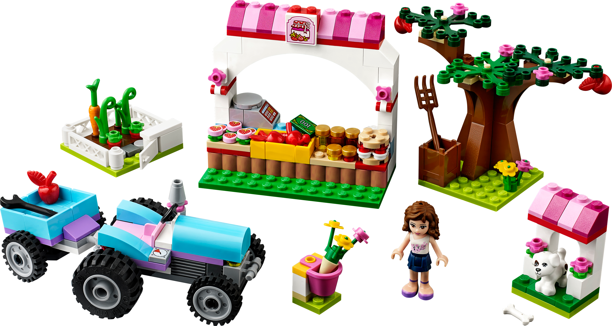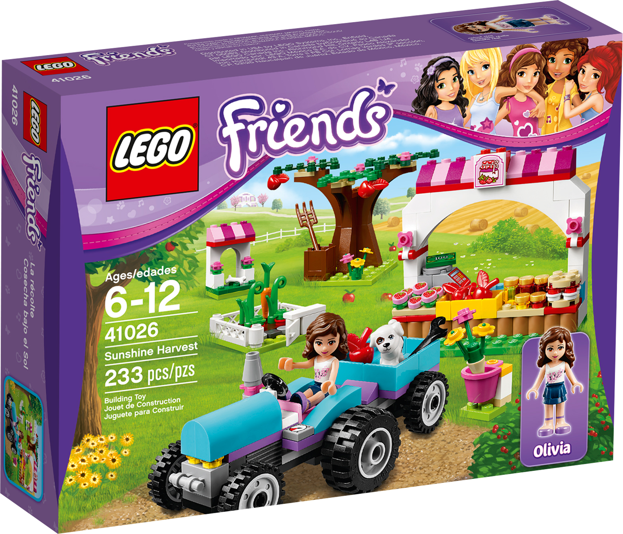 Help Olivia bring the harvest to her stand with the super-cool tractor! Take in the Sunshine Harvest with Olivia! Pick the apples from the tree and, with the carrots from the garden, drive to her market stall. Use the trailer and hitch it to the tractor. When she gets there, put all the items on display. Remember to pat Charlie, the cute little dog who comes rushing out of the dog house to greet the customers. Includes Olivia mini-doll figure and her dog, Charlie.Includes Olivia mini-doll figure and her dogFeatures a tractor with big wheels and a trailer, a fruit stand with cash register, fruit and cake, a tree with apples, a garden patch with vegetables and a cute dog housePlant tasty vegetables in the gardenDrive the tractor into position and load up the fruit and vegetablesHave fun playing with Charlie the dogStand measures over 3” (9cm) high, 3” (9cm) wide and 1” (4cm) deepTractor with trailer measures over 1” (4cm) high, 4” (11cm) long and 2” (6cm) wide