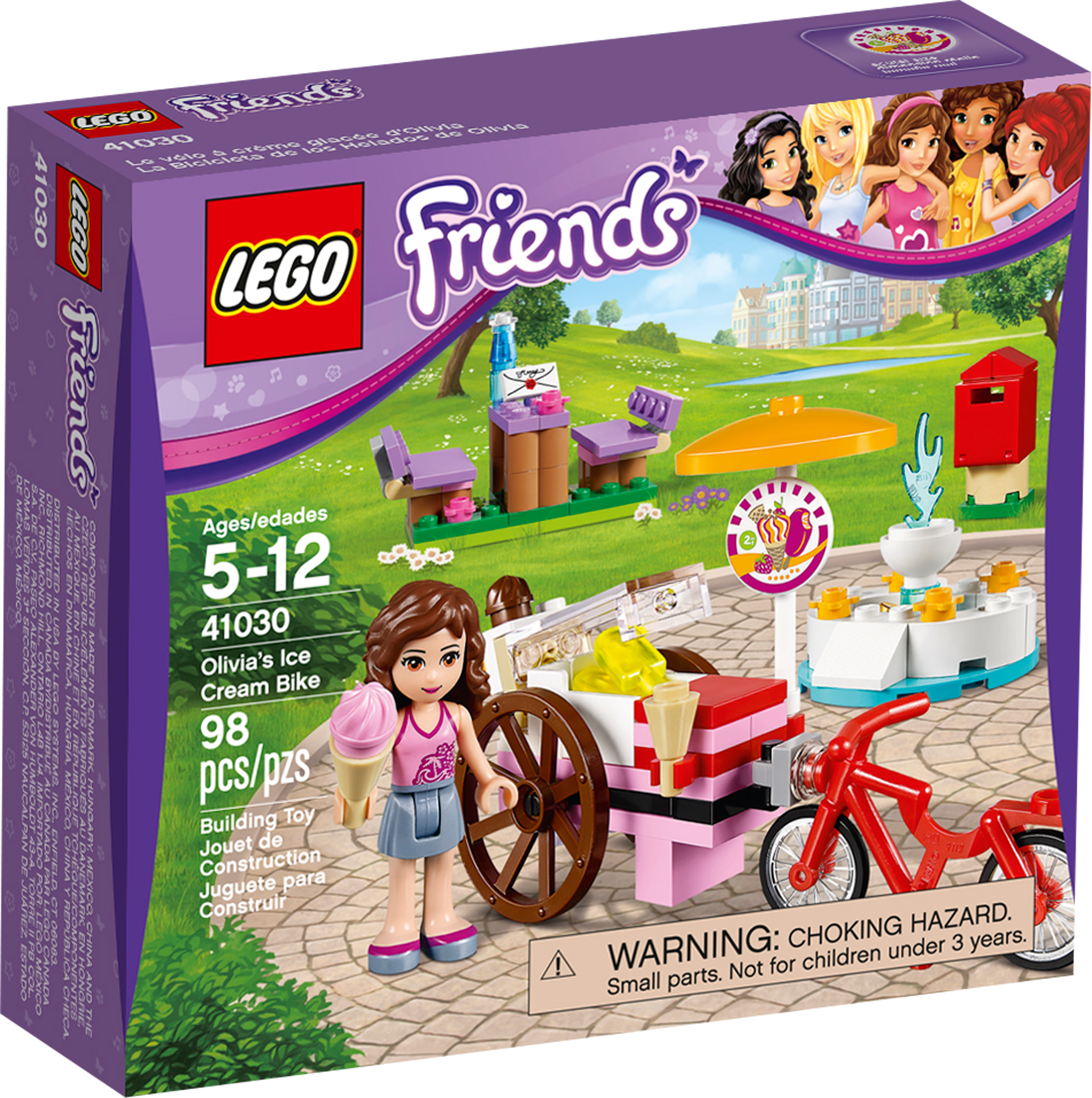 Prepare delicious ice cream treats and sell them on a sunny day with Olivia’s Ice Cream Bike! Take a ride to Heartlake City Park and help Olivia set up her ice cream stall right next to the pretty fountain. Make some chocolate and strawberry cones or take a refreshing ice pop from the freezer box to sell in the springtime sunshine. At the end of a good day’s work throw some coins into the fountain for good luck and help Olivia post a letter in the mailbox before she heads home. Includes Olivia mini-doll figureFeatures an Ice Cream Bike, fountain, picnic table with bench and a mailboxIce Cream Bike features a detachable ice cream stand, turning wheels, an ice box with opening lid and a parasolAccessories include ice cream cones, Italian ice cream in strawberry and chocolate flavors, an ice pop, water bottle, coins and a letterOpen the lid of the freezer box to serve an ice pop to your customersDetach the bike from the ice cream stand and help Olivia go for a ridePut your letter in the mailbox, open the door and collect the mailIce Cream Bike measures over 1” (3cm) high, 1” (4cm) long and under 1” (1cm) wide Ice cream stand measures over 2” (6cm) high, 1” (5cm) long and 1” (3cm) wideFountain measures over 1” (5cm) high, 1” (5cm) wide and 1” (4cm) deepPicnic table with bench measures over 1” (3cm) high, 3” (8cm) wide and 1” (3cm) deepMailbox measures over 1” (3cm) high, under 1” (3cm) wide and under 1” (1cm) deep