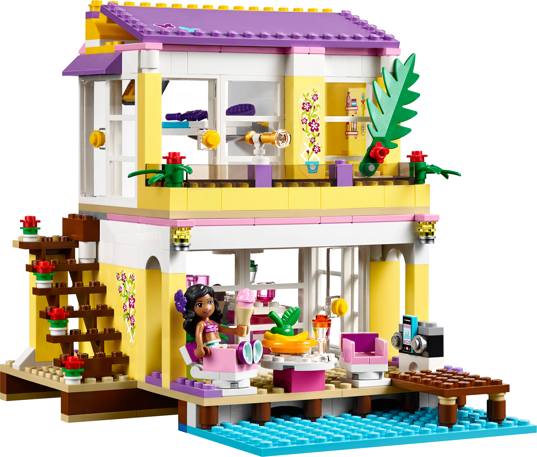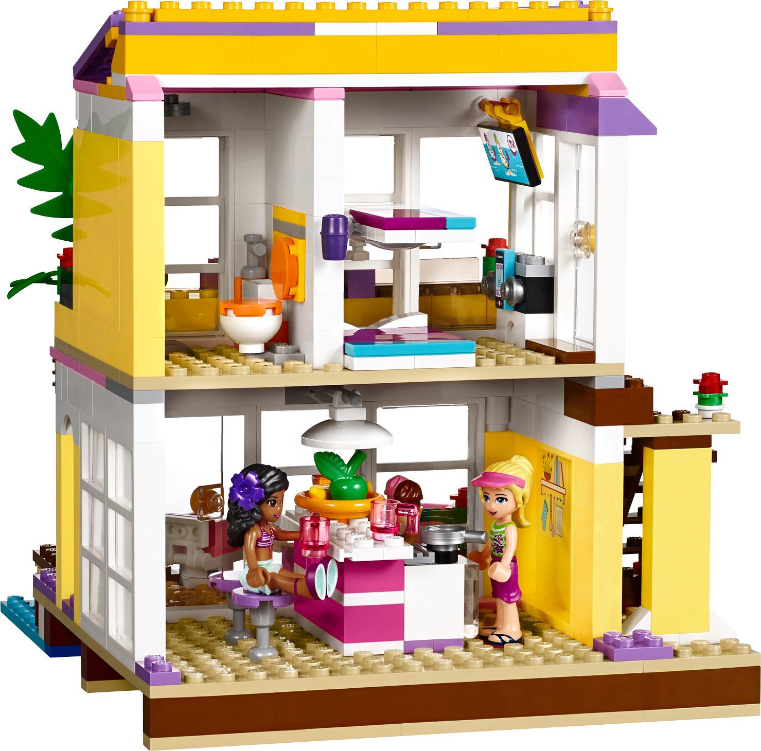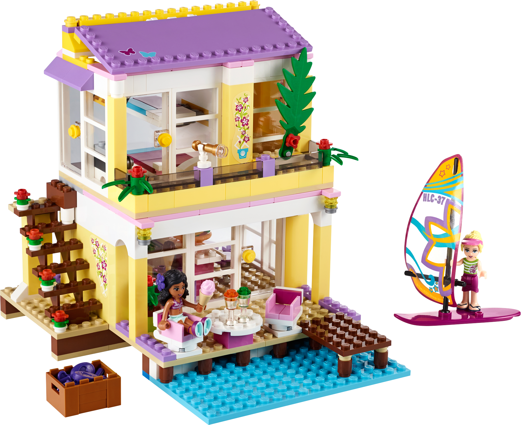 Visit the beach house with Stephanie and Kate for seaside fun! Open the door to Stephanie’s Beach House! Stephanie and Kate have come here for the weekend. Take Kate up to the terrace while Stephanie heads out on the windsurfer. Later, it’s time to watch some TV, listen to the latest hits on the radio and prepare dinner in the kitchen. Convert the sofa into a bed and get ready for a cozy night in – and lots more adventures tomorrow! Includes Stephanie and Kate mini-doll figures.Includes Stephanie and Kate mini-doll figures Two-story building features a terrace with swiveling chairs, kitchen with a bar, jetty, outside stairs leading to the upper floor, a bedroom with TV, radio, bunk/sofa bed, bathroom with toilet and shower with a palm leaf, and a balcony with a telescopeAlso includes a windsurfer and Stephanie’s summer hatLook at the stars through the telescopeChill out on the bed or sofa and watch TV or listen to the radioHead out on the windsurfer and catch some waves!Beach House measures over 7” (18cm) high, 7” (19cm) wide and 6” (16cm) deepWindsurfer measures over 3” (10cm) high, 3” (8cm) long and under 1” (2cm) wide