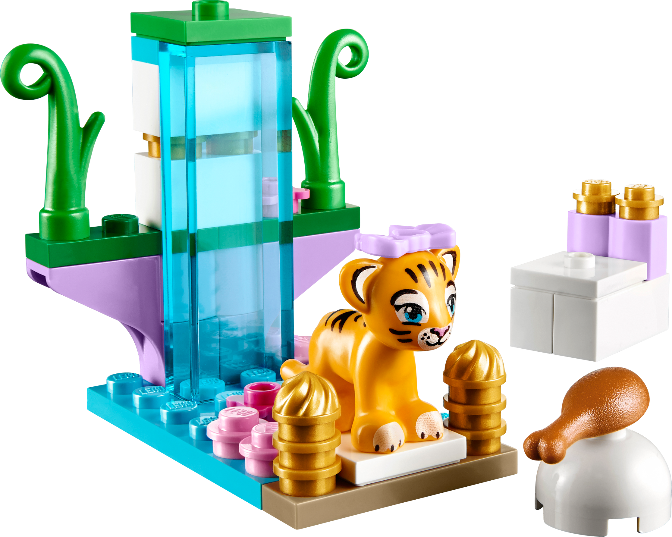 Build the beautiful temple and move the tiger into its new home! This tiger is a very special animal, so it lives in Tiger’s Beautiful Temple! Have fun building its home, with the throne, golden decoration, pretty pink flowers and greenery. Don’t forget to feed it the tasty chicken leg when it gets hungry. Care for your very own LEGO® Friends animal!Includes a tiger cub figure with a bowFeatures a temple with golden decorations, pink flowers and greenery as well as a delicious chicken legSeat the tiger on the throne in the heart of the templeArrange the lush greenery around the temple wallsGive your new tiger friend a tasty chicken leg to eatTake care of the tiger cub online and find more building inspiration at LEGO.com/friendsMeasures over 1” (5cm) high, 1” (5cm) wide and 1” (4cm) deepCollect the other sets in the series and build your very own cool combi model (building instructions available on LEGO.com/Friends)