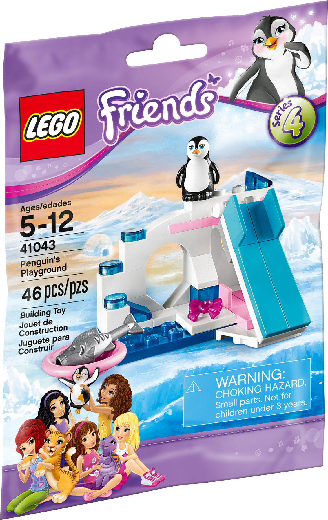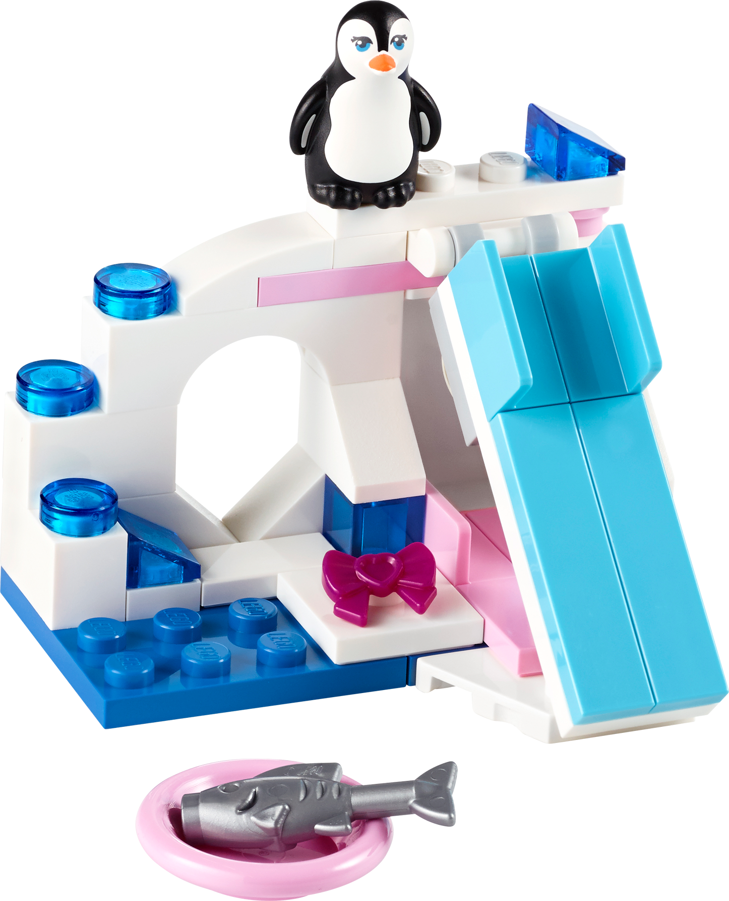 The Penguin's Playground is an icy winter home with lots to do! The cute and playful penguin likes nothing more than playing on its super new slide in the Penguin’s Playground. After a long day playing, put penguin to bed for a nap before its time to feast on the tasty fish. Care for your very own LEGO® Friends animal!Includes a cute penguin figure with a bowFeatures a white archway decorated with blue elements, slide, bedIncludes a pretty pink bowl with a fishShoot the penguin down the slideTuck penguin into the snug bed when it’s time to sleepFeed penguin the fish when it’s hungryTake care of the penguin online and find more building inspiration at LEGO.com/friendsMeasures over 1” (4cm) high, 2” (6cm) wide and 1” (5cm) deepCollect the other sets in the series and build your very own cool combi model (building instructions available on LEGO.com/Friends)