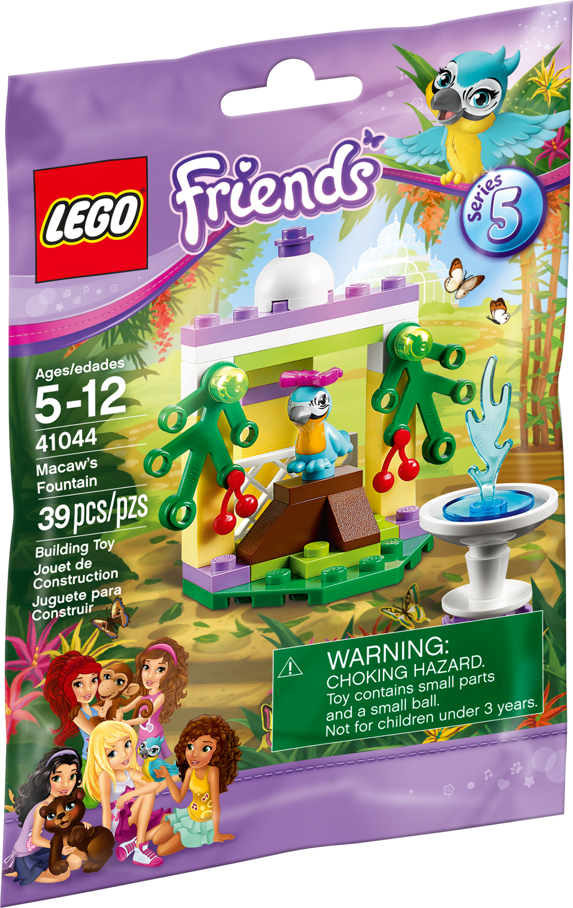 Perch, play, bathe and drink at Macaw’s Fountain! Macaws are colorful tropical birds, so help place this one on its perch to look at the jungle and play in Macaw’s Fountain. When it gets thirsty, it can have a drink or even a wash in the bird bath. Care for your very own LEGO® Friends animal!Includes a tropical macaw figure with a bowFeatures an archway with pretty flowers and greenery, perch and a bird bathHave fun splashing around in the fountainLook out across the jungle from the special perchTake care of the macaw online and find more building inspiration at LEGO.com/friendsMeasures over 2” (7cm) high, 2” (6cm) wide and 1” (5cm) deepCollect the other sets in the series and build your very own cool combi model (building instructions available on LEGO.com/Friends)