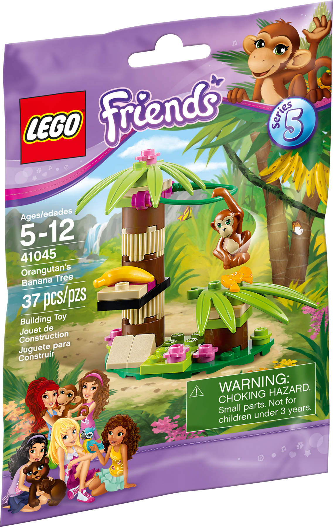 Build a perfect treetop home for the cute Orangutan! This cute orangutan loves eating bananas and sliding down vines, so Orangutan’s Banana Tree is perfect for this crazy character! Slide him down the vine, grab the banana and take it back to the treetop so orangutan can eat it for dinner. Care for your very own LEGO® Friends animal!Includes an orangutan figure with a bowFeatures a banana tree with platform, bush, vine and a bananaDecorate the forest floor with pretty pink flowersFeed the orangutan a yummy yellow bananaHave fun sliding down the curvy vineGrab onto the vine with the orangutan’s curved handTake care of the orangutan online and find more building inspiration at LEGO.com/friends Measures over 2” (7cm) high, 2” (6cm) wide and 1” (3cm) deepCollect the other sets in the series and build your very own cool combi model (building instructions available on LEGO.com/Friends)