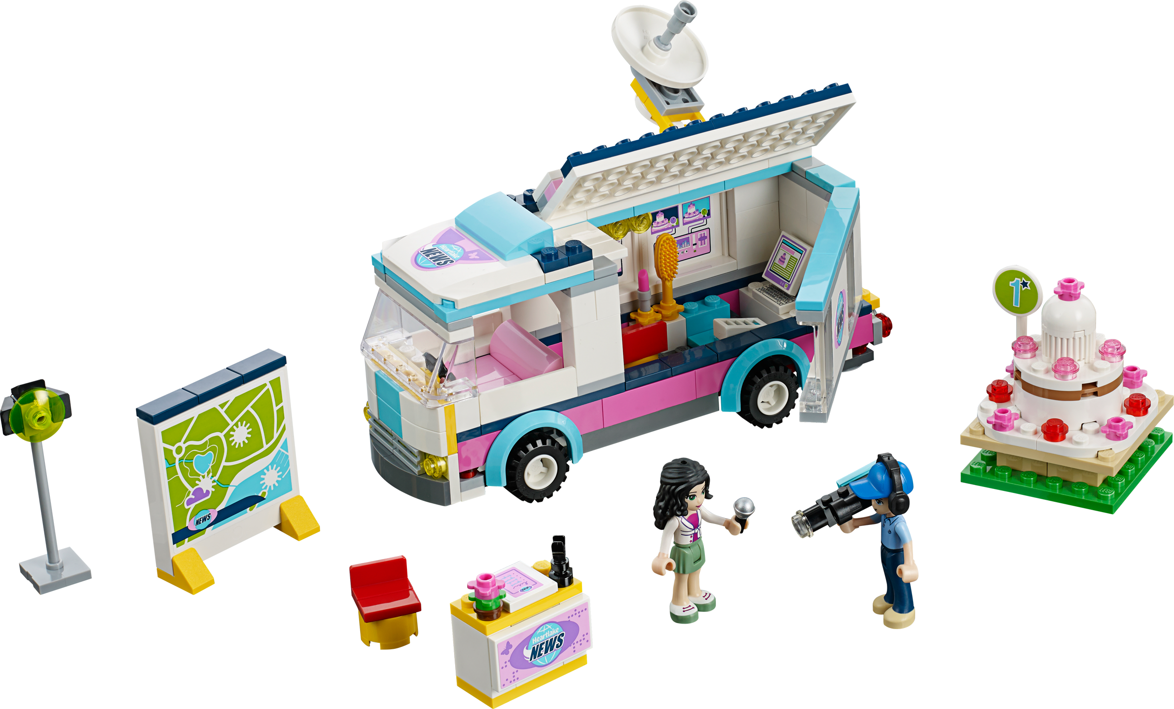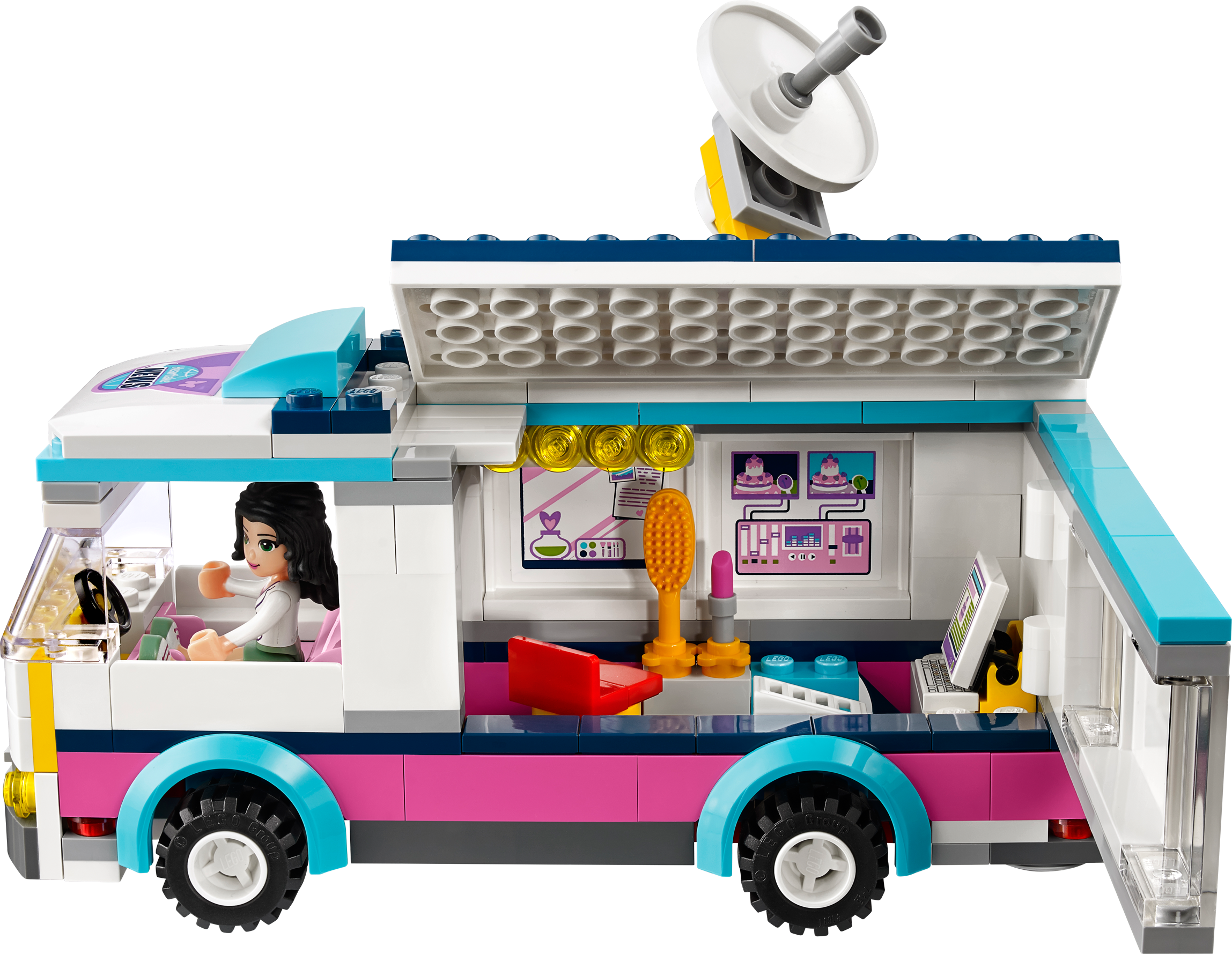 Help Emma and Andrew broadcast the breaking stories! Break the big story of the world’s best cake with the Heartlake News Van! Find the cake and film it with the camera and then climb into the editing suite and get it ready for broadcast. Get Emma ready at the makeup table so she looks her best for the camera. Sit her at the news desk as Andrew films her talking about the cake story and then present the weather to the viewers. Comes with Emma and Andrew mini-doll figures.Includes Emma and Andrew mini-doll figuresFeatures Heartlake News Van and a news deskHeartlake News Van features a driving seat, editing suite, makeup table, a satellite dish on the roof and opening doors and sideNews desk features a microphone and TV decalAlso includes Mia’s makeup accessories, a news camera and the winning cakeGet Emma ready to go on air at the makeup deskKeep a steady hand on the camera and capture the big momentDrive the van to the breaking story, edit it in the editing suite and get ready to present it to the world!Heartlake News Van measures over 2” (7cm) high, 1” (5cm) wide and 6” (16cm) longNews desk measures over 1” (3cm) wide and under 1” (2cm) high and 1” (2cm) deepCake measures over 2” (6cm) high, 1” (4cm) wide and 1” (4cm) deep