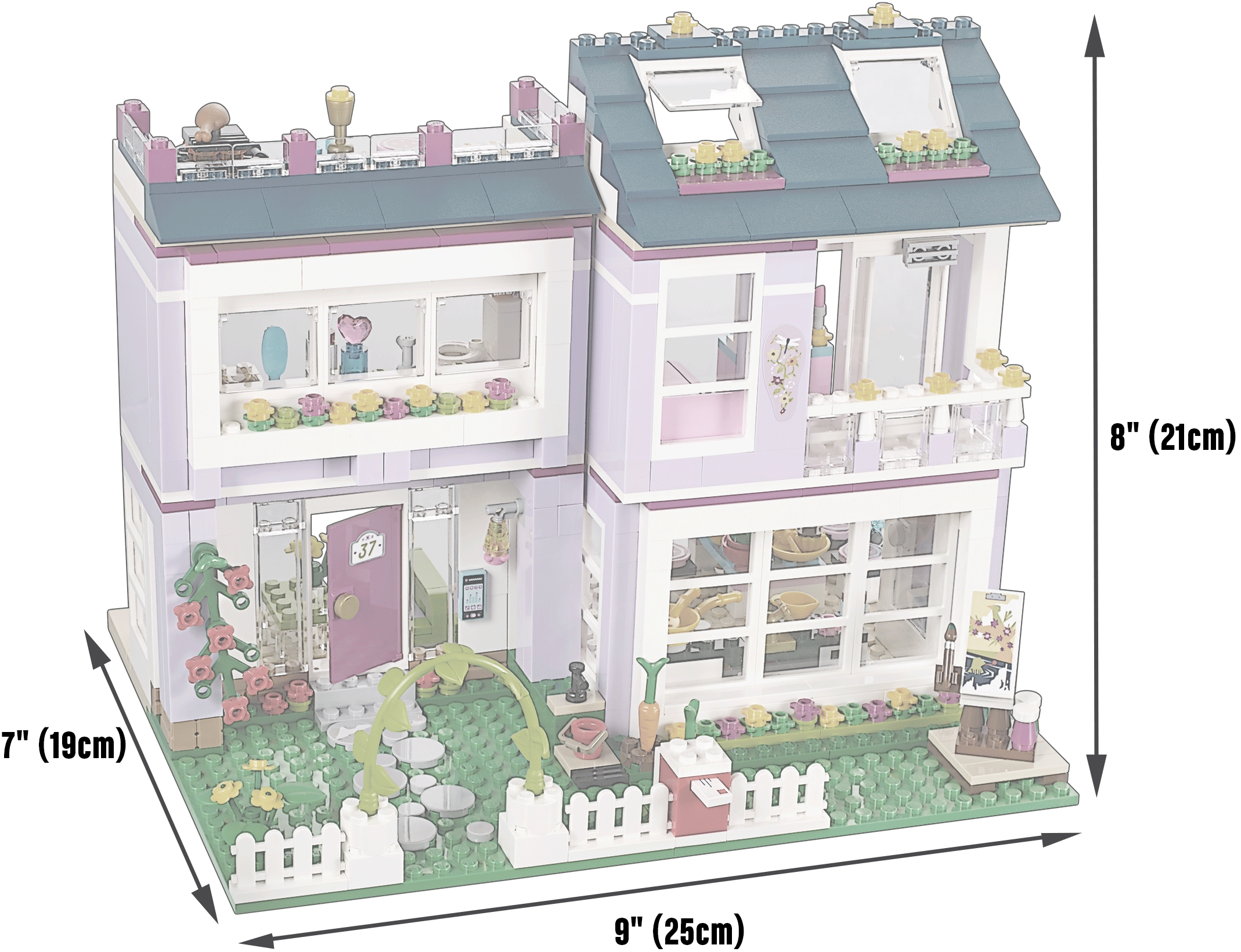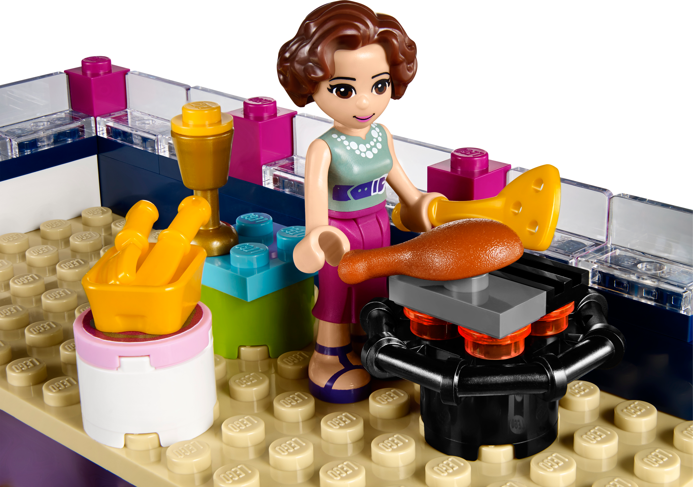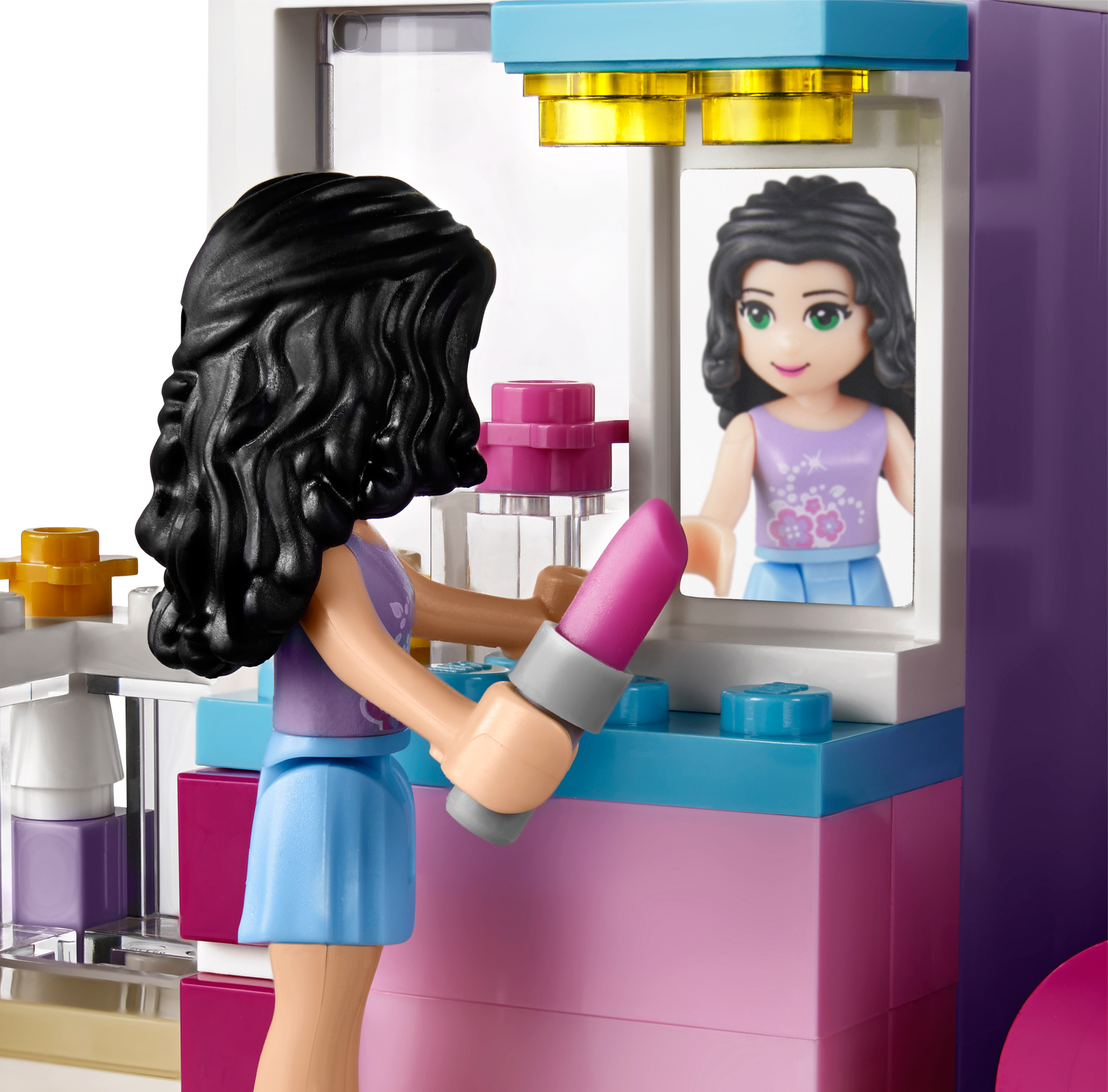 Personalize Emma’s amazing designer home and hang out with all her friends! Build and customize your dream family home with a modern edge! LEGO® Friends Emma’s House shows off all the creative skills of Emma’s family. Prepare a tasty meal in their state-of-the-art kitchen, using vegetables grown in their own garden and fresh ingredients from the opening fridge. Then sit the family down in the living room to watch a movie together on the flat-screen TV. Emma loves having her friends over to hang out in her bedroom, which she designed herself, and admire the view from herbalcony. Help her practice with her make-up in front of the big vanity mirror after a nice long bubble bath in the bathroom. Do some painting in the beautiful zen garden, which has a birdhouse for her pet bird, or host a barbecue with friends on the relaxing roof terrace. Combine with 41090 Olivia’s Garden Pool for even more fun in the garden. Includes 3 mini-doll figures: Emma, mom Charlotte and dad Luis, plus her pet bird. Includes 3 mini-doll figures: Emma, mom Charlotte and dad Luis, plus her pet bird Features a modular house with a kitchen, living room, bathroom, bedroom, attic room, roof terrace, balcony, garden and a bicycle Kitchen features an opening fridge, opening dishwasher, sink, drawer, hob, table with 3 chairs and a lamp Living room features a sofa, coffee table and a flat-screen TV Bedroom features a bed, vanity table with mirror and a sliding balcony door Bathroom features a bath, toiletand a sink Roof terrace features a barbecue, table and a stool Garden features a vegetable patch, zen garden, functioning mailbox and a turning birdhouse Accessories include a frog, canvas, paintbrush, perfume bottle and beauty products, camera, cooking utensil, plates, fruit cups, drink, chicken leg, book, bucket and an intercom Open the fridge and make a meal for the family in the kitchen Sit on the balcony or climb up to the attic room to quietly read a book Chill in the garden with Emma’s pet bird, to take some photos or paint a landscape Throw a barbecue party on the roof terrace for the LEGO® Friends Take the bike for a ride around the neighborhood Get in the shower to freshen up before a big pampering session at the vanity table Emma’s House measures over 8” (21cm) high, 9” (25cm) wide and 7” (19cm) deep Bicycle measures over 1” (3cm) high, 1” (5cm) long and under 1” (1cm) wide Combine with 41090 Olivia’s Garden Pool for the ultimate garden party!