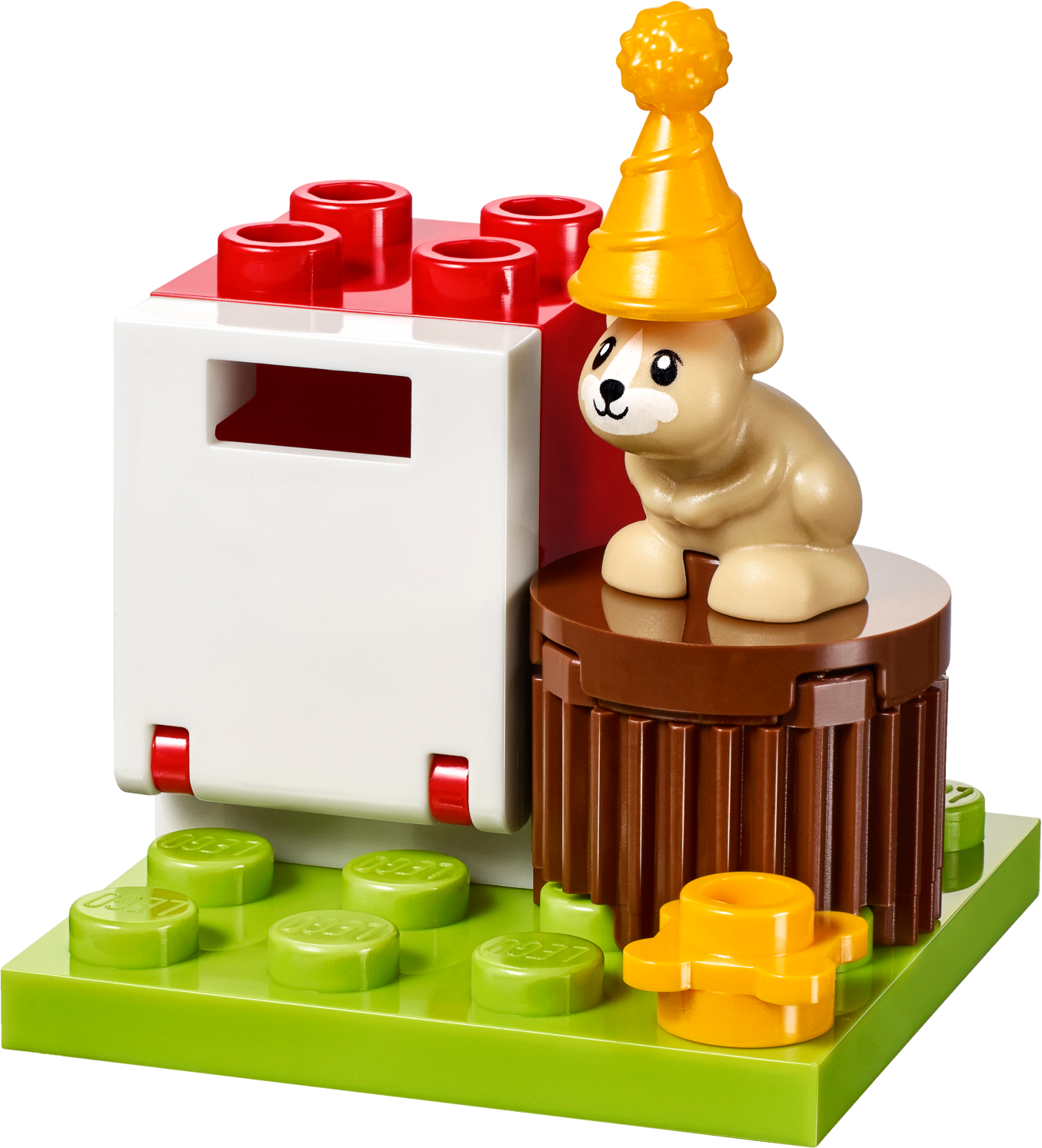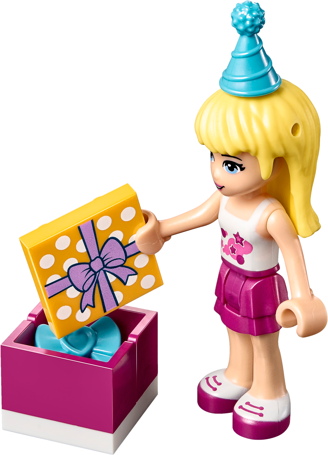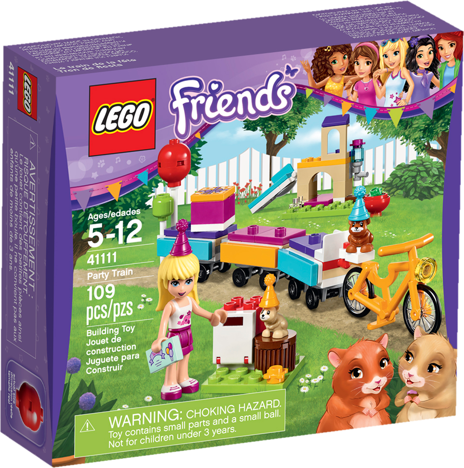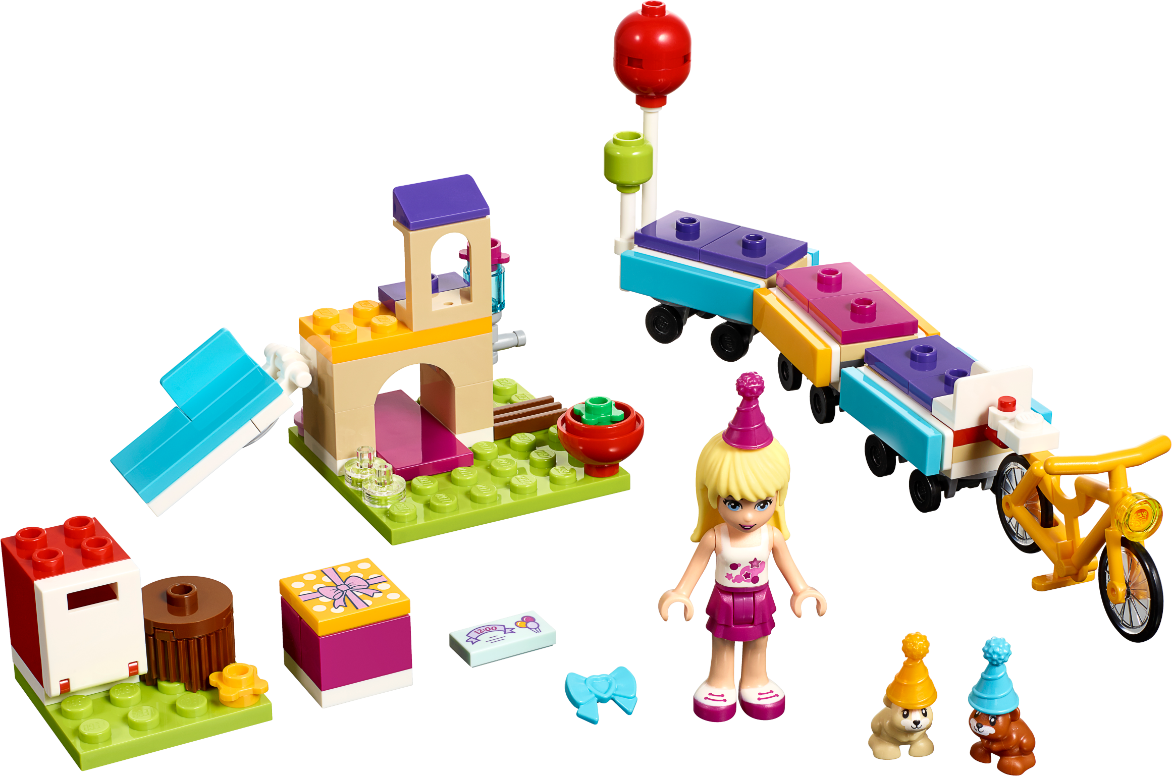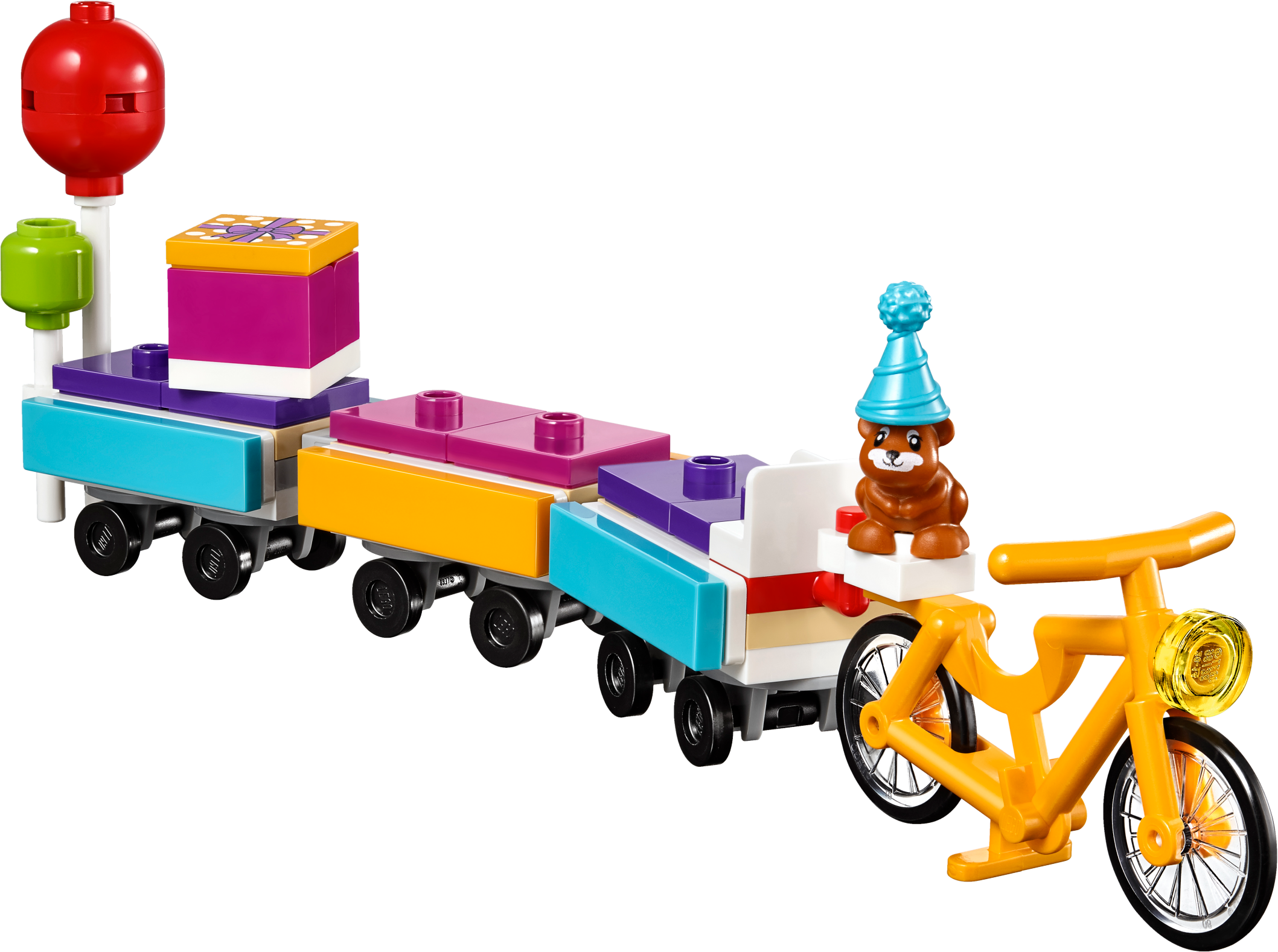 Ride along with the hamsters to a birthday party! Look in the mailbox—Heidi and Harry the hamsters have been invited to a birthday party! Stephanie has attached wagons to her bike and loads them up with balloons, a birthday gift and party hats while the hamsters have fun on their playground. Now it’s time for the tiny hamsters to hop onto the Party Train and off to the party they go! Includes a Stephanie mini-doll figure plus Heidi and Harry the hamsters. Features a bicycle with turning wheels and 3 attachable wagons to pull along, as well as a hamster playground with a slide and an opening mailbox. Accessory elements include a party invitation, birthday gift, hair bow, 3 party hats, 2 balloons and a hamster food bowl. Open the mailbox to find the party invitation. Join the carriages to the bike, help the hamsters get on board, then pull them along to the party. This set offers an age-appropriate building experience for ages 5-12. This set includes over 100 bricks. Bicycle train measures under 1” (2cm) high, 1” (2cm) wide and over 6” (16cm) long. Hamster playground measures over 1” (5cm) high, 1” (4cm) wide and 1” (4cm) deep. Combine with the 41110 Birthday Party so the hamsters can join in the birthday fun.