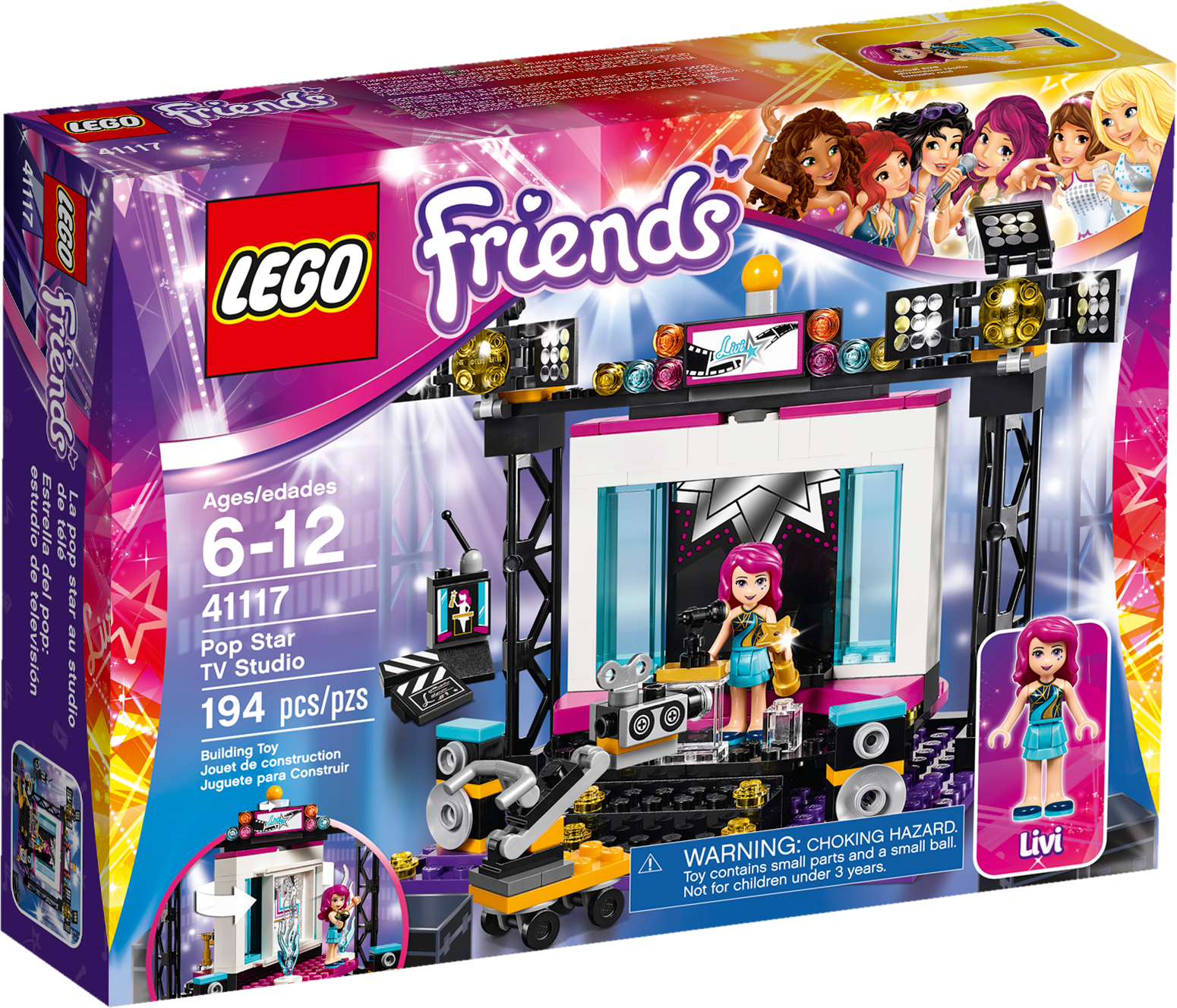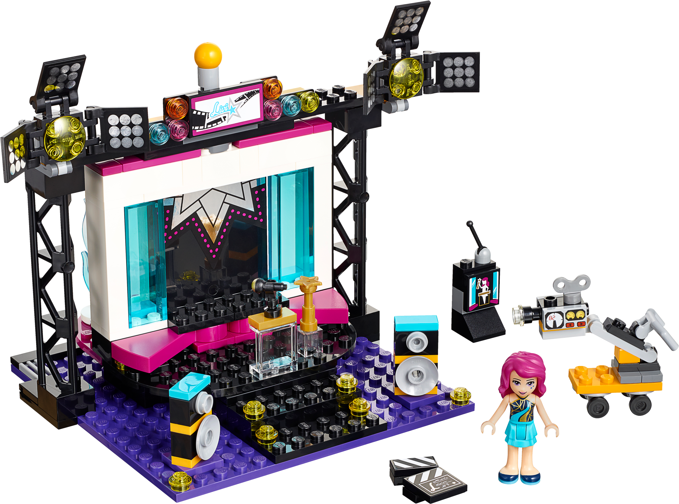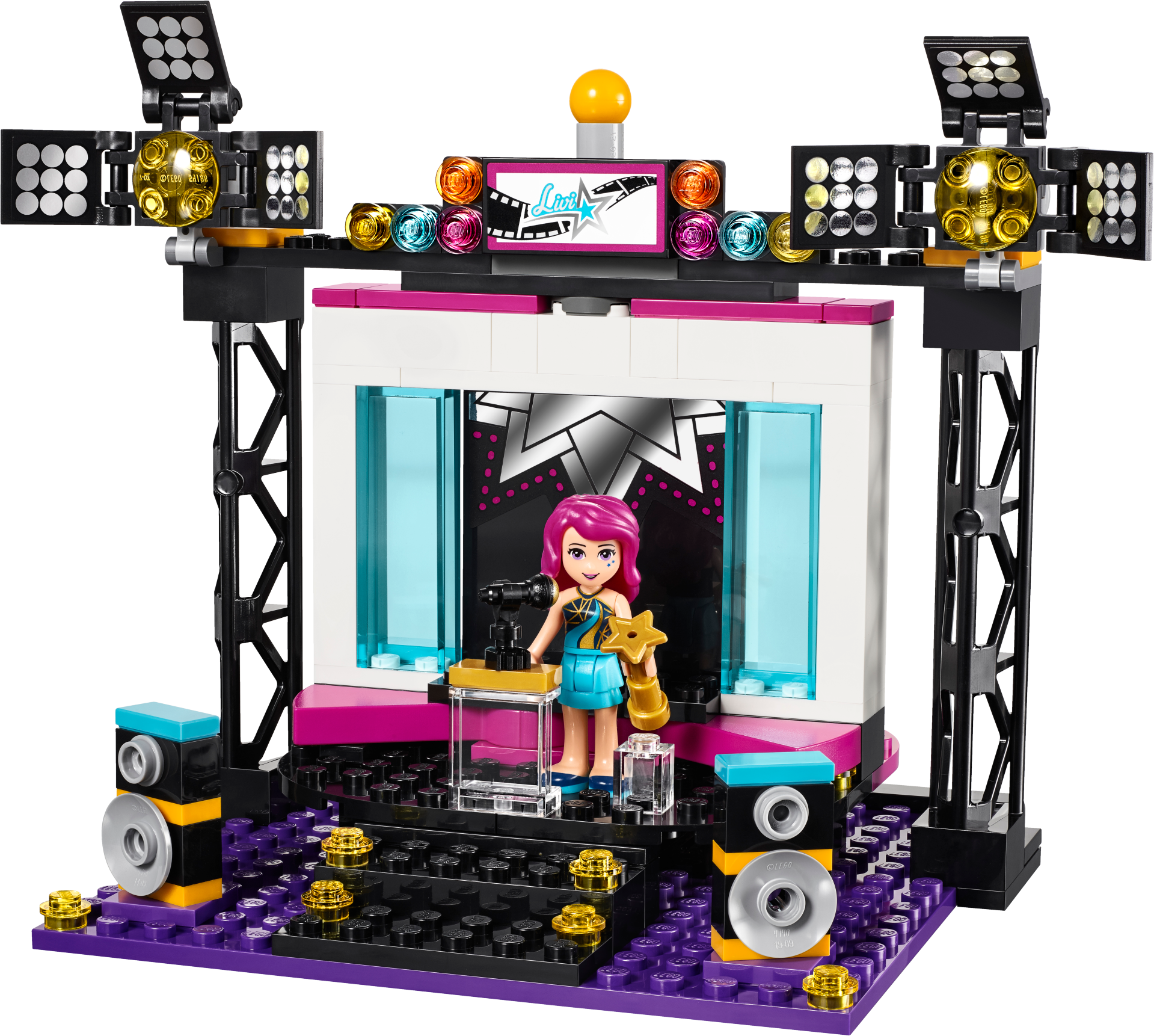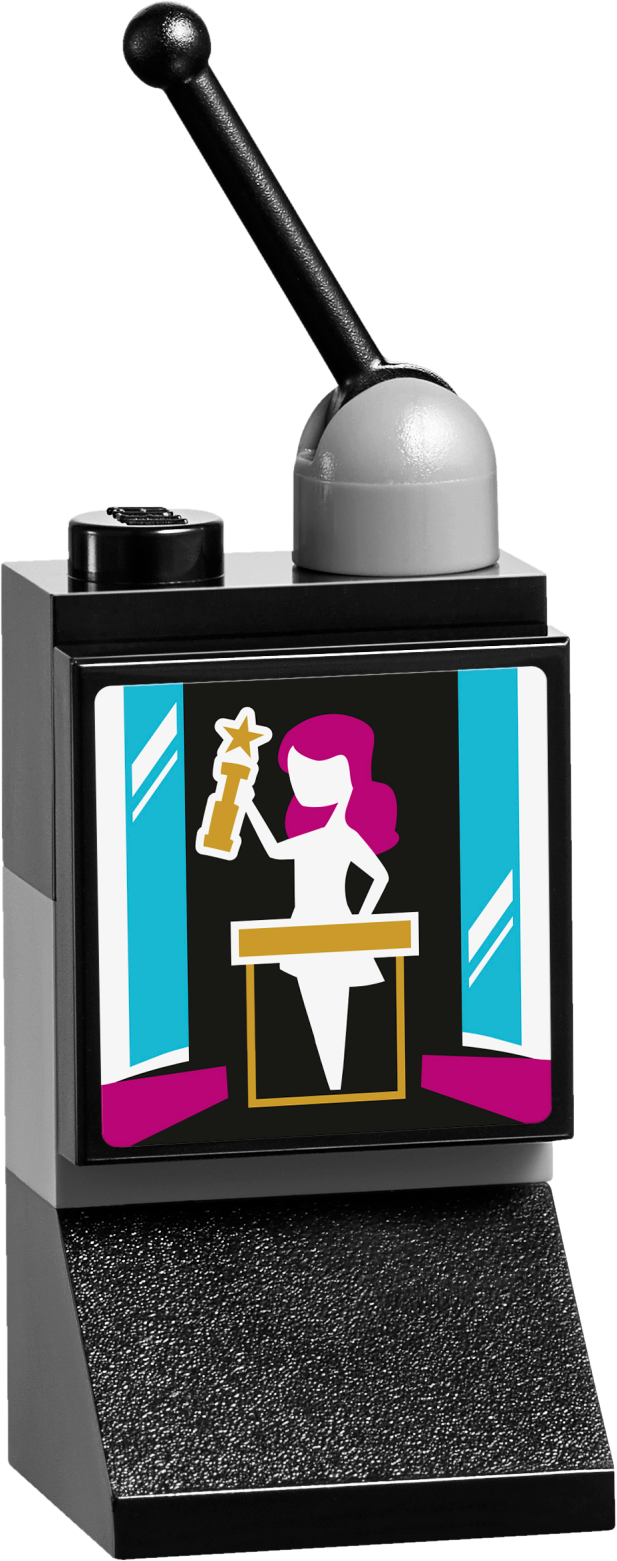 Film the new music video for pop star Livi! Lights… camera… action! Livi is on set shooting the music video for her next big single. Help her polish off her moves, then work the camera and move the slider for an amazing background change. Head back to the studio later that evening where there’s a new set and Livi is performing at a glitzy awards ceremony—but will she win the award for Best Artist and give a speech? Includes a Livi mini-doll figure. Features a TV Studio with steps up to the reversible set featuring an awards ceremony on one side and a music video set with changing background function on the other. Includes a buildable film camera, adjustable spotlights, speakers and a monitor. Accessory elements include a microphone, clapper board, 2 water jets and an award. Slide a different background across and choose the props to change the set for the music video. Turn the set around to host an awards ceremony where Livi is nominated. This set offers an age-appropriate building experience for ages 6 -12. This set includes 194 bricks. TV Studio measures over 5” (14cm) high, 5” (13cm) wide and 5” (13cm) deep.