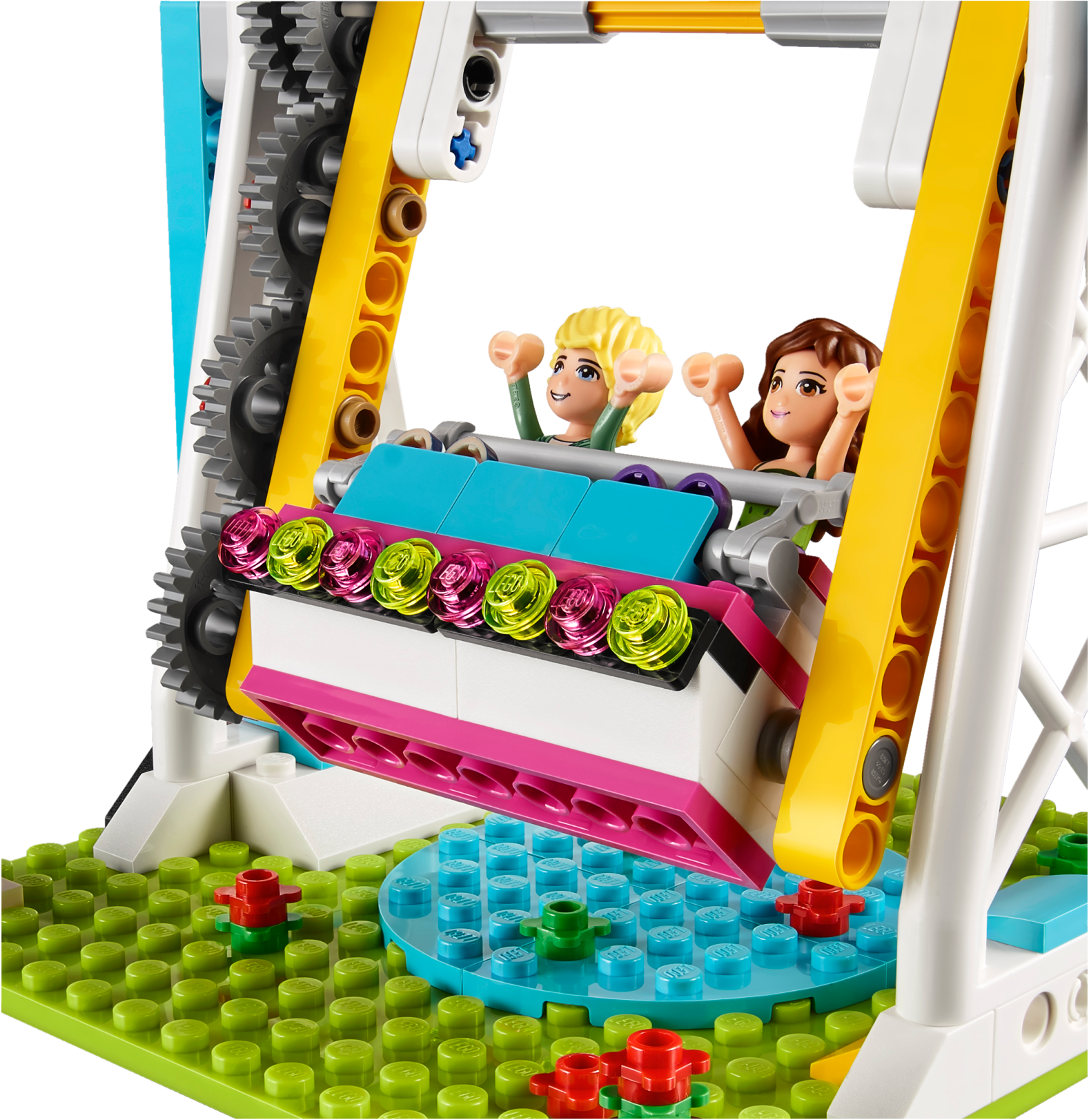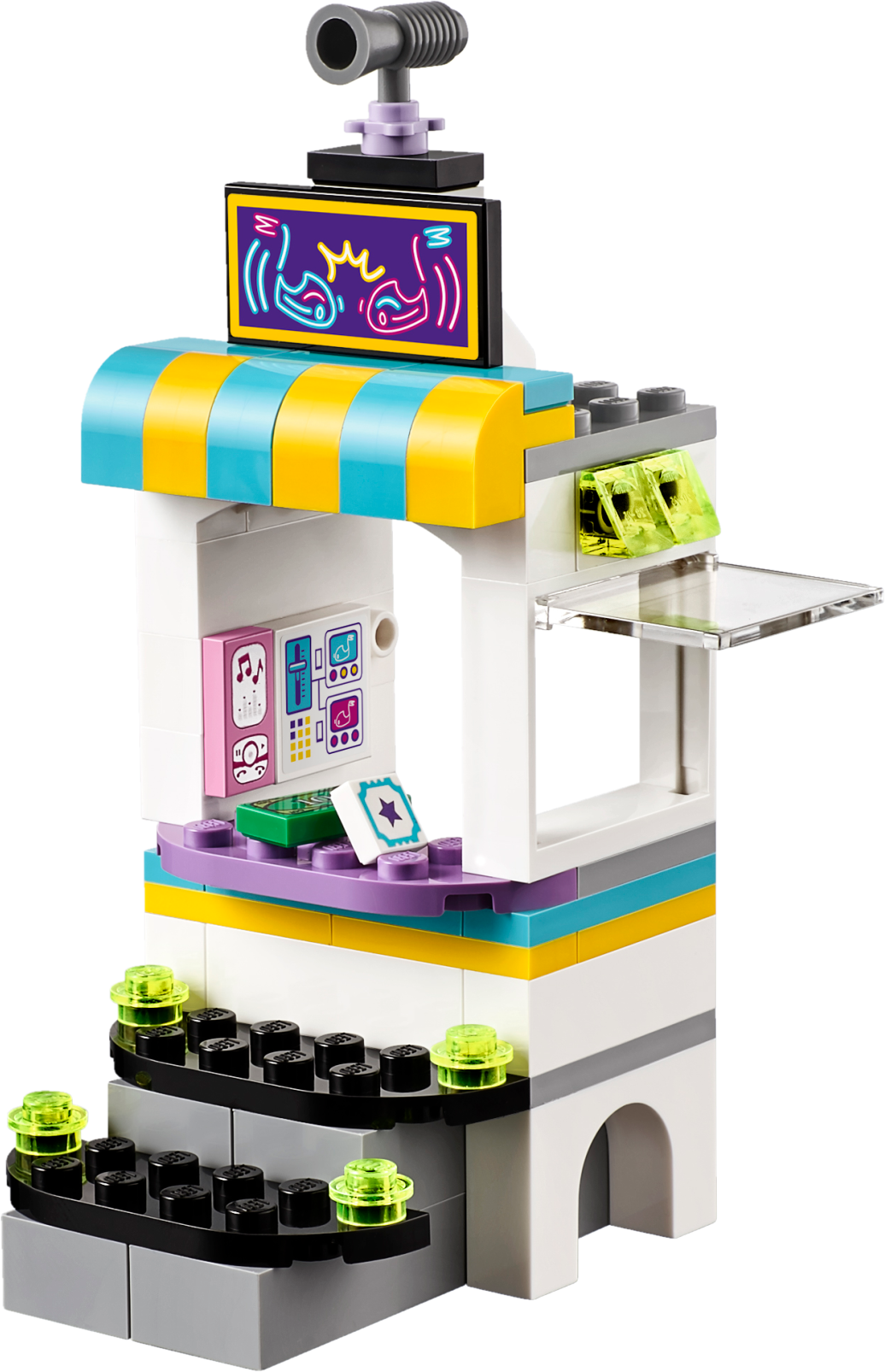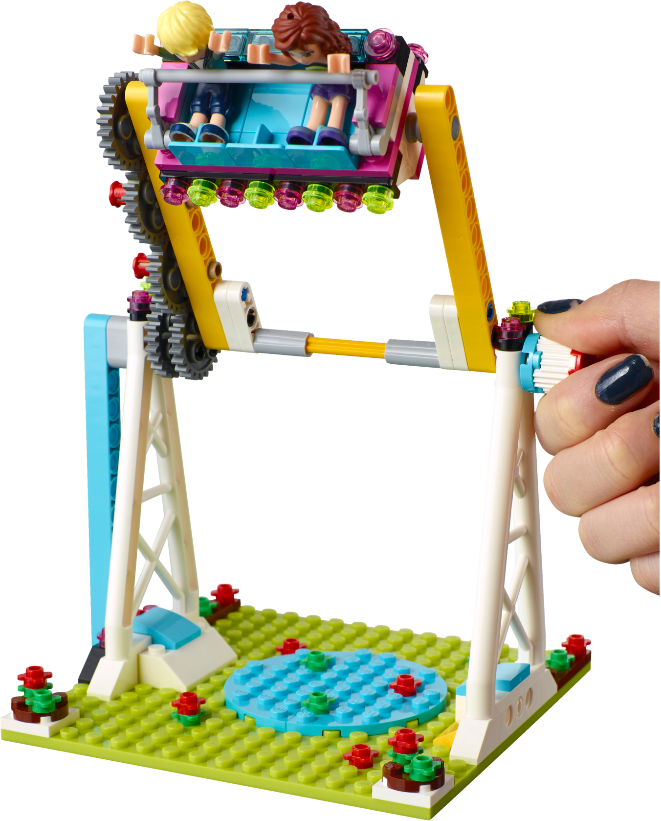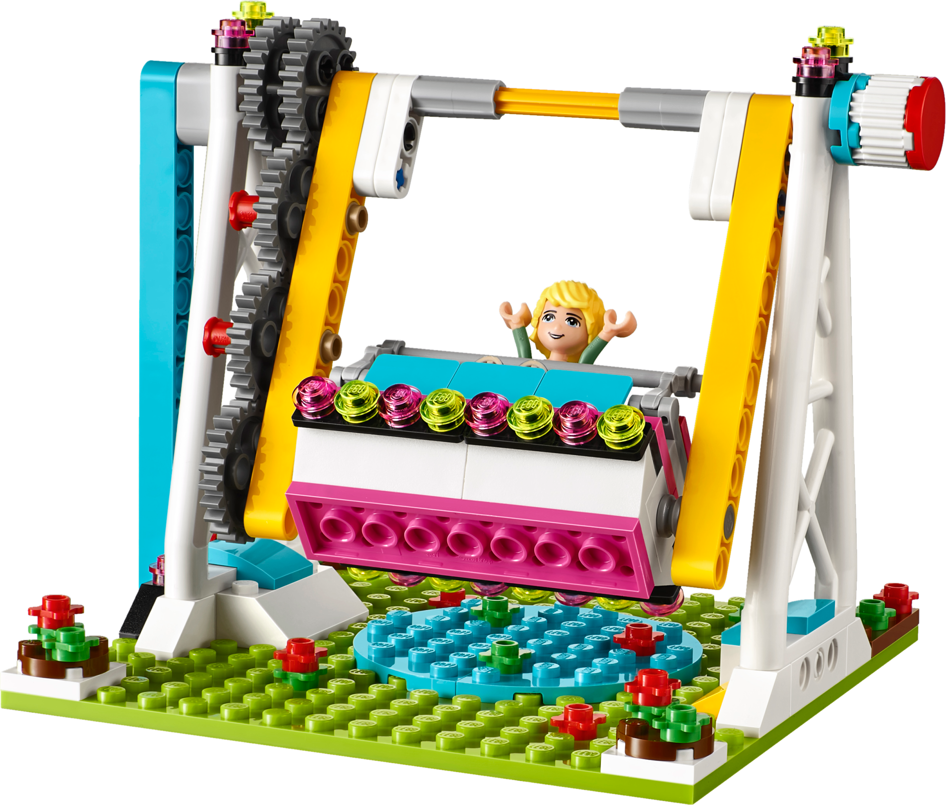 Bump on the bumper cars and swing on the shaker! Jump into the iconic shaker ride with Olivia, pull down the safety bar and hold on tight as it starts to rock then swing higher and higher… until it swings upside down and right over the top! Then head over to meet Ben on the bumper cars, buy a ticket and enjoy the ride. Afterwards, enjoy some delicious cotton candy from the cart nearby. Includes Olivia and Ben mini-doll figures in summer outfits. Features an iconic bumper car arena with 2 bumper cars with flags, steps, opening door and rotating speakers; shaker ride with 3 seats, opening safety bar and swinging and rocking function; ticket booth with steps and an opening window; and a cotton candy cart with turning wheels. Accessory elements include a ticket, bill, coin, mp3 player, cotton candy pan and 3 cotton candy sticks. Steer the bumper cars with their tall flags to bump them into each other. Rotate the toggle to make the shaker ride rock and swing higher and higher. Buy some delicious cotton candy from the rolling cart. This set offers an age-appropriate building experience for ages 8-12. Bumper car arena measures over 3” (10cm) high, 5” (14cm) wide and 4” (12cm) deep. Shaker ride measures over 3” (10cm) high, 4” (12cm) wide and 5” (13cm) deep. Ticket booth measures over 4” (11cm) high, 2” (6cm) wide and 1” (4cm) deep. Cotton candy cartmeasures over 1” (4cm) long, 1” (3cm) wide and under 1” (2cm) high. Combine with the 41127 Amusement Park Arcade, 41128 Amusement Park Ride, 41129 Amusement Park Hot Dog Van and 41130 Amusement Park Roller Coaster to create the Heartlake Amusement Park.
