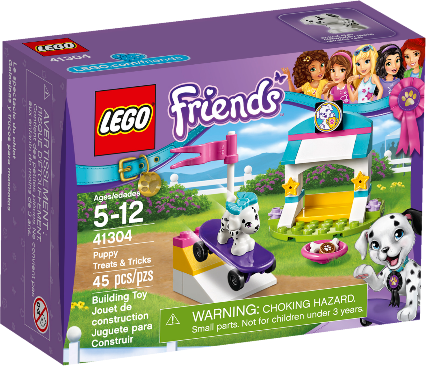 Have hours of fun playing with Cookie the puppy on his skateboard and practicing all sorts of skills. Treat him with the bone or dog biscuit before lying him down in his doghouse for a well-earned rest with LEGO® Friends Puppy Tricks & Treats. Includes a dog figure. Includes a Cookie the dog figure. Features a doghouse and a ramp. Accessory elements include a skateboard, dog bowl, dog biscuit, bone and a bow. Help Cookie practice skateboarding down the ramp. Lead him into the doghouse for a good night's sleep. This set offers an age-appropriate build and play experience for ages 5+. Doghouse measures over 1” (5cm) high, 2” (6cm) wide and 1” (4cm) deep. Combine with the 41300 Puppy Championship or 41303 Puppy Playground for even more jumps, and obstacles to practice with!