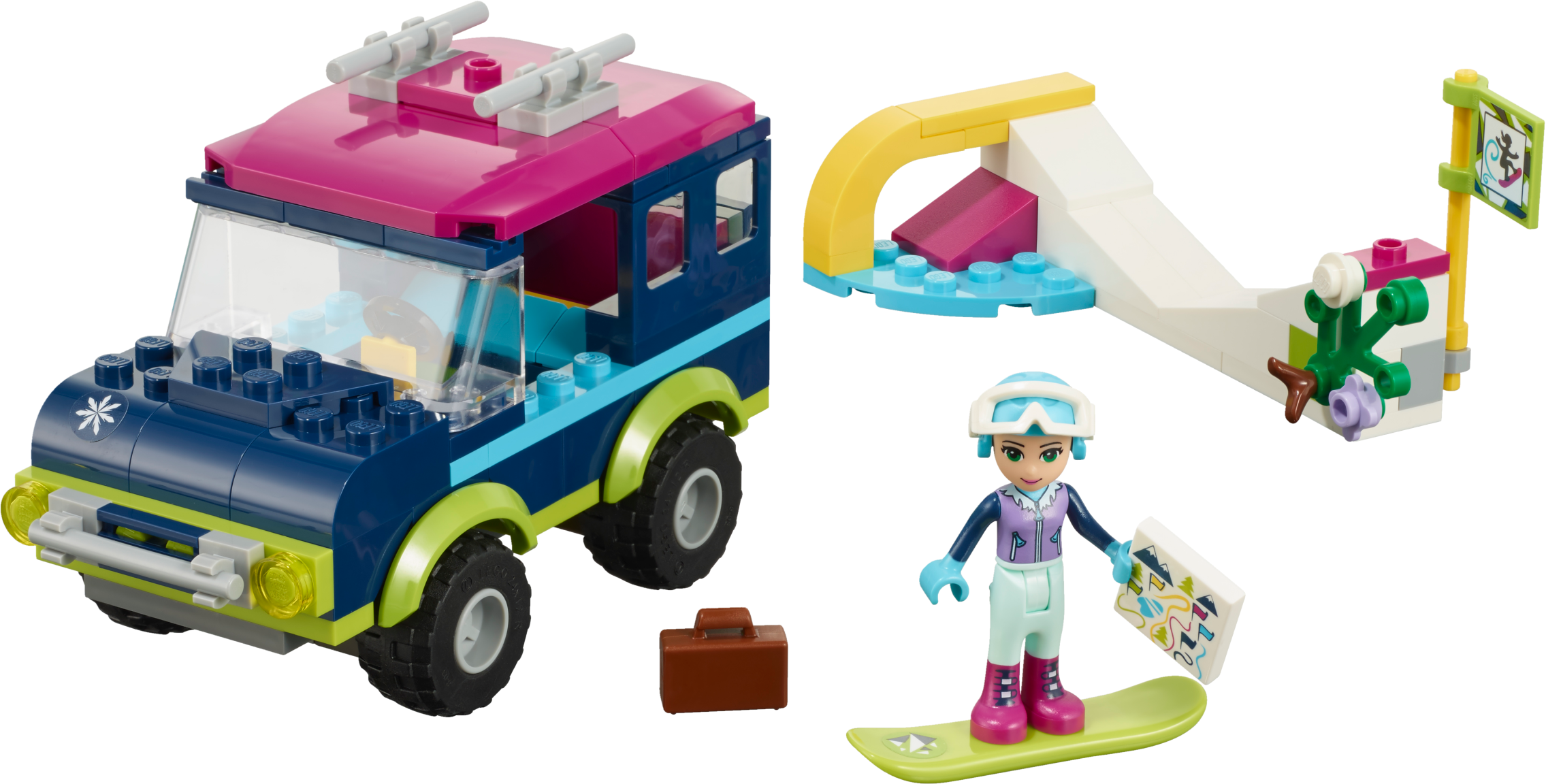 This sporty SUV is perfect for travelling through snow. Open the trunk to pack your luggage, put your snowboard on the roof rack, or lift off the roof for easy play inside. This set also comes with a snowboarding ramp and rail so that Emma can practice her tricks like a pro. Includes a mini-doll figure. Includes an Emma mini-doll figure in a snowboarding outfit. Features an SUV-style car with roof rack, opening trunk and removable roof for easy play inside, plus a snowboarding ramp and rail. Accessory elements include a snowboard, crash helmet, suitcase and a map. Load up the roof rack with the snowboard and cruise through the snow in this funky SUV-style car. Find the cool snowboarding ramp and help Emma show off her skills. Off-Roader measures over 2” (7cm) high, 4” (12cm) long and 1” (5cm) wide. Snowboarding ramp measures over 3” (9cm) wide and 1” (4cm) deep, and under 1” (2cm) high.